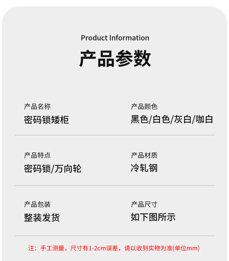 | Color Classification | One-Drawer, One-Door Password Cabinet White [Extra Thick Carbon Steel-Delivered to Your Home],One-Draw One-Door Password Cabinet Black [Extra Thick Carbon Steel-Delivered to Your Home],One-Draw, One-Door Password Cabinet in Gray and White Color [Extra Thick Carbon Steel - Fully Assembled and Delivered to Your Home],One-Draw, One-Door Password Cabinet with White Color [Extra Thick Carbon Steel - Fully Assembled and Delivered to Your Home],Two-Drawer and One-Door Password Cabinet White [Extra Thick Carbon Steel - Fully Assembled and Delivered to Your Home],Two-Drawer and One-Door Password Cabinet Black [Extra Thick Carbon Steel - Fully Assembled and Delivered to Your Home],Two-Drawer and One-Door Password Cabinet in Gray and White Color [Extra Thick Carbon Steel - Fully Assembled and Delivered to Your Home],Two-Drawer and One-Door Password Cabinet with White Color [Extra Thick Carbon Steel - Fully Assembled and Delivered to Your Home],Four-Drawer Password Cabinet White [Extra Thick Carbon Steel-Delivered to Your Home],Four-Drawer Password Cabinet Black [Extra Thick Carbon Steel-Delivered to Your Home],Four-Drawer Password Cabinet in Gray and White Color [Extra Thick Carbon Steel - Fully Assembled and Delivered to Your Home],For Detailed Inquiries, Please Contact Customer Service.,Thickness Options Are Product Model, Not Plate Thickness |
