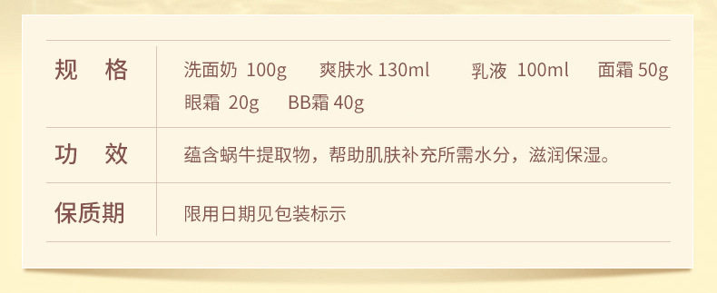 | Color Classification | Snail Essence Skin Care Six-Piece Set |