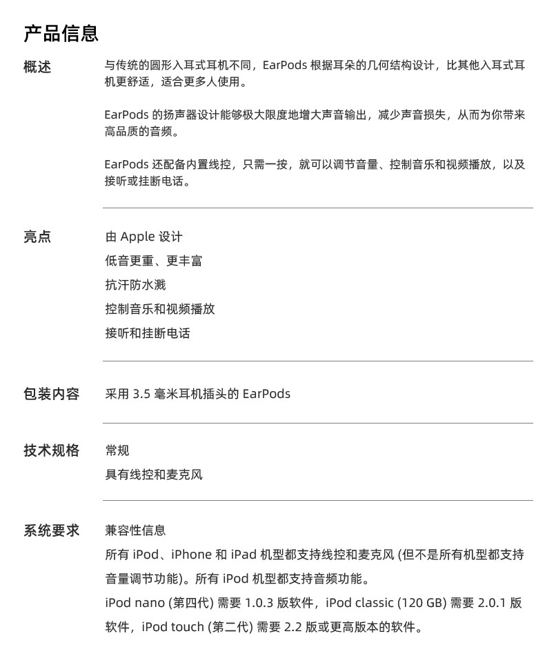 | Apple Headphone Model | Adopting 3...Earpods with 5mm Earphone Plug |