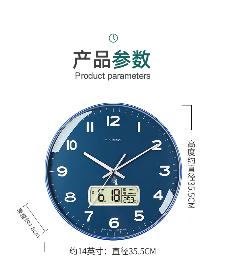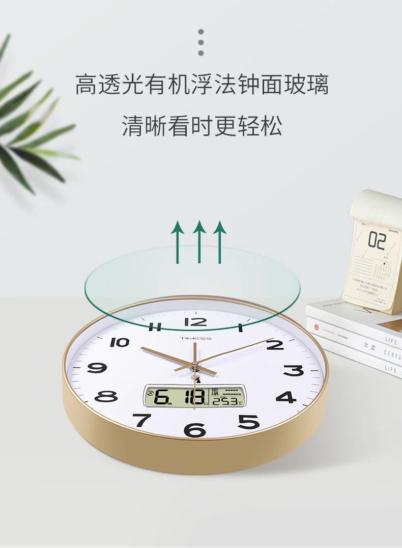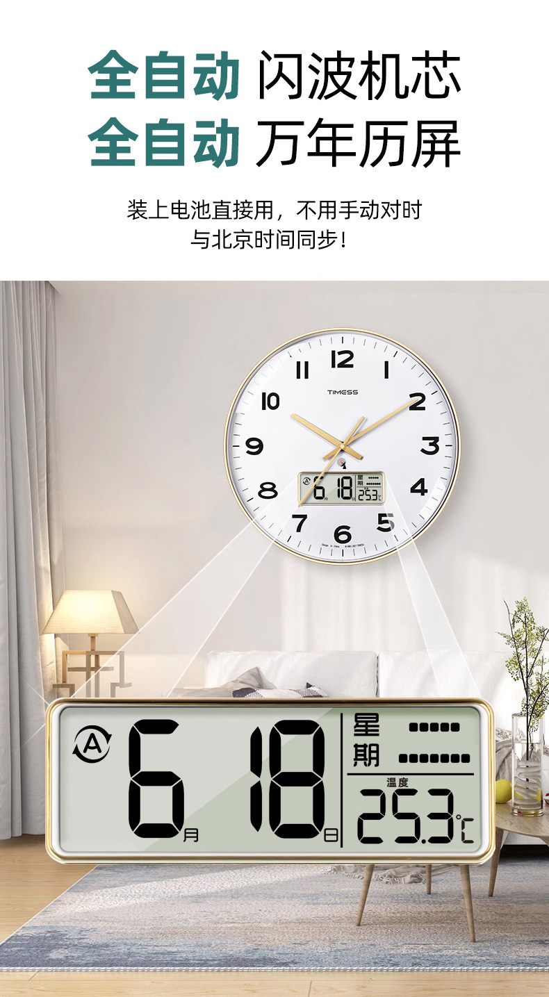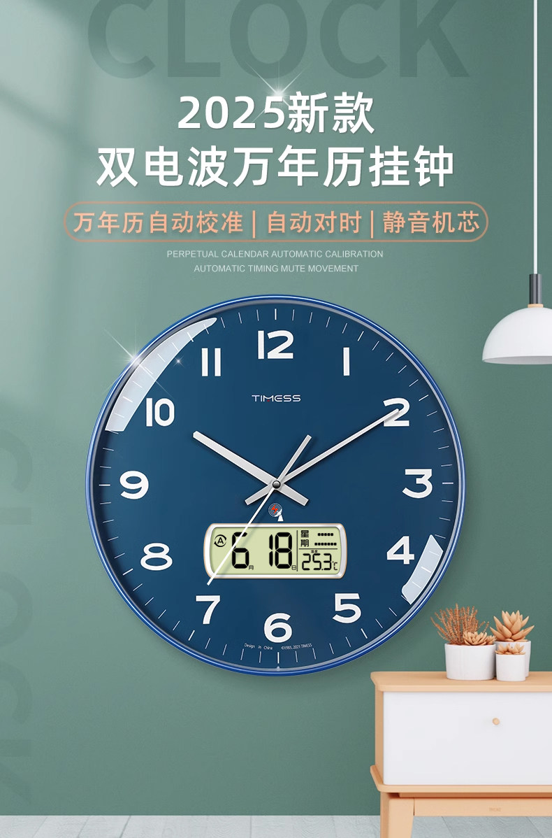 Timess Internet-Famous Radio-Controlled Clock Wall Clock for Living Room Home Use Fashionable 2025 New Model Perpetual Calendar Wall-Mounted Clock