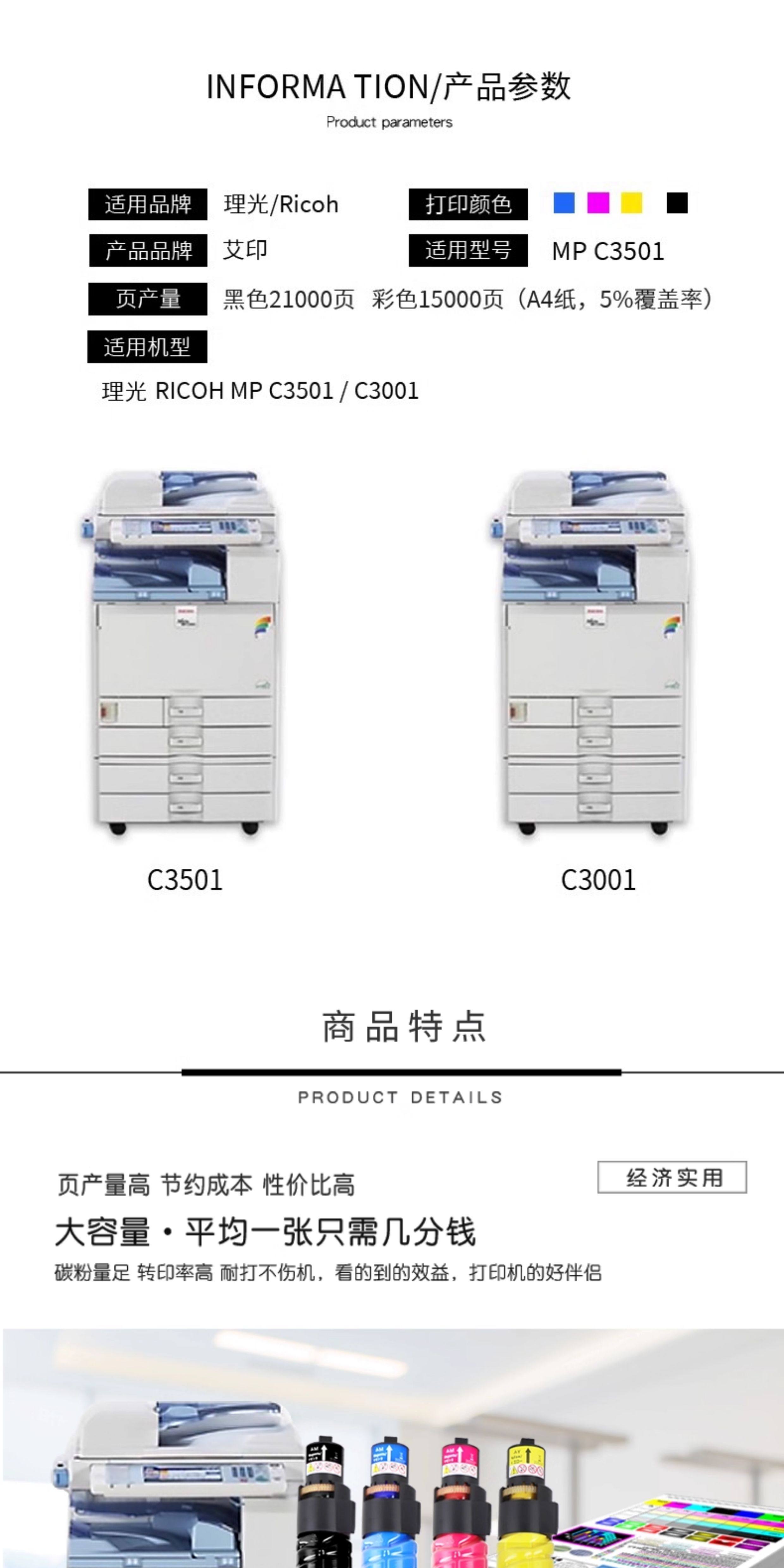 Aiyin Original Suitable for Ricoh C3501 Toner C3001 Mp C3501 Toner Cartridge Mpc3001 Colorful Copier Toner Aficio Printer Toner Cartridge Digital Compound Machine Toner Cartridge Ink Cartridge