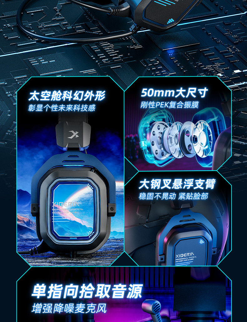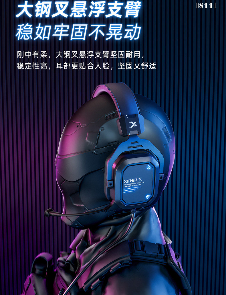 Siberia Gaming Headset S11 Over-Ear 7.1 E-Sports Wired for Mobile Phone, Tablet, and Computer Delta