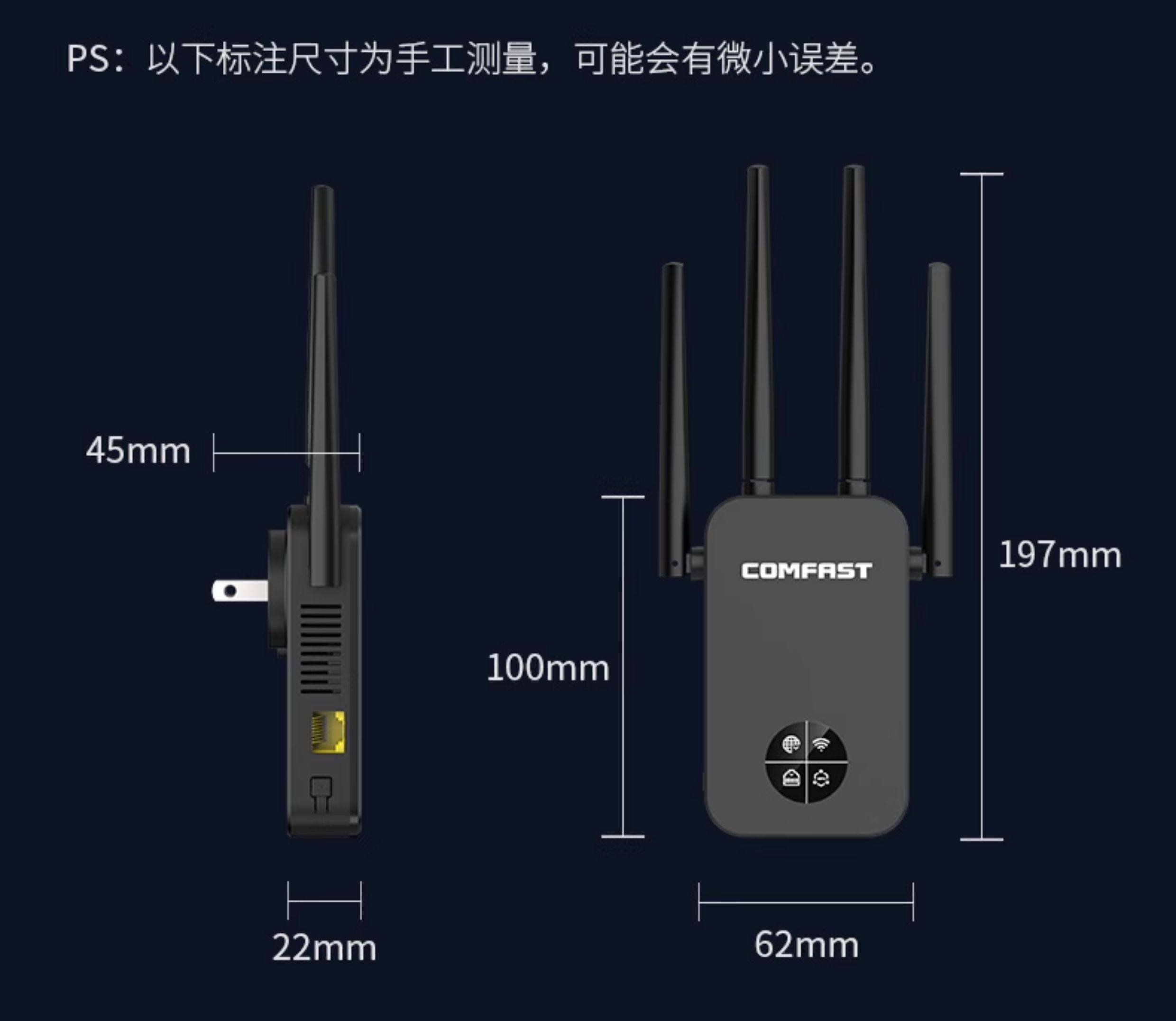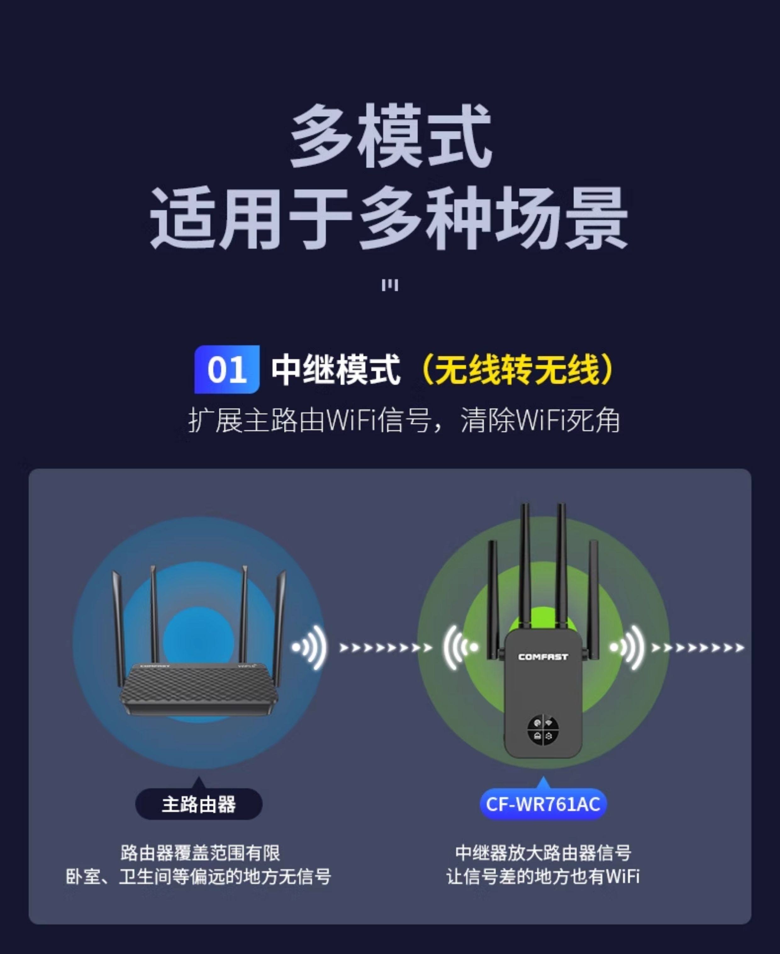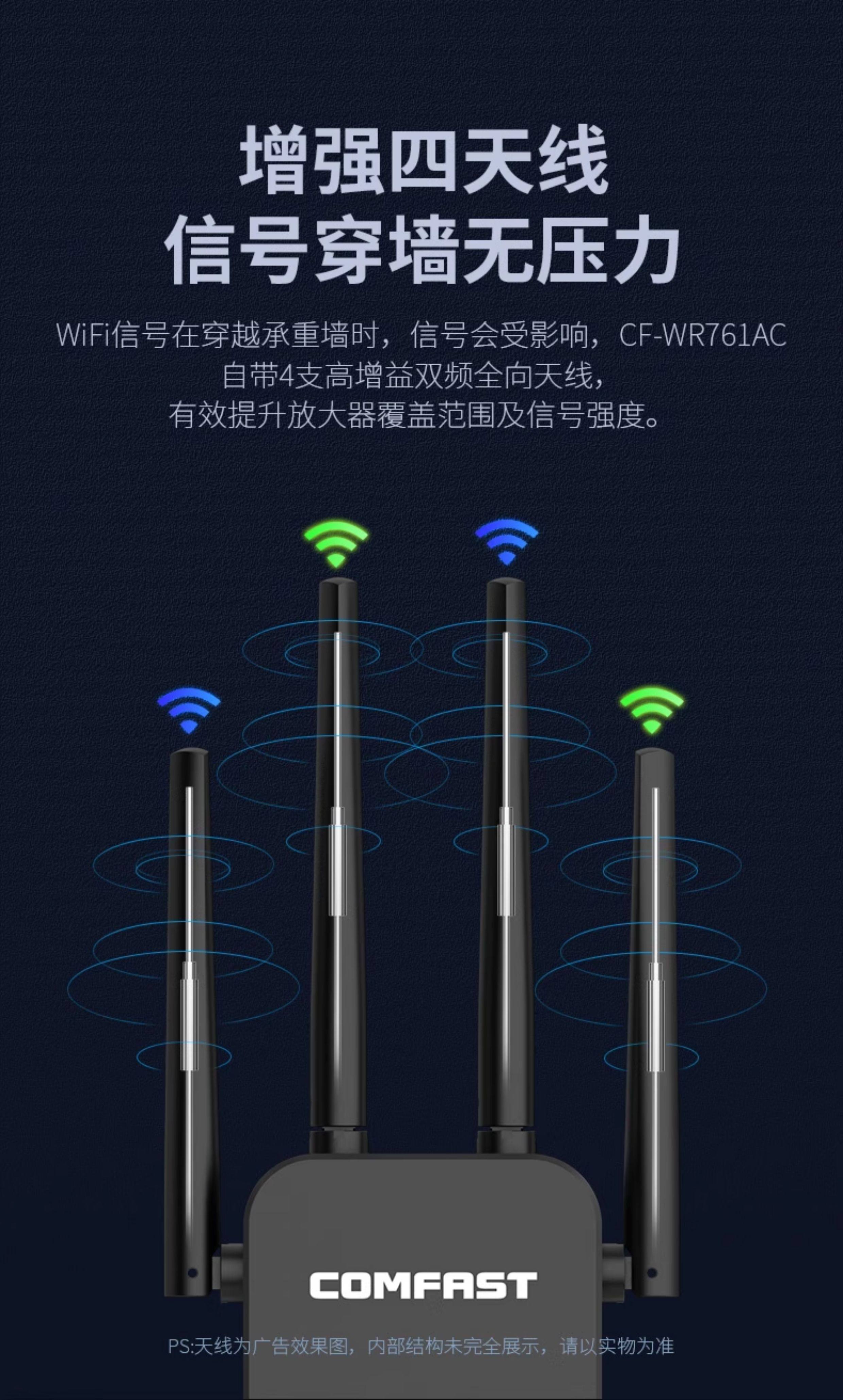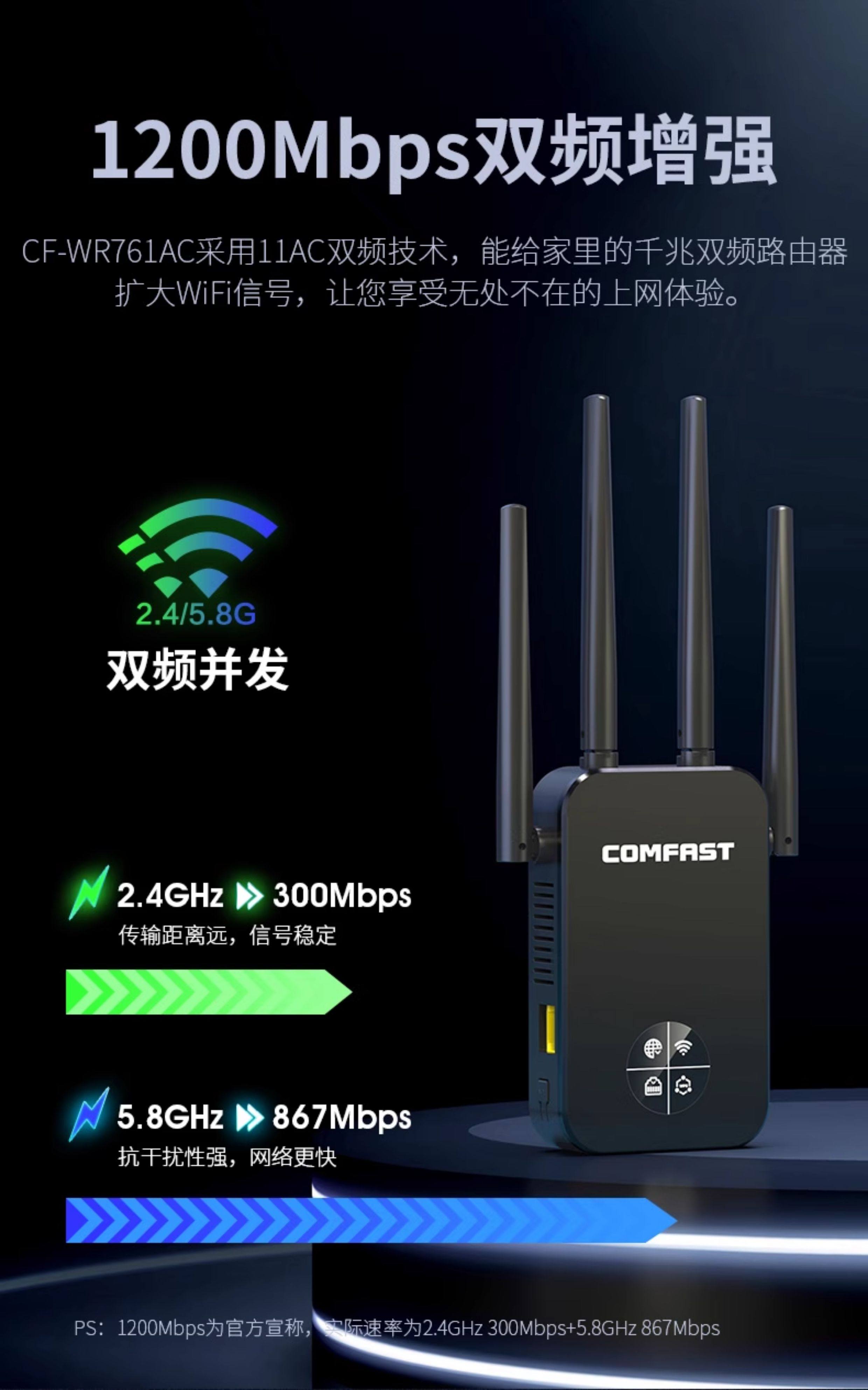 Comfast Cf-Wr761Ac Wireless Wifi Signal Extender 5g Dual-Band Signal Booster Amplifier Repeater 1200m Enhanced Reception Expansion Bridge Gigabit Wireless Router