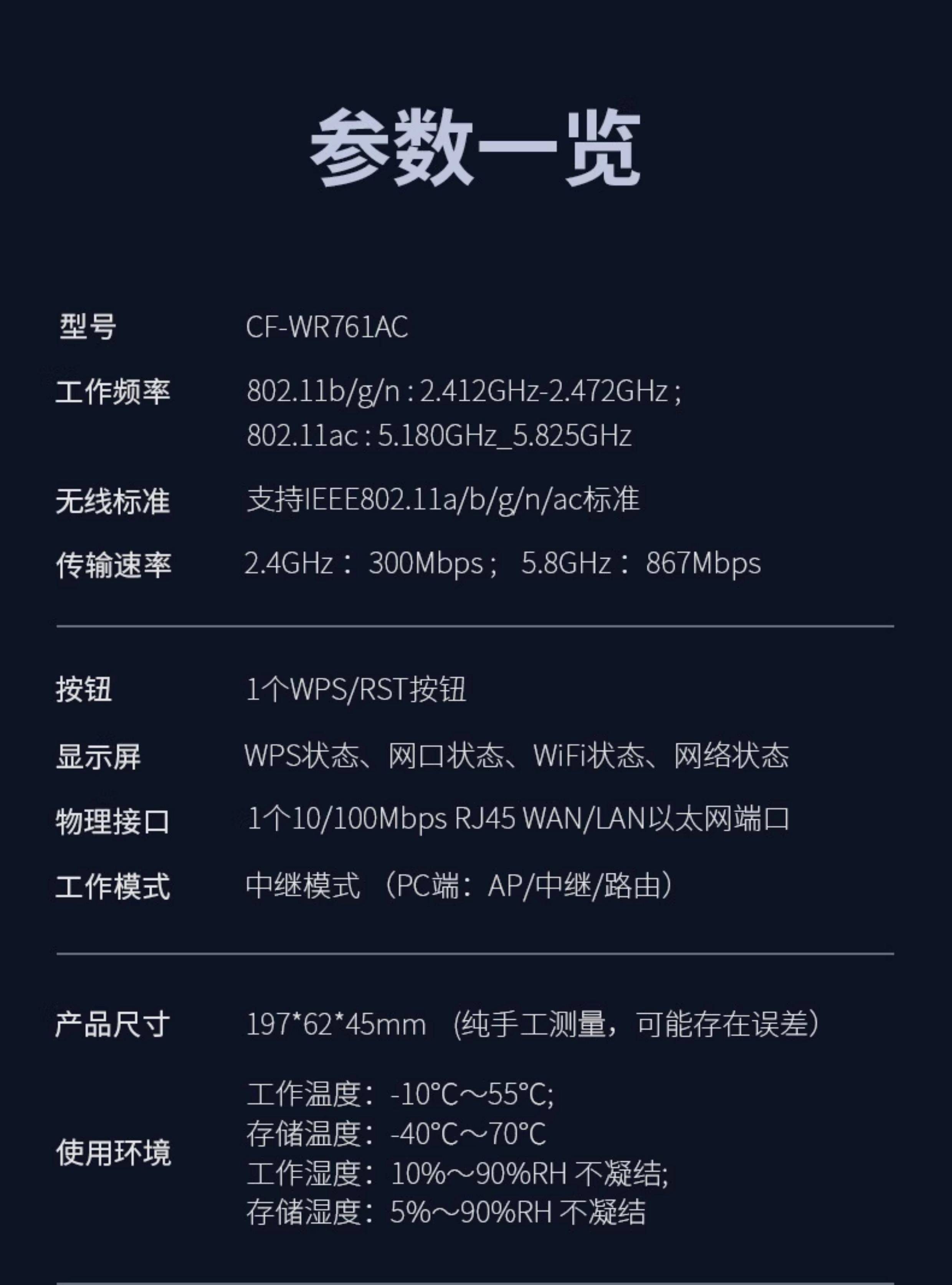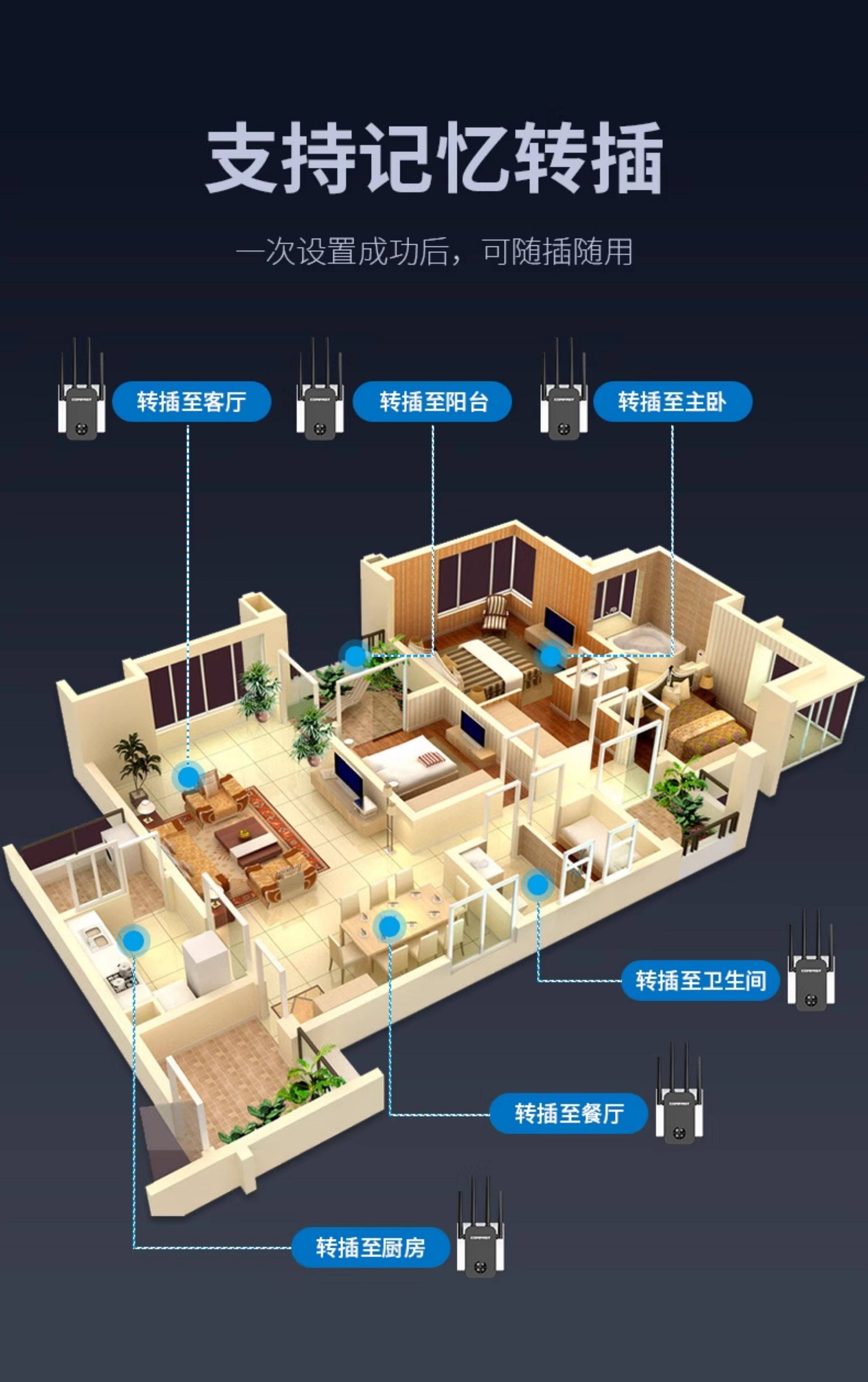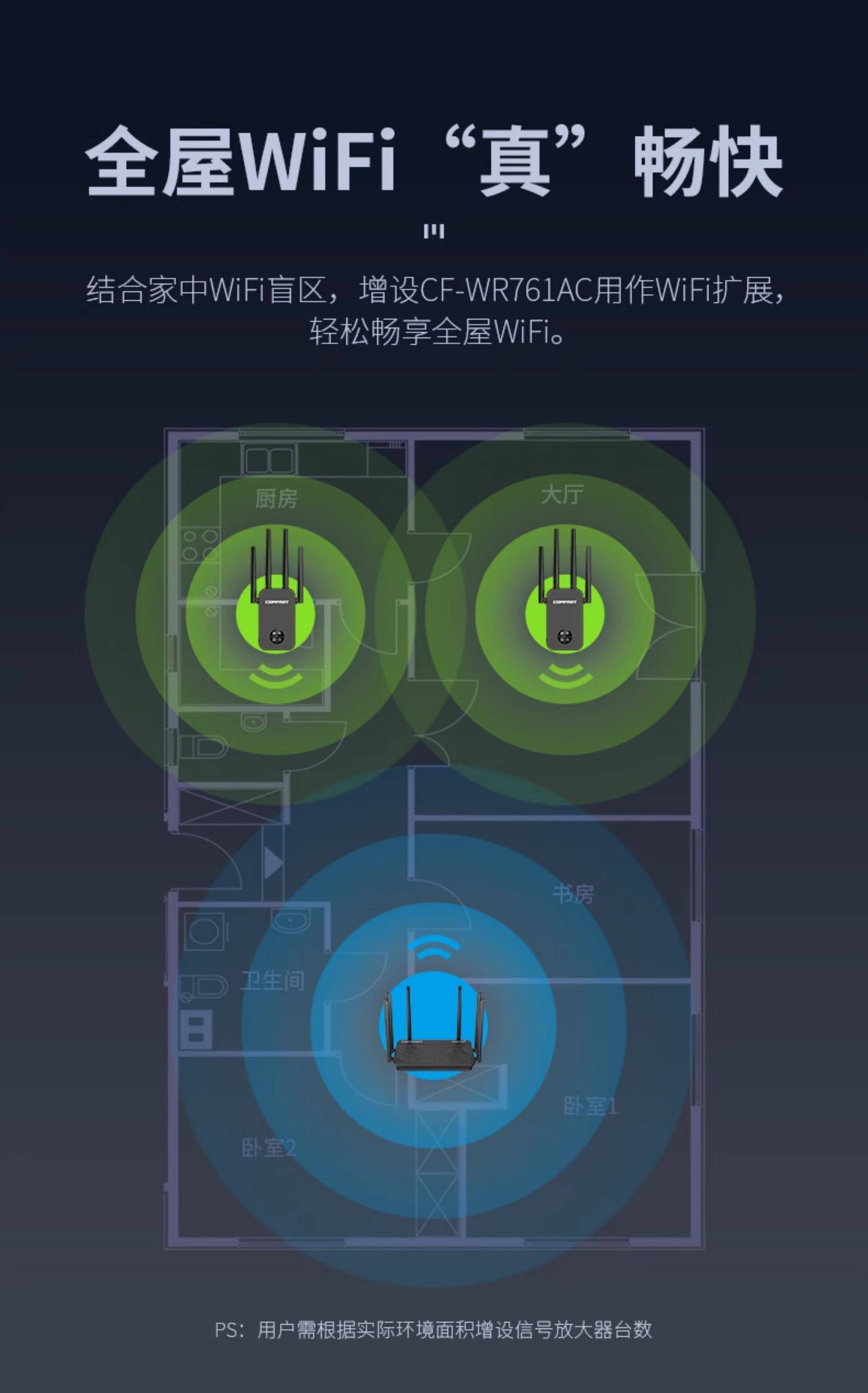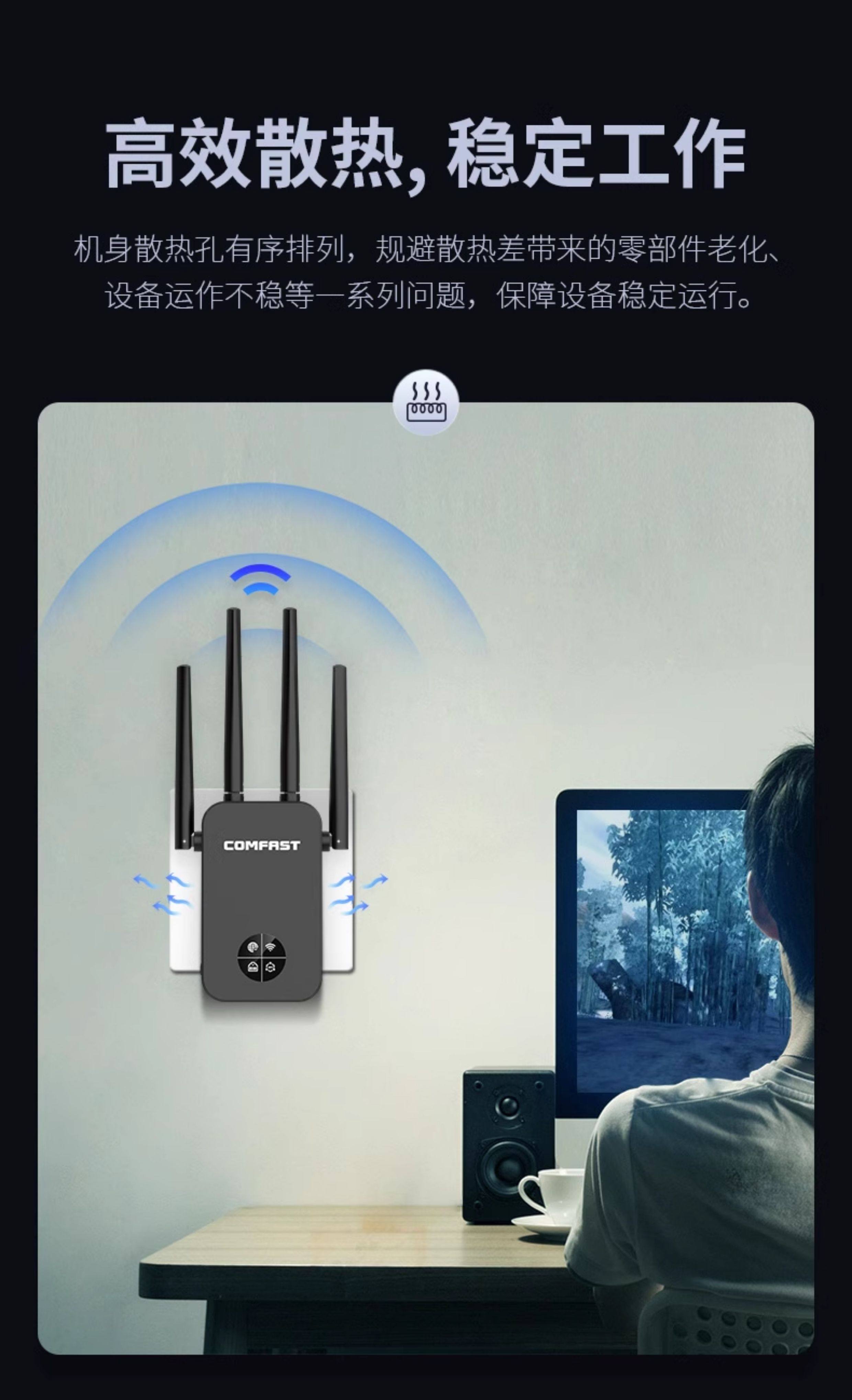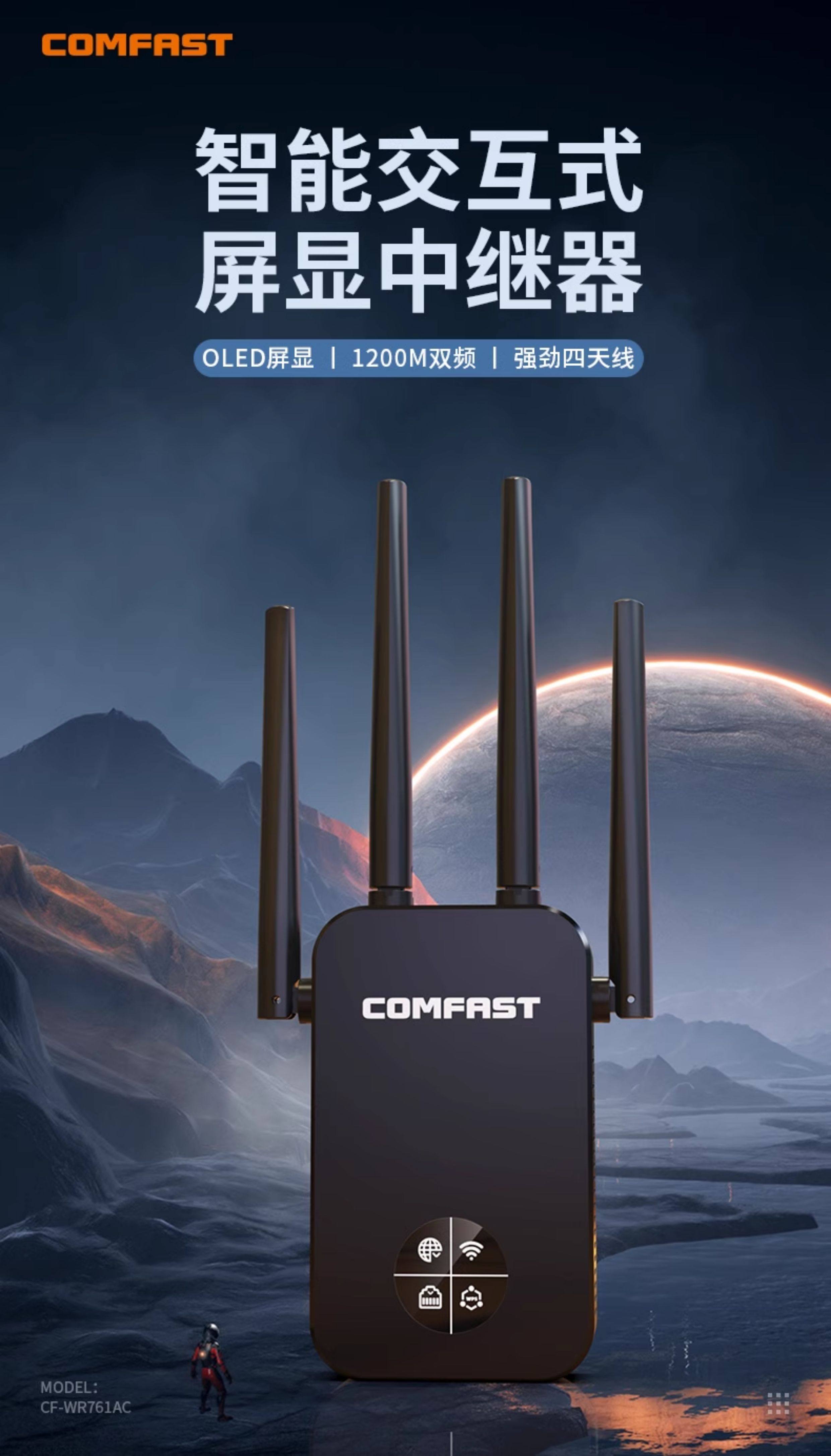 Comfast Cf-Wr761Ac Wireless Wifi Signal Extender 5g Dual-Band Signal Booster Amplifier Repeater 1200m Enhanced Reception Expansion Bridge Gigabit Wireless Router
