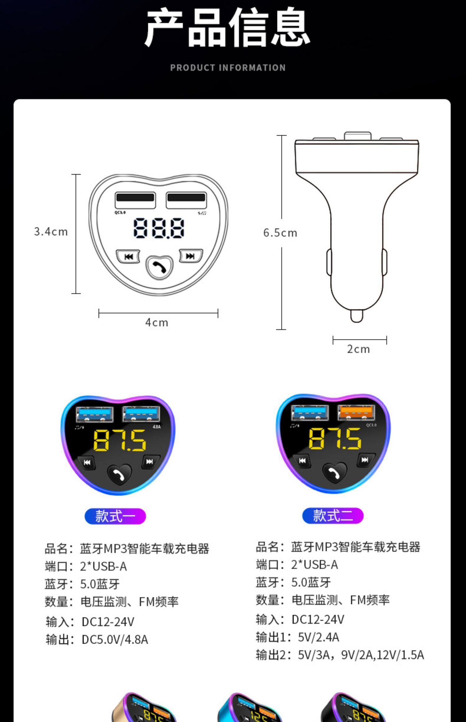Color Classification [Basic Version]Support 3.1A Fast Charge + Bluetooth 4.2/ Hands-Free Answering,[Enhanced Version]Support 3.1A Fast Charge + Bluetooth 5.0/ Hands-Free Answering,4.8A Fast Charge[Heart Shaped Enhanced Version]Bluetooth 5.0/ Hands-Free Answering,5.4A Fast Charge[Enhanced Version]Bluetooth 5.0/ Hands-Free Answering,Qc Fast Charge[Enhanced Version]Bluetooth 5.0/ Hands-Free Answering,Super Fast Charge[Enhanced Version]Bluetooth 5.0/ Hands-Free Answering,3.1A Fast Charge[Ultimate Version]Bluetooth 5.3+ Colorful Ambient Lights/Hands-Free Answering,3.1A Fast Charge[With Aux Flagship Version]Bluetooth 5.3+ Colorful Ambient Lights/Hands-Free Answering,4.8A Fast Charge[Dual Display Flagship Version]Bluetooth 5.0+ Hands-Free Answering,Qc Fast Charge[Ultimate Version]Bluetooth 5.3+ Colorful Ambient Lights/Hands-Free Answering,3.1A Fast Charge[Extreme Version]Bluetooth 5.3+ Colorful Ambient Lights/Hands-Free Answering,Qc Fast Charge[Extreme Version]Bluetooth 5.3+ Colorful Ambient Lights/Hands-Free Answering,[Basic Version]Support 3.1A Fast Charge + Bluetooth 4.0+ Hands-Free Answering