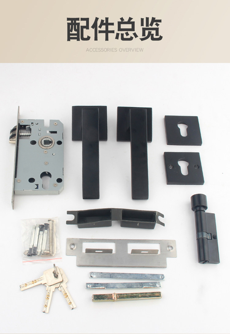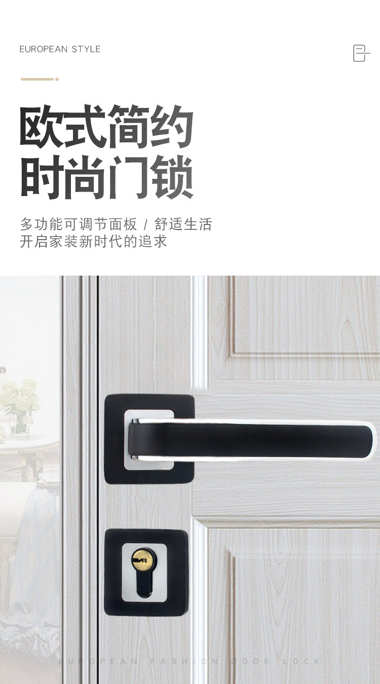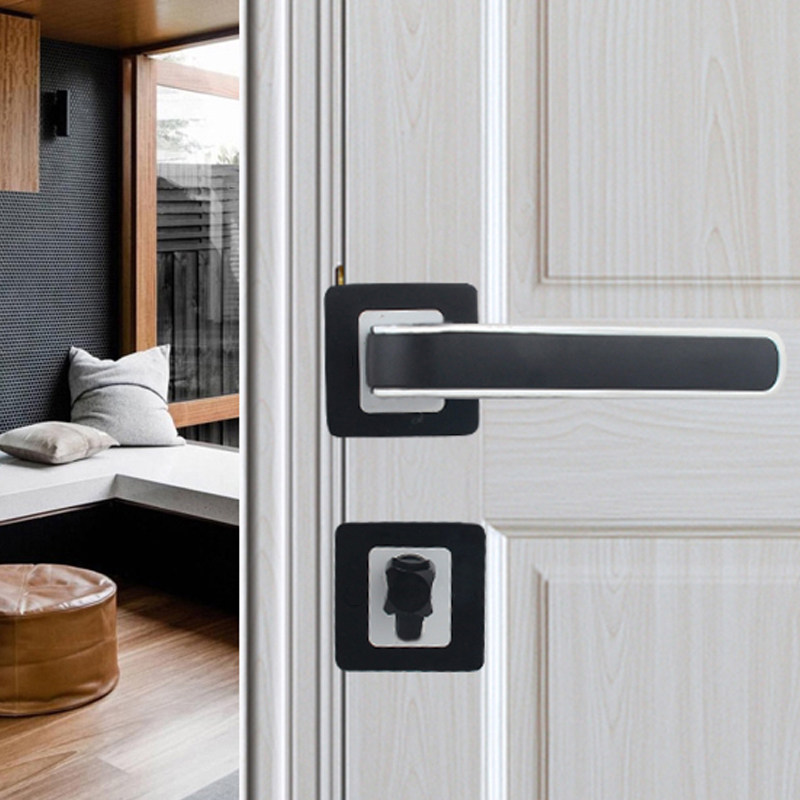 Universal Lock for Household Wooden Doors, Bedroom Door Lock, Indoor Door Split Lock, Black Bathroom Silent Magnetic Lock