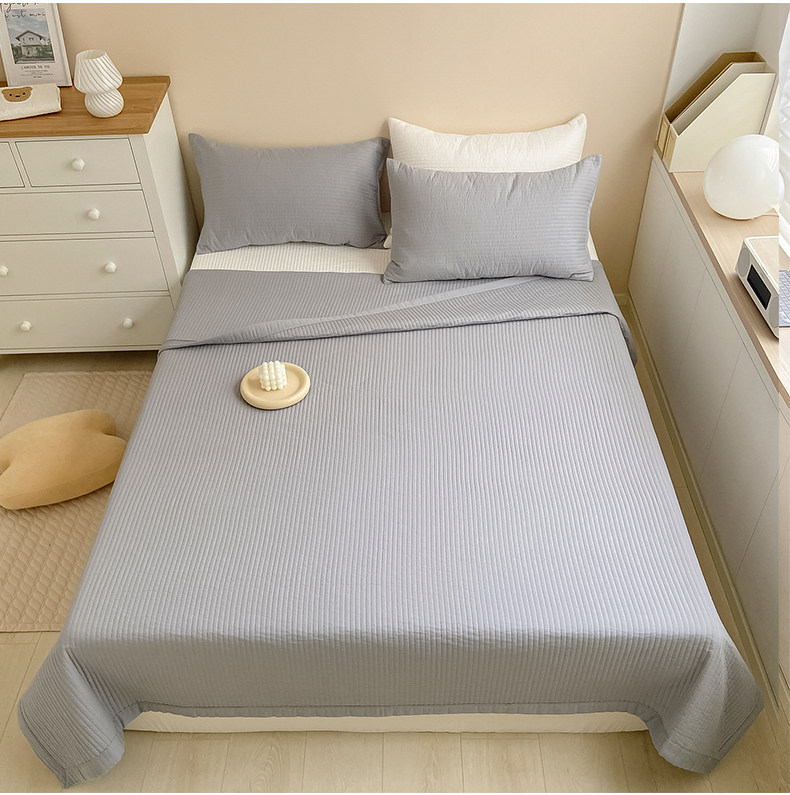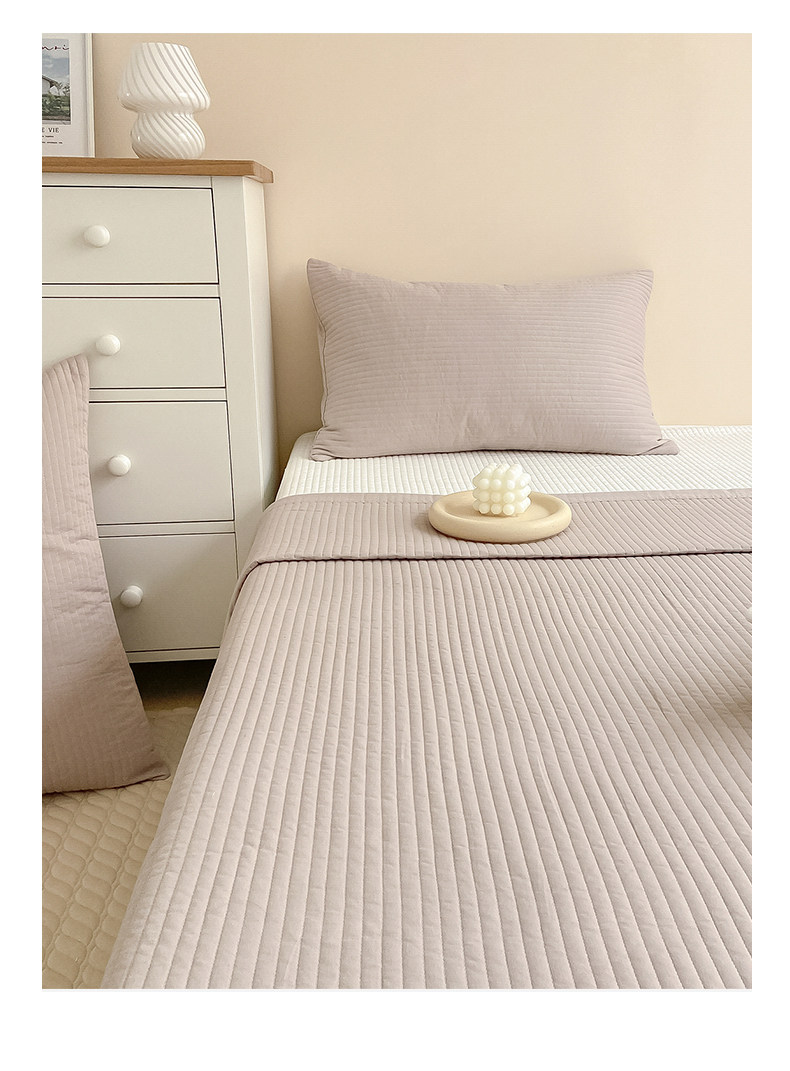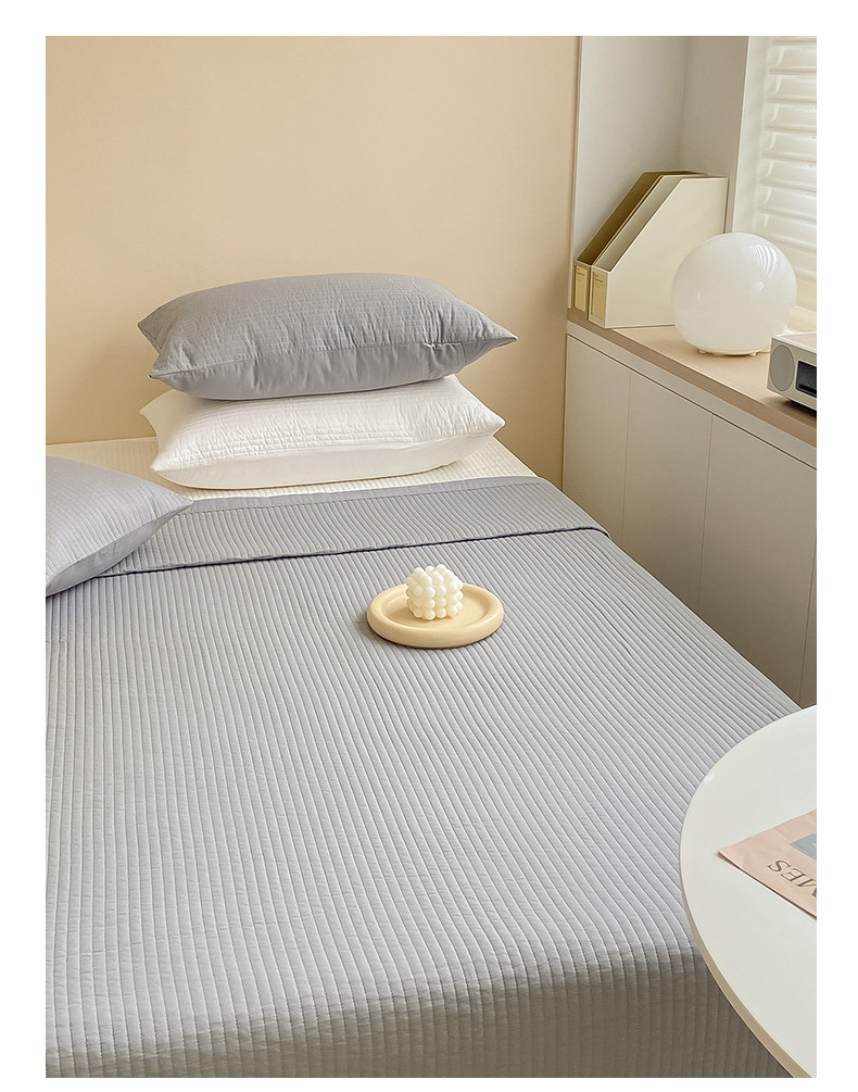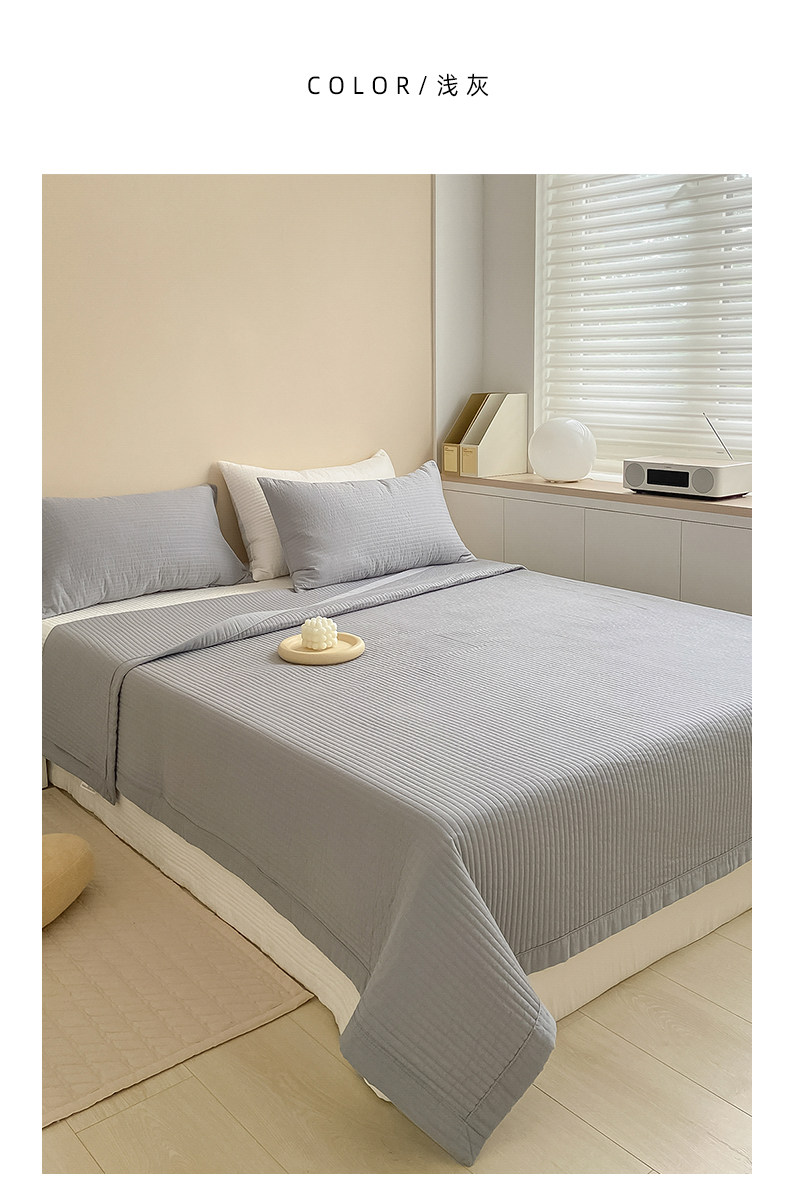 ins Korean-Style All-Cotton Washed Bed Cover Single Piece Quilted Non-Slip Bed Sheet Three-Piece Set Reversible Summer Quilt