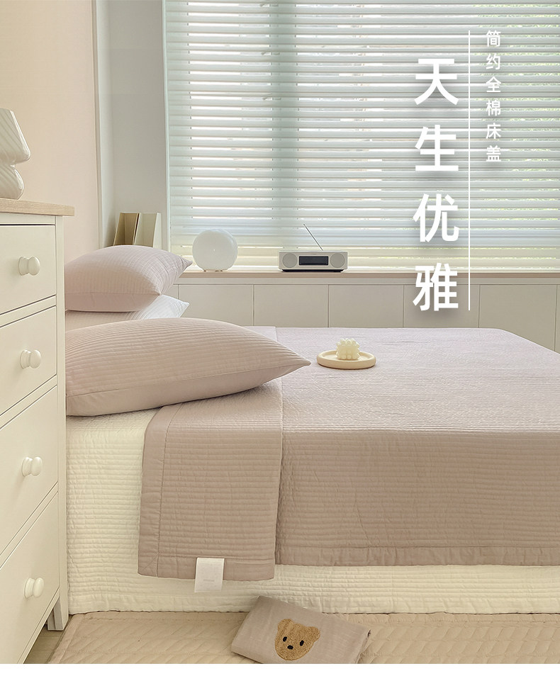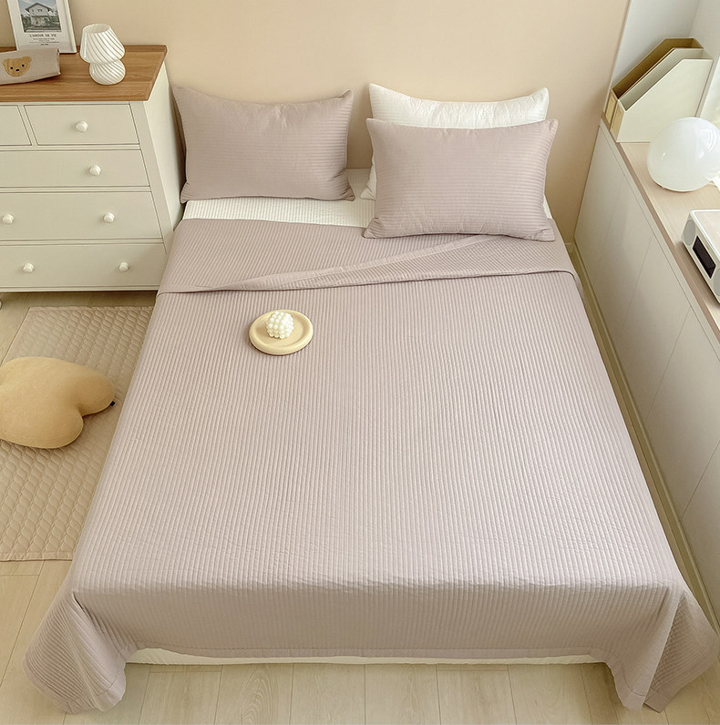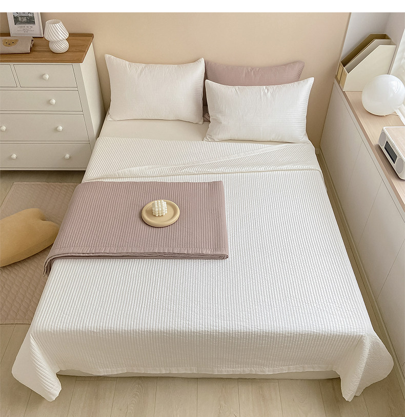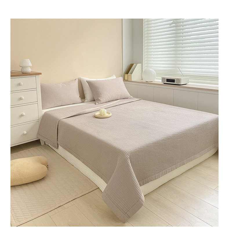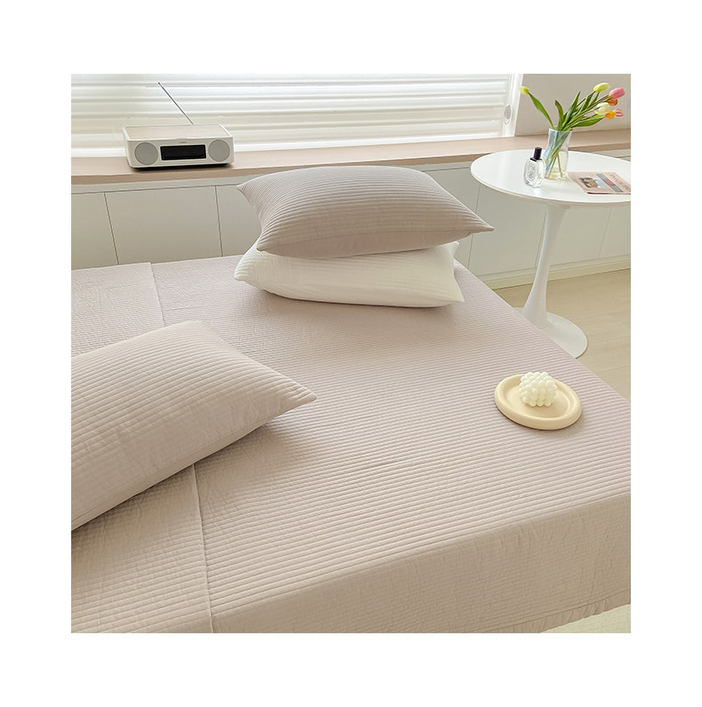 ins Korean-Style All-Cotton Washed Bed Cover Single Piece Quilted Non-Slip Bed Sheet Three-Piece Set Reversible Summer Quilt