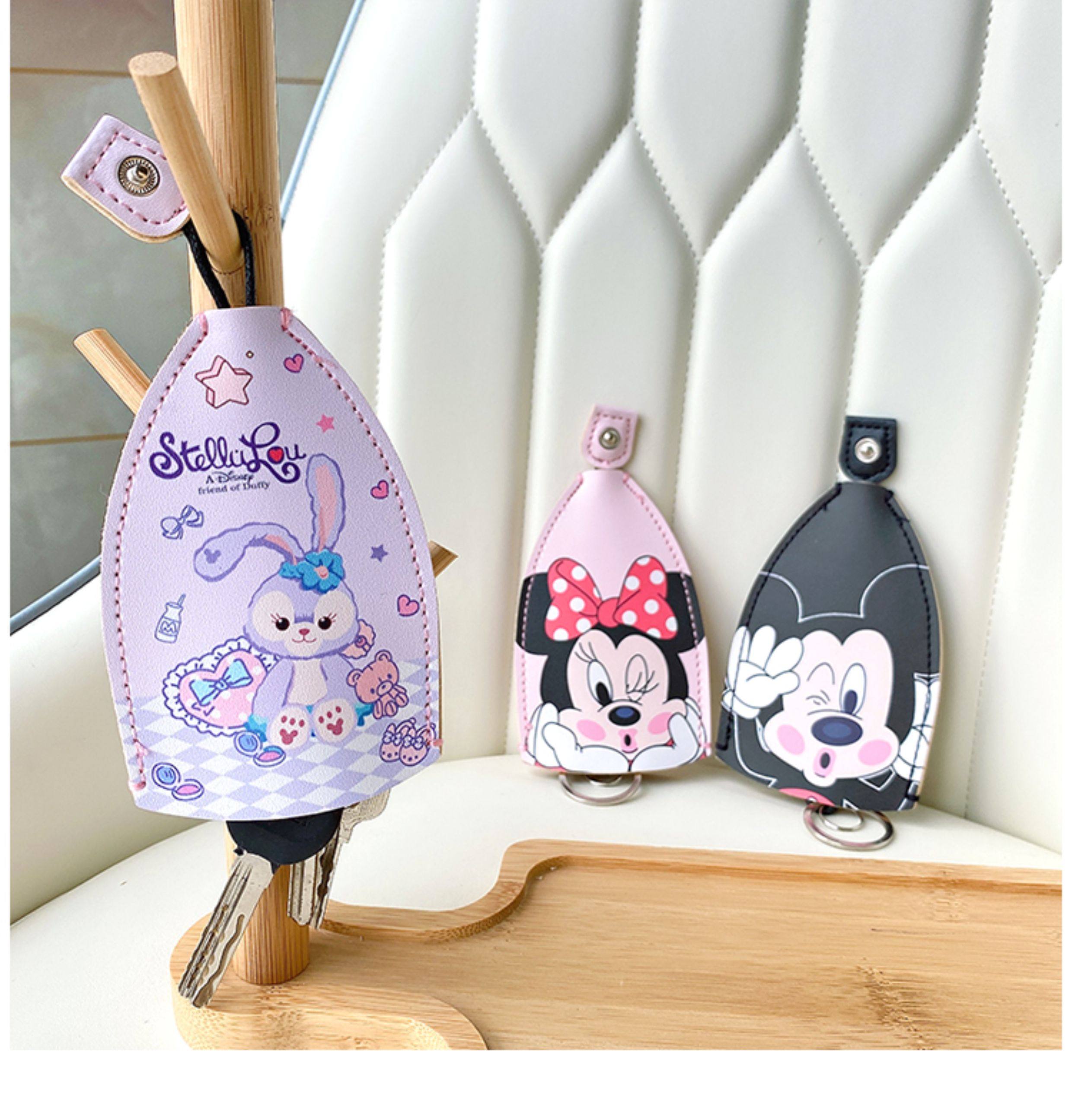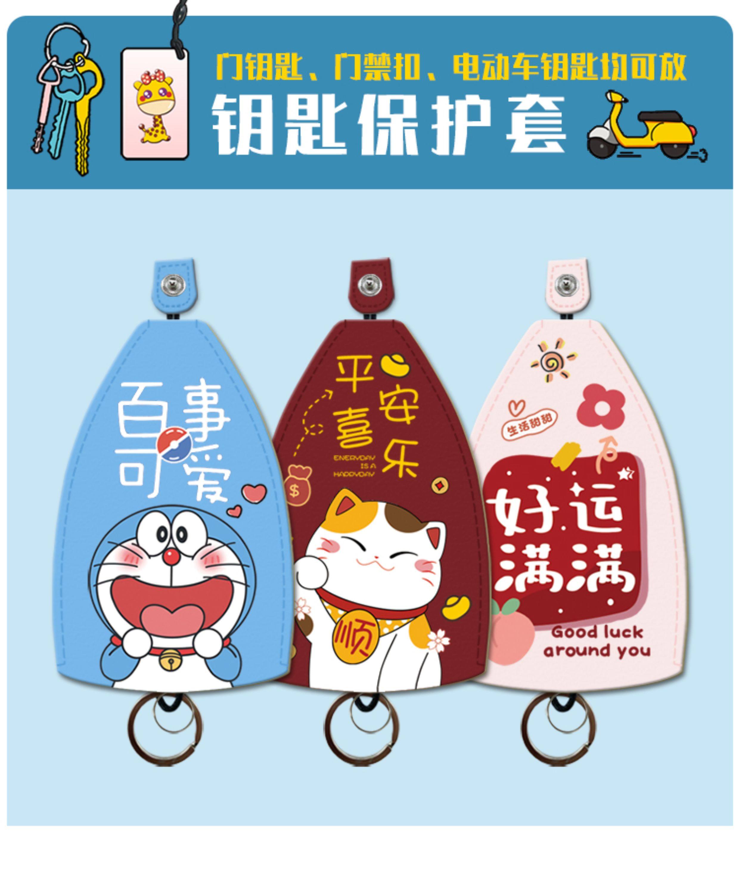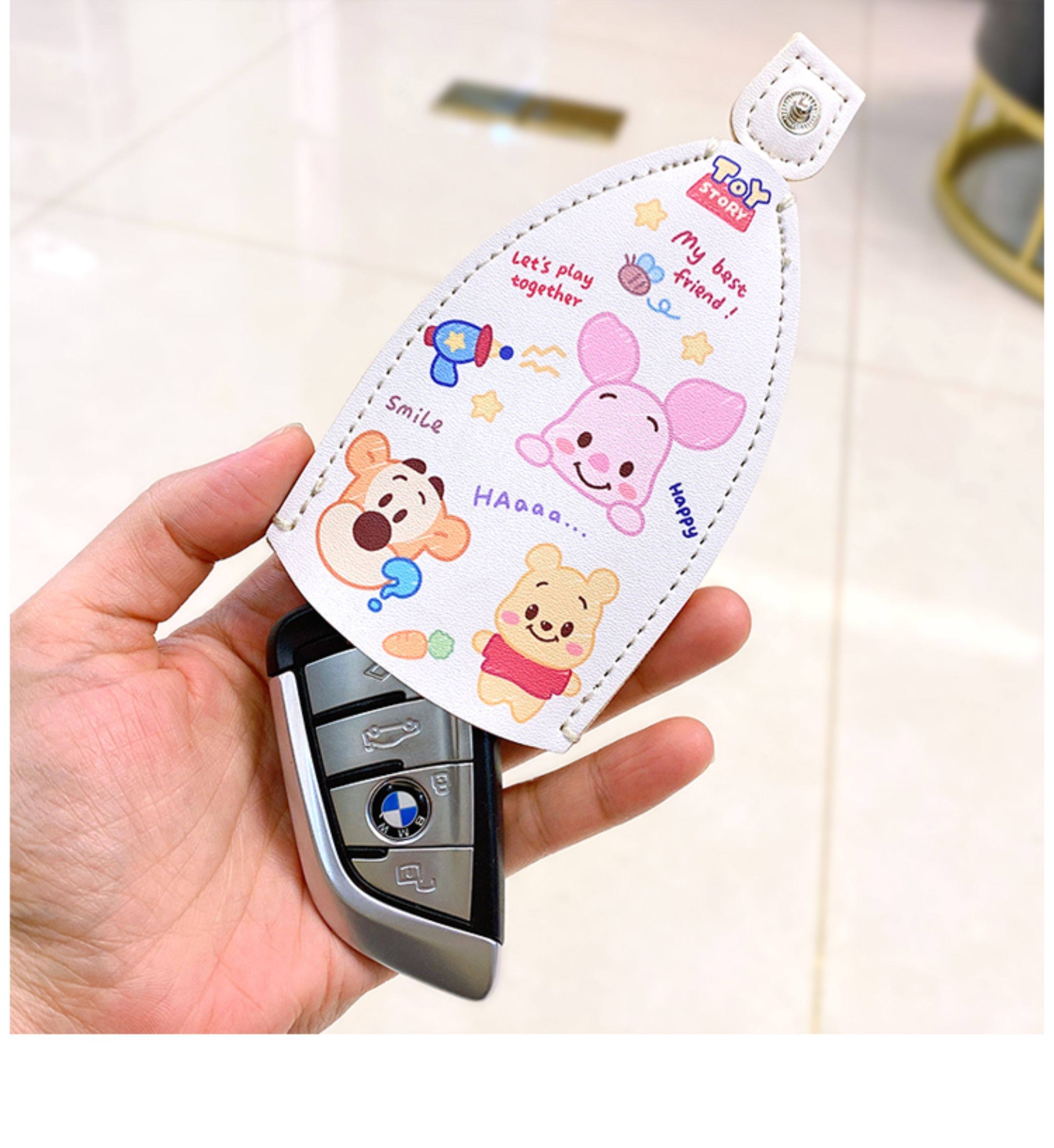 Key Case Pull-Out Style Electric Vehicle Key Leather Cover Keychain Protective Shell Key Bag for Women Cute Storage Holder