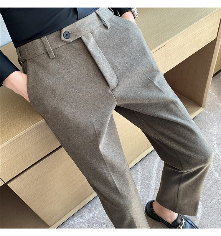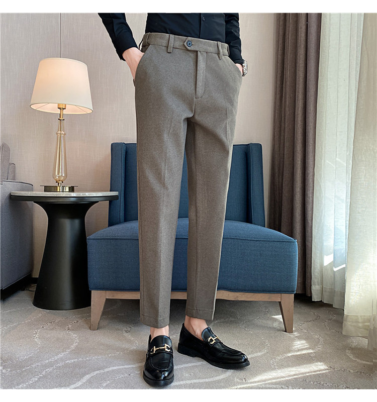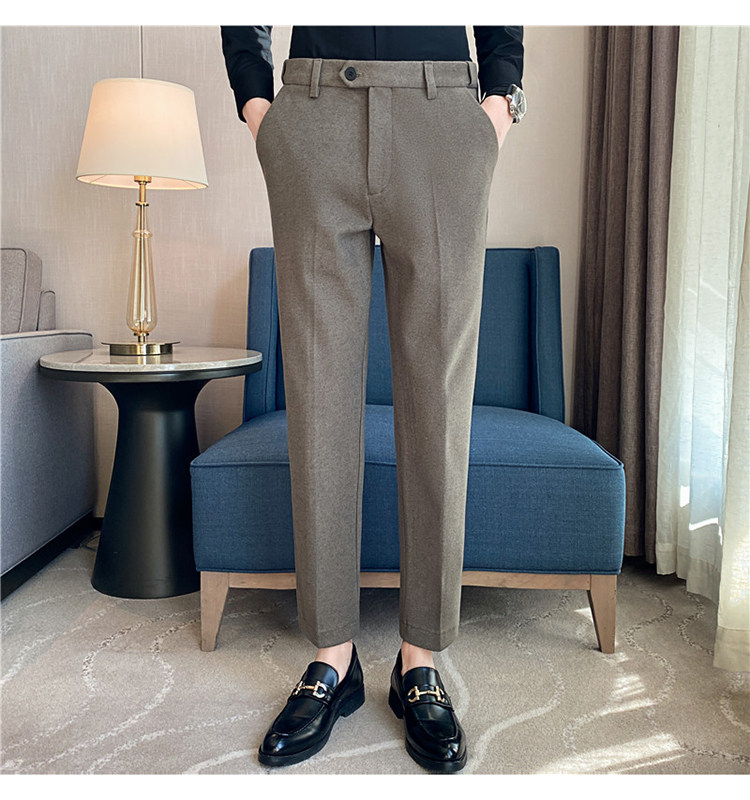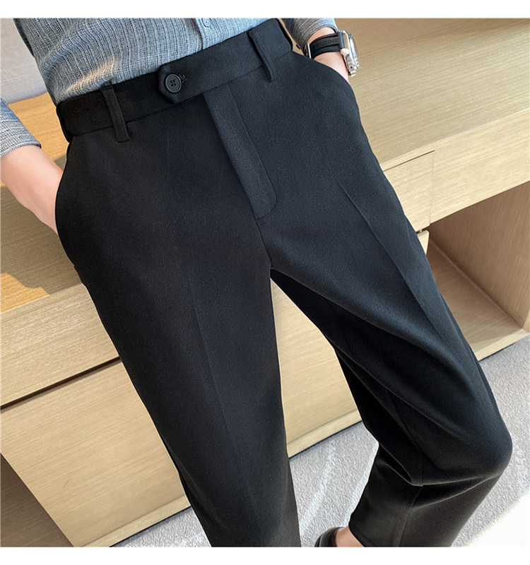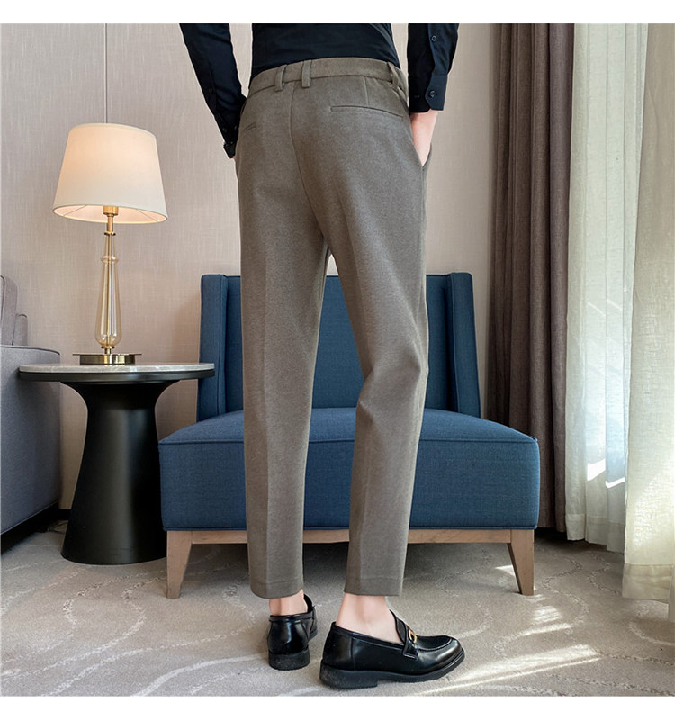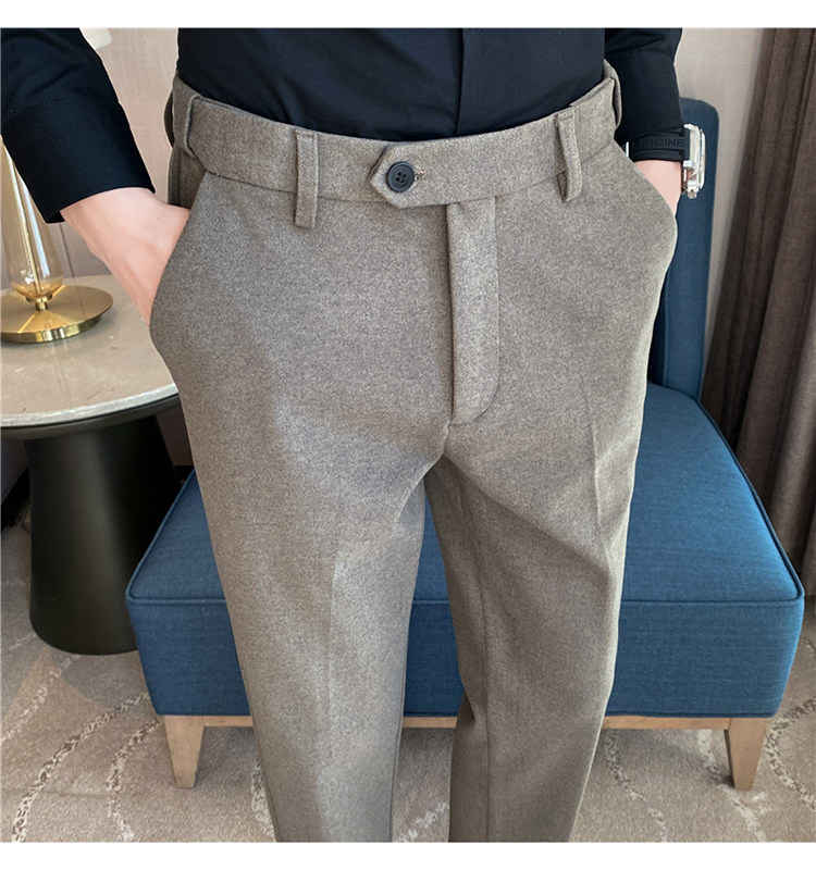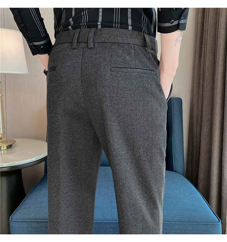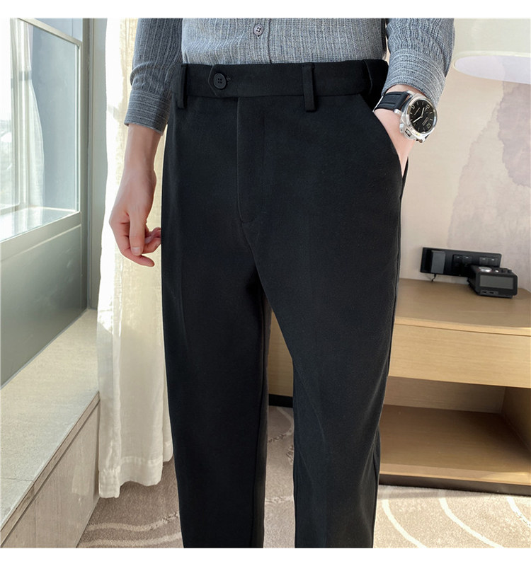 Autumn and Winter Thickened Warm Wool Men's Slim-Fit Casual Trousers Korean Style Brushed Versatile Suit Pants