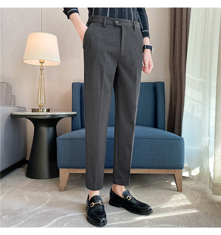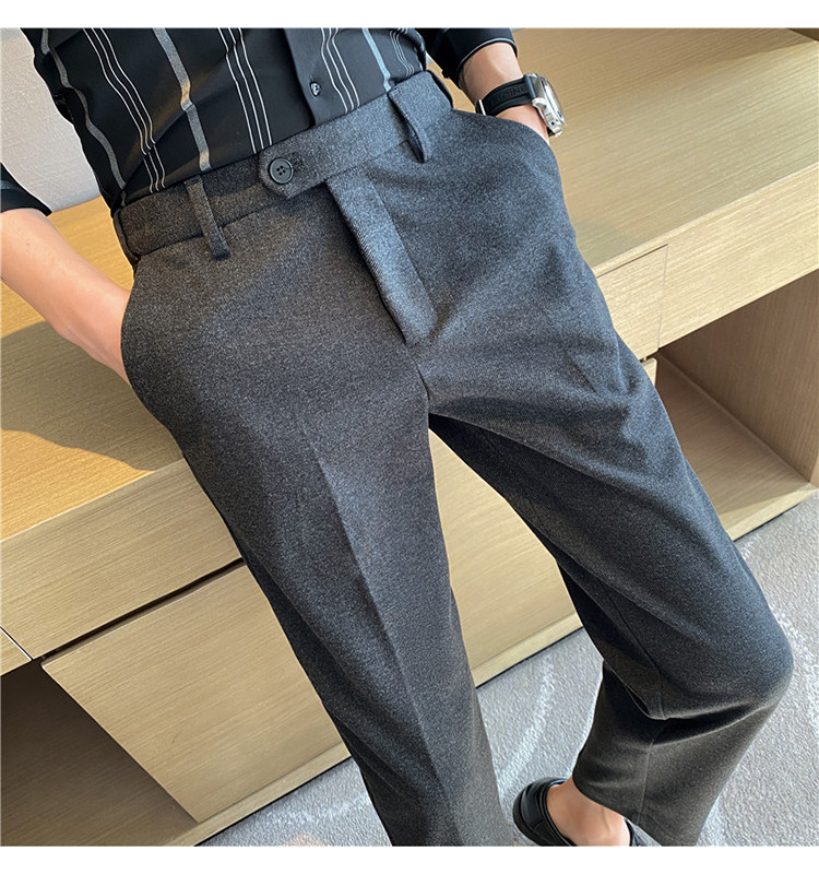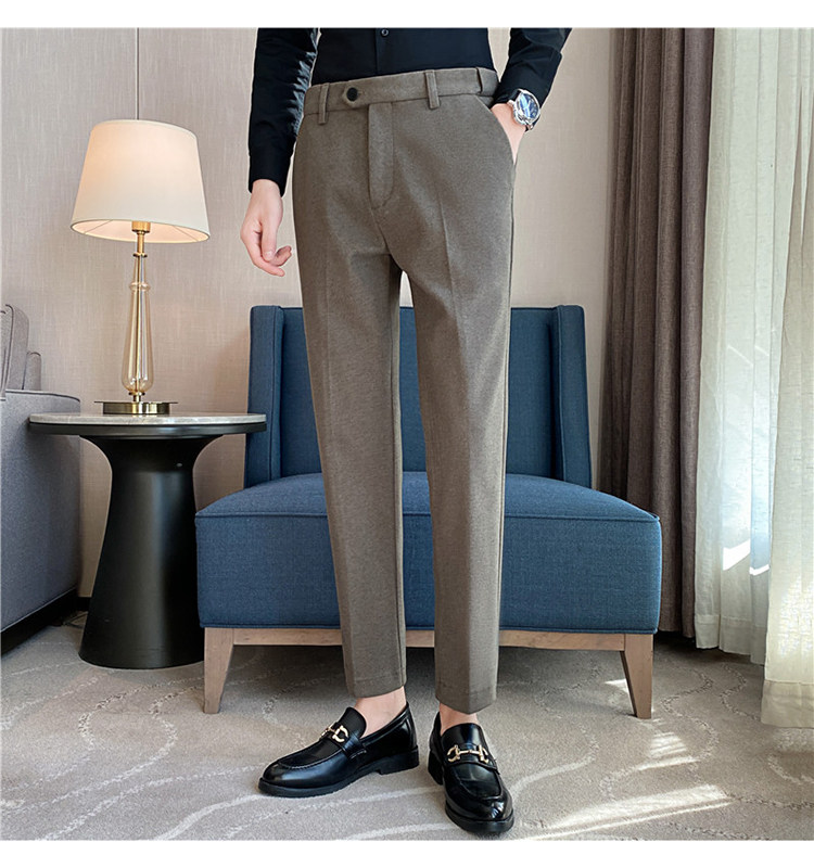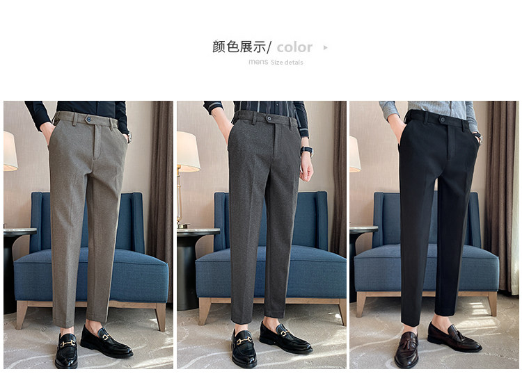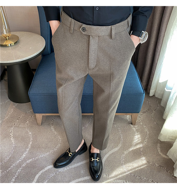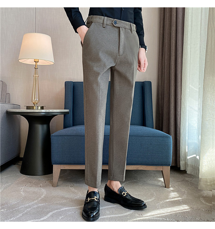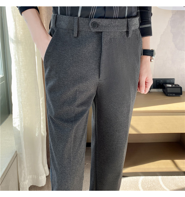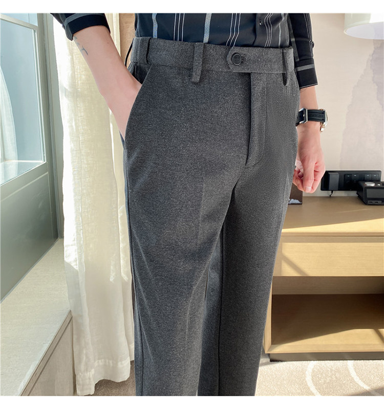 Autumn and Winter Thickened Warm Wool Men's Slim-Fit Casual Trousers Korean Style Brushed Versatile Suit Pants