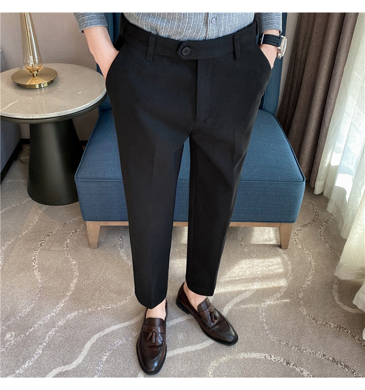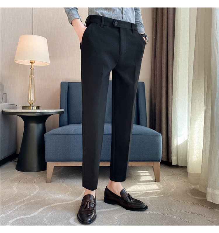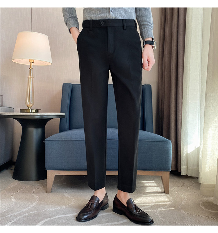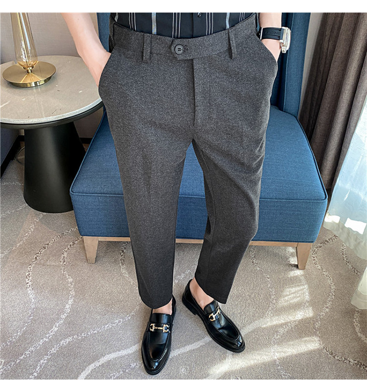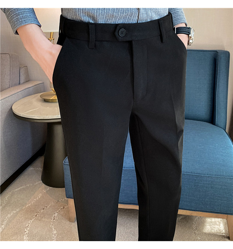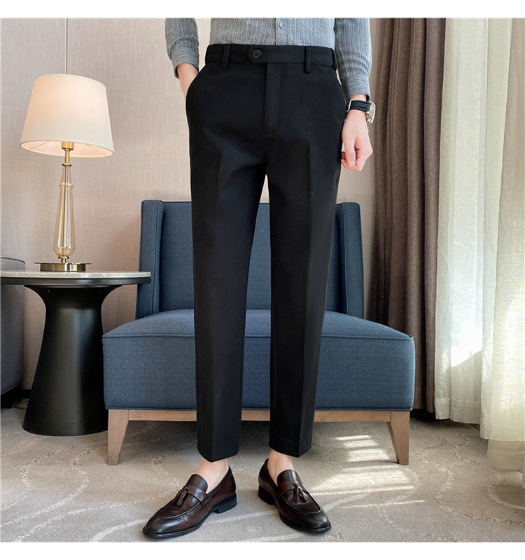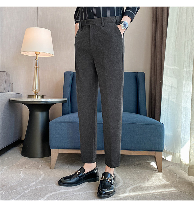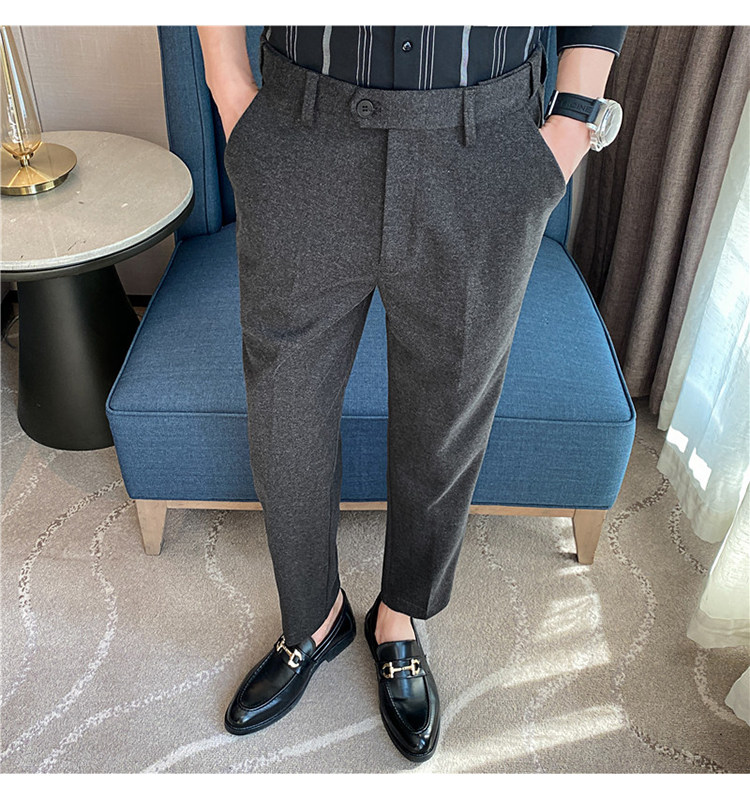 Autumn and Winter Thickened Warm Wool Men's Slim-Fit Casual Trousers Korean Style Brushed Versatile Suit Pants