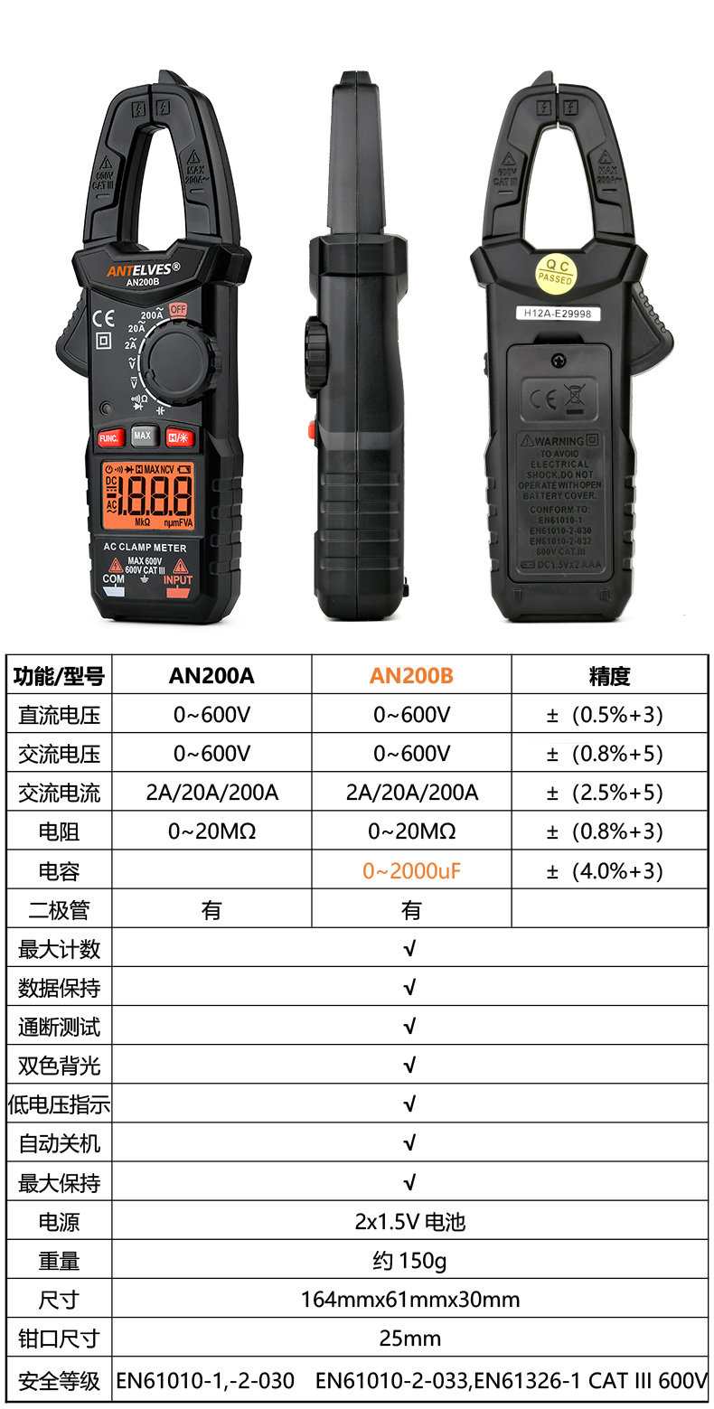 Small Clamp Meter Digital Ammeter Household Electrician Multimeter Clamp Meter Multifunctional Digital Display Clamp Meter