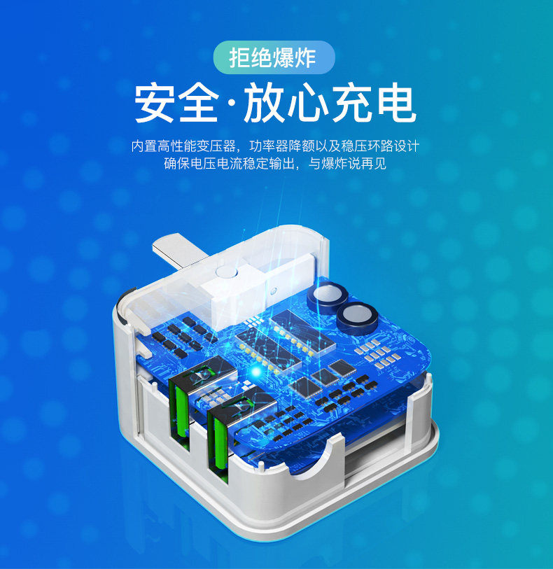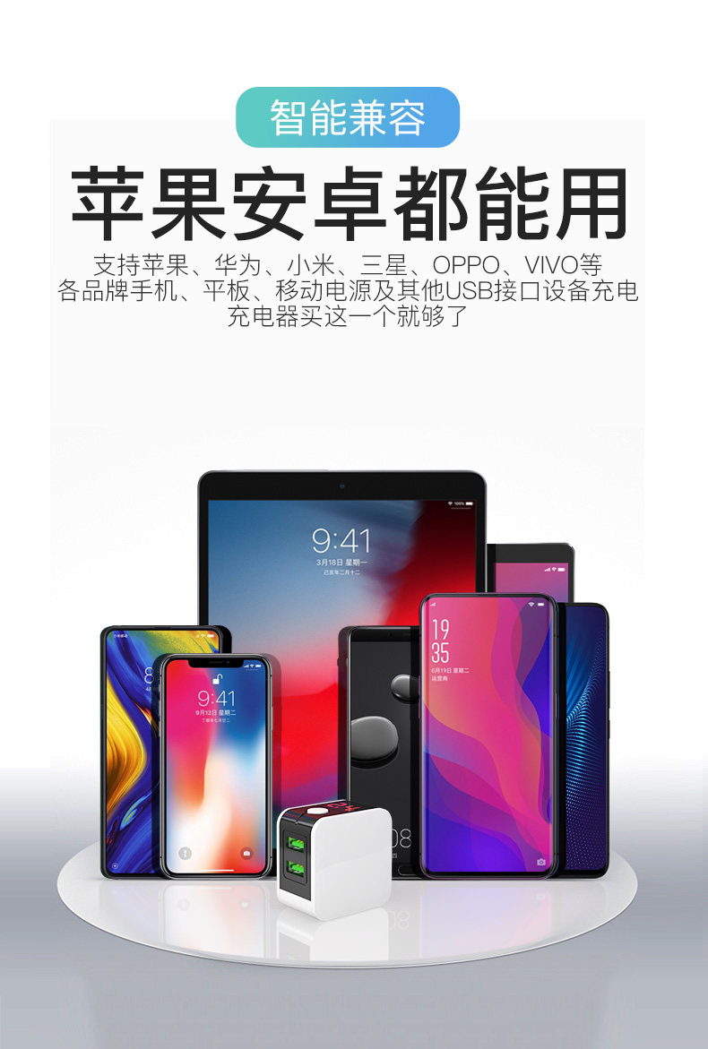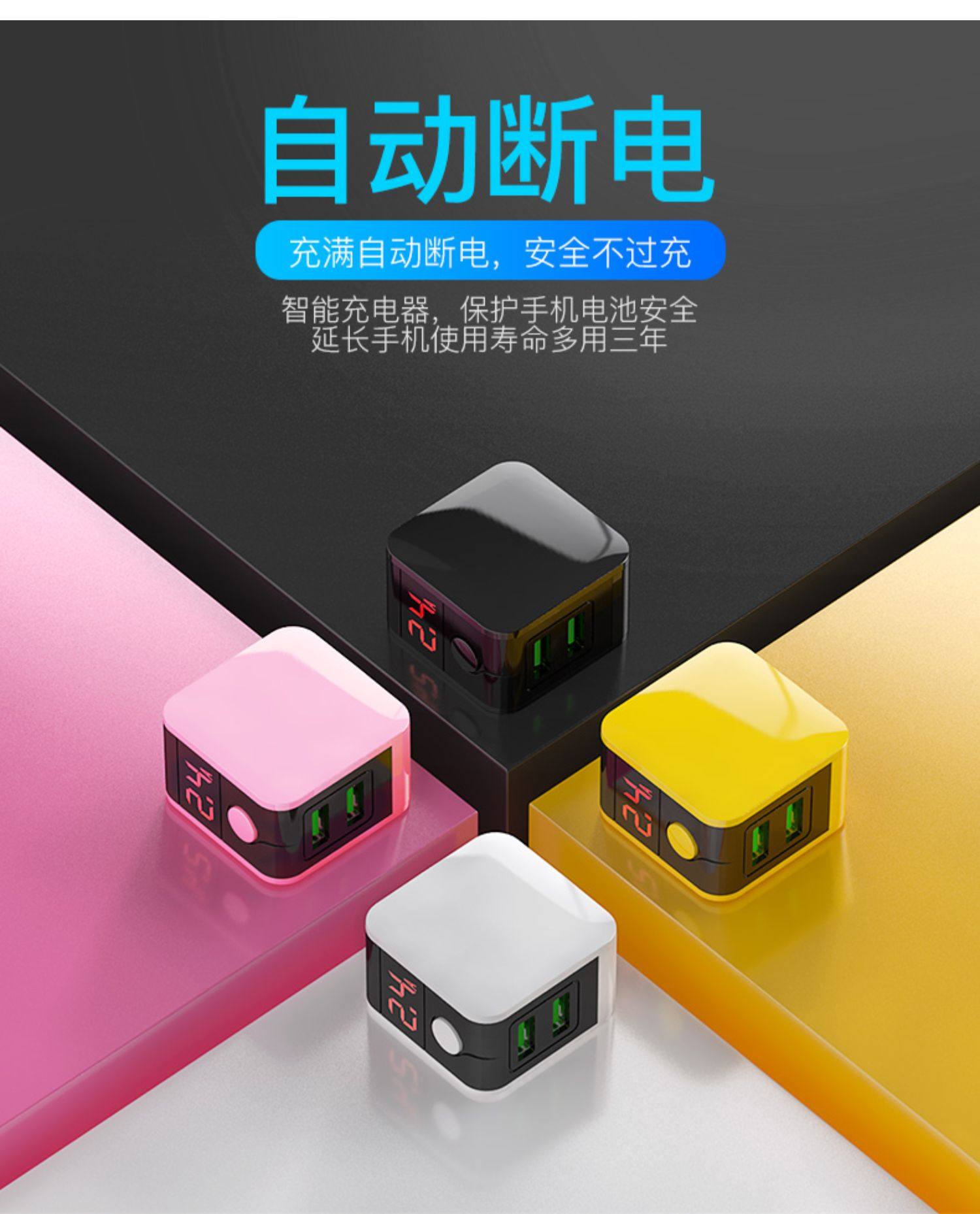 Smartphone Charger, Fast Charging Plug, Automatic Power-Off, Multi-Port, Dual Usb, Anti-Overcharge, Suitable for Apple, Oppo, Vivo, Huawei, Android, Multi-Head Universal