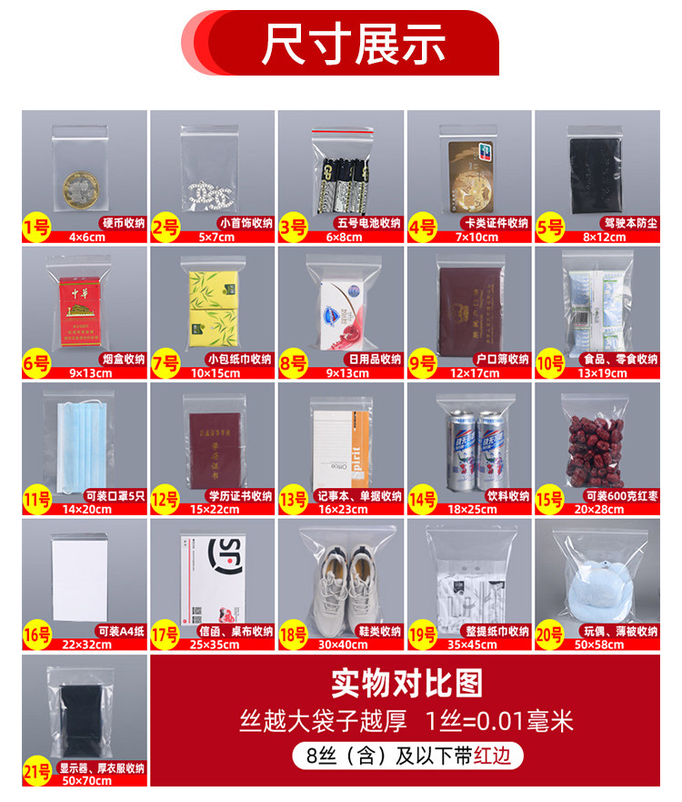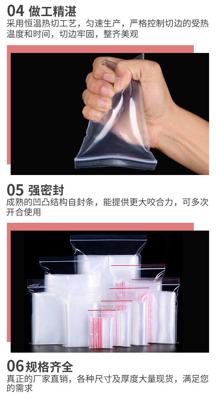 Thickened Transparent Ziplock Bag Small Plastic Sealing Bag Seal Bag Food Pe Large Fresh-Keeping Bag Plastic Packaging Bag