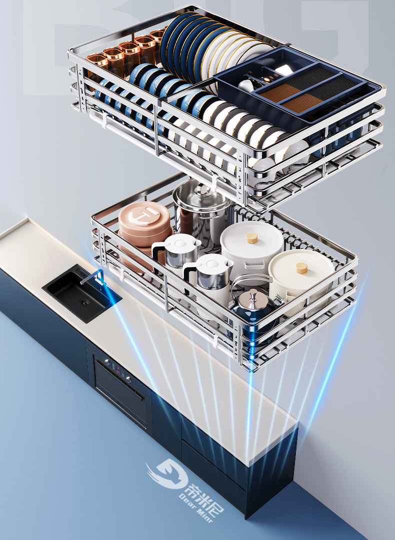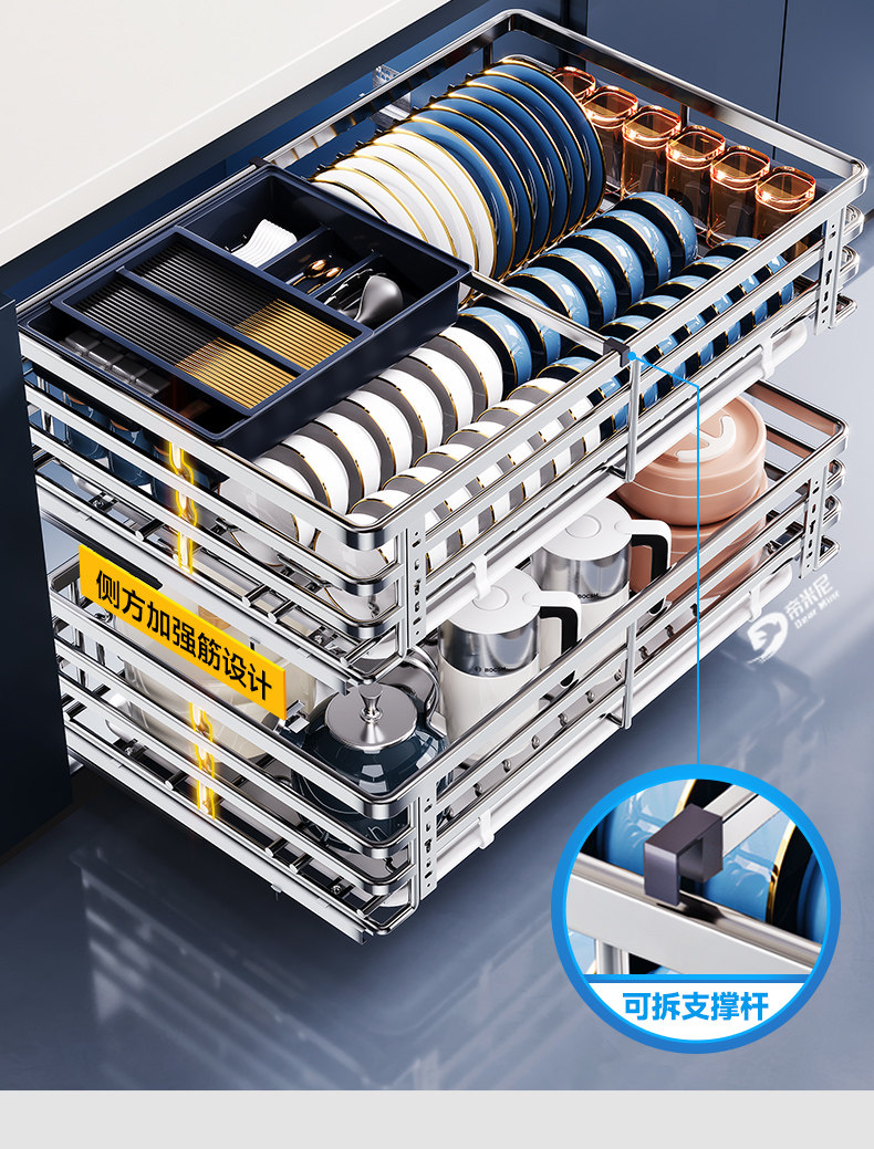 Dimitrina Basket Kitchen Cabinet 304 Stainless Steel Double-Layer Drawer-Type Dish Rack Bowl Basket Cupboard Kitchen Cabinet Bowl Basket