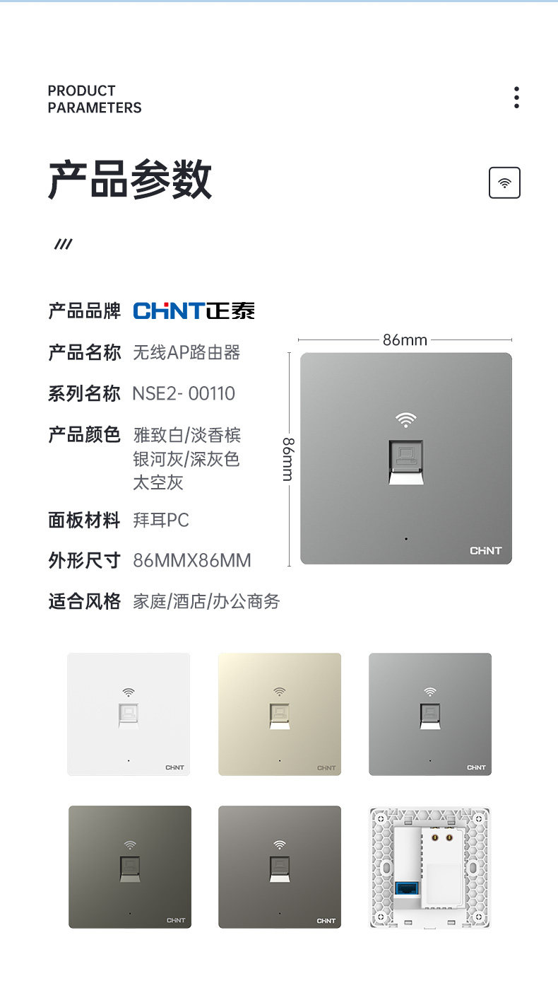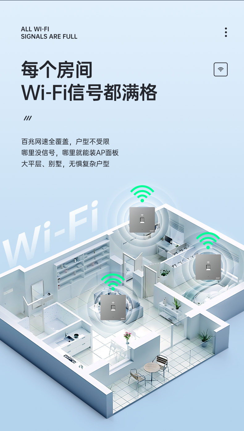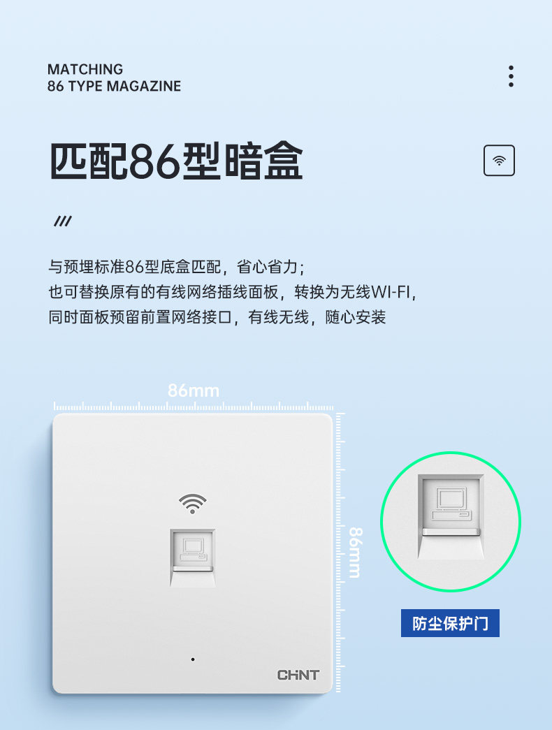 Chint 86 Type Wireless Ap Panel for Home Use, Whole-House Coverage Wifi Router, Smart In-Wall Socket