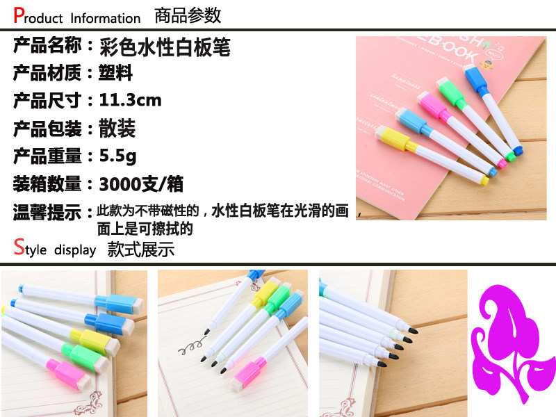 Colorful Core Whiteboard Pens for Children, Erasable Drawing Pens, Water-Based Markers, Easy-To-Erase Baby Watercolor Pens for Writing and Doodling