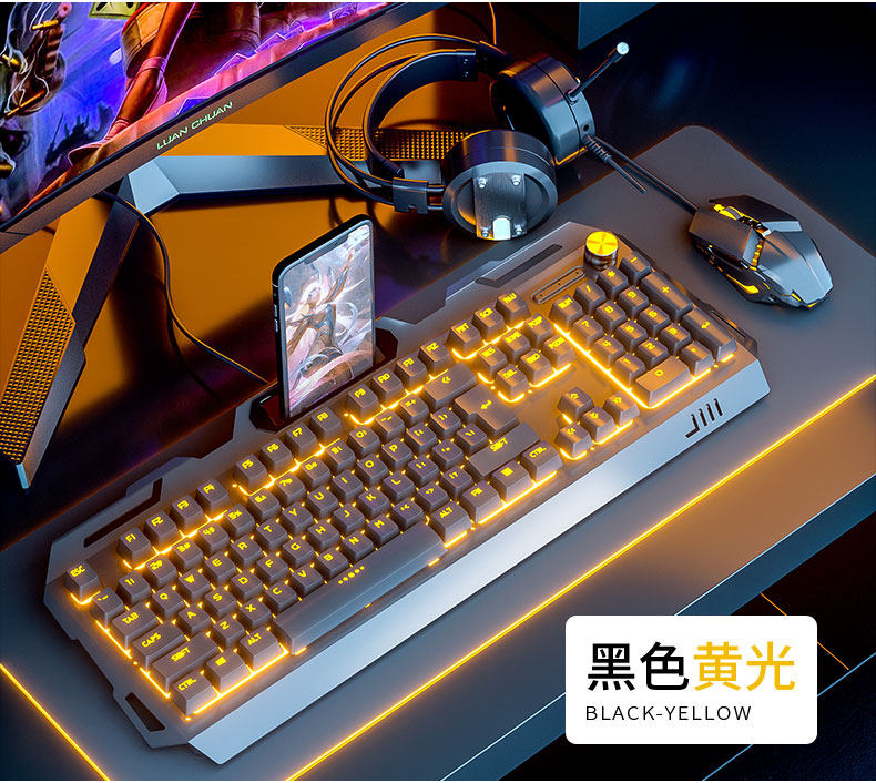 Keyboard and Mouse Set, Wired Headset Three-Piece Set, Internet Cafe Desktop Mechanical Computer Keyboard and Mouse, Special Pad for E-Sports Games