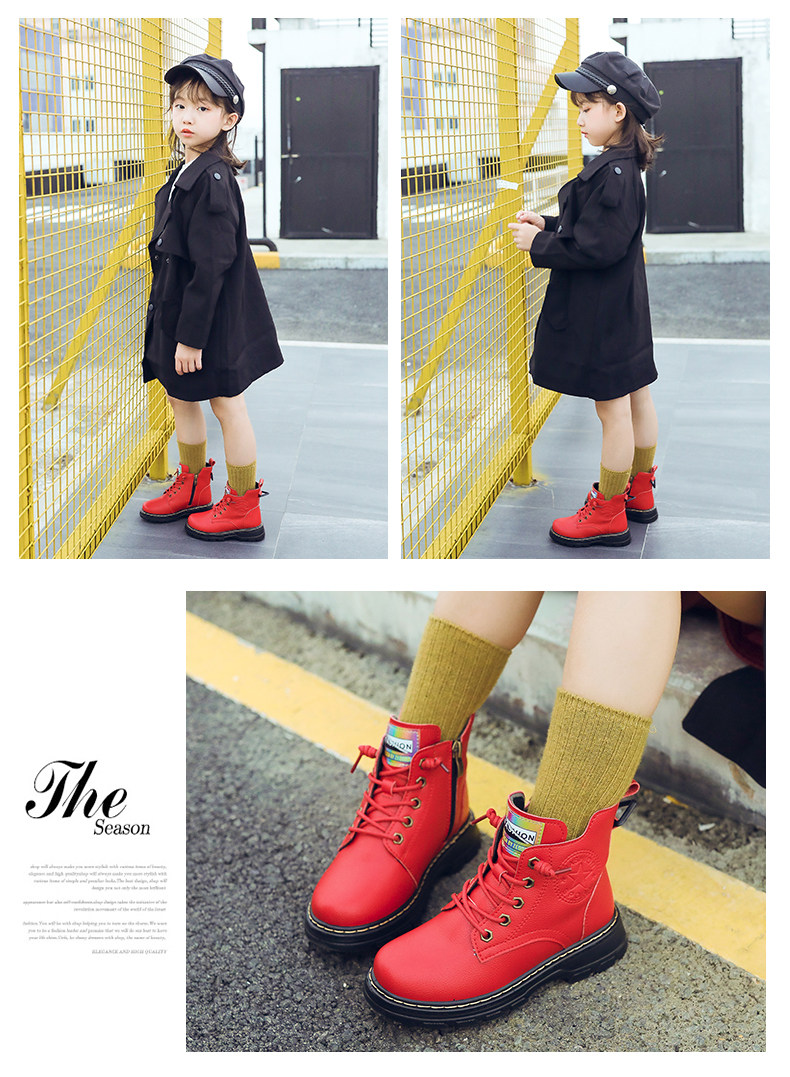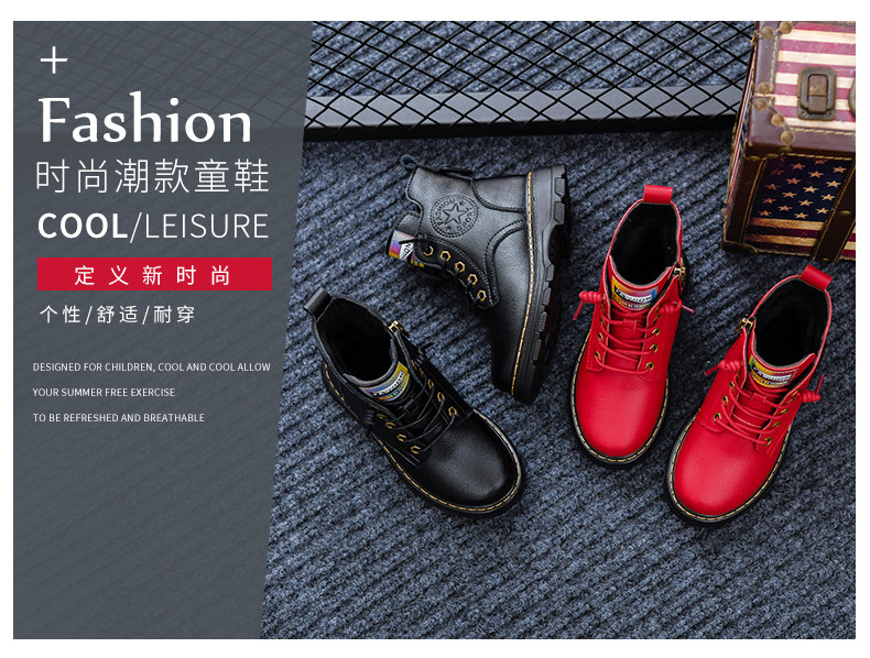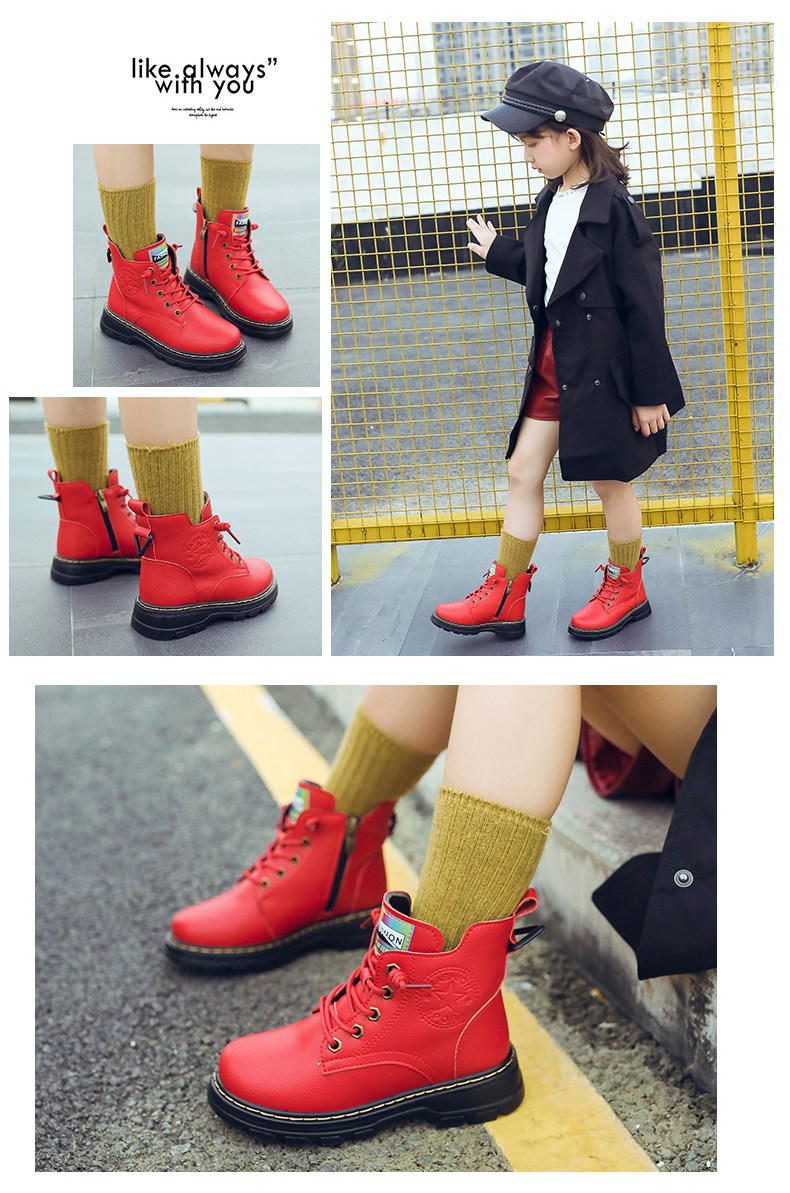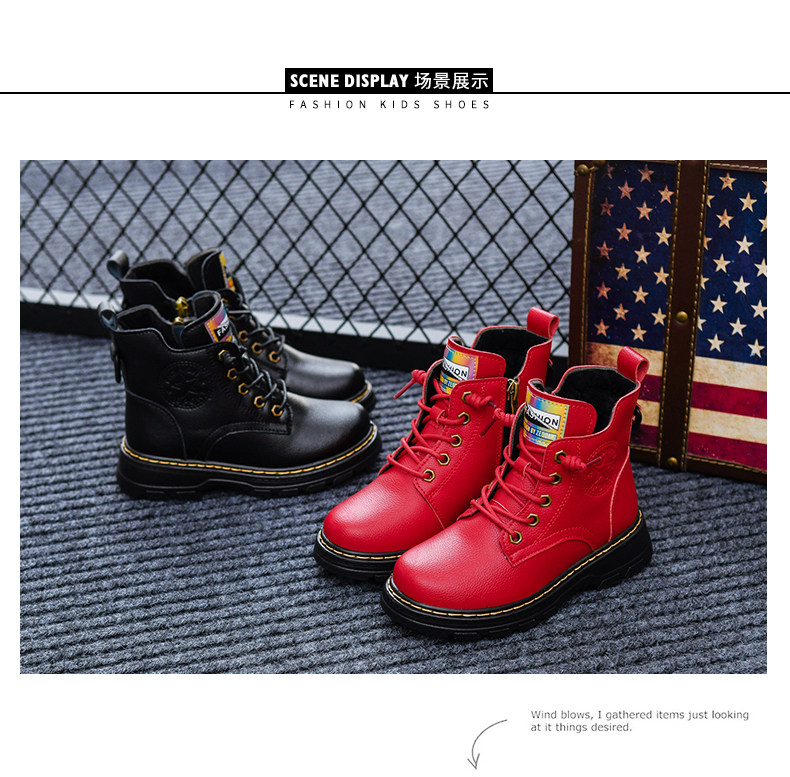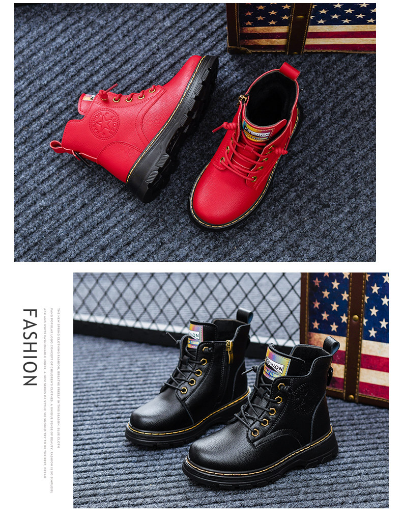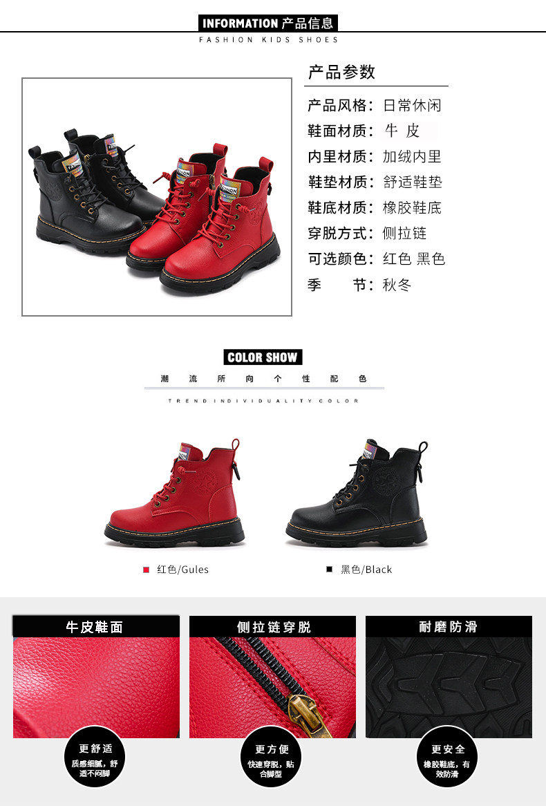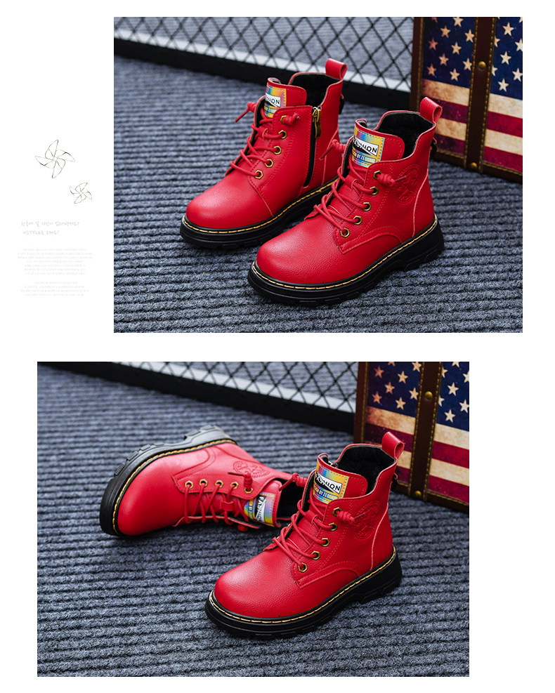 Children's Boots, Boys' Red Shoes, Cotton Boots, Girls' Genuine Leather Short Boots, Winter Velvet Cotton Shoes, Low-Top Animal Year