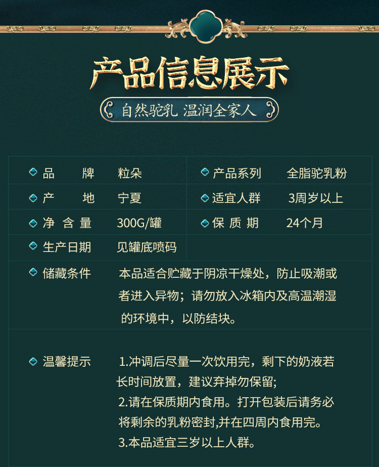 | Product Name | Full-Fat Pure Camel Milk Powder |