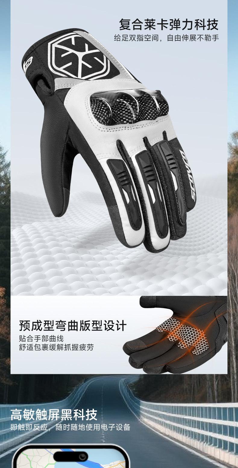 Saiyu Motorcycle Riding Gloves, All-Season, Winter Waterproof, Warm, Carbon Fiber Protective, Racing, Off-Road, Cruising, for Men and Women