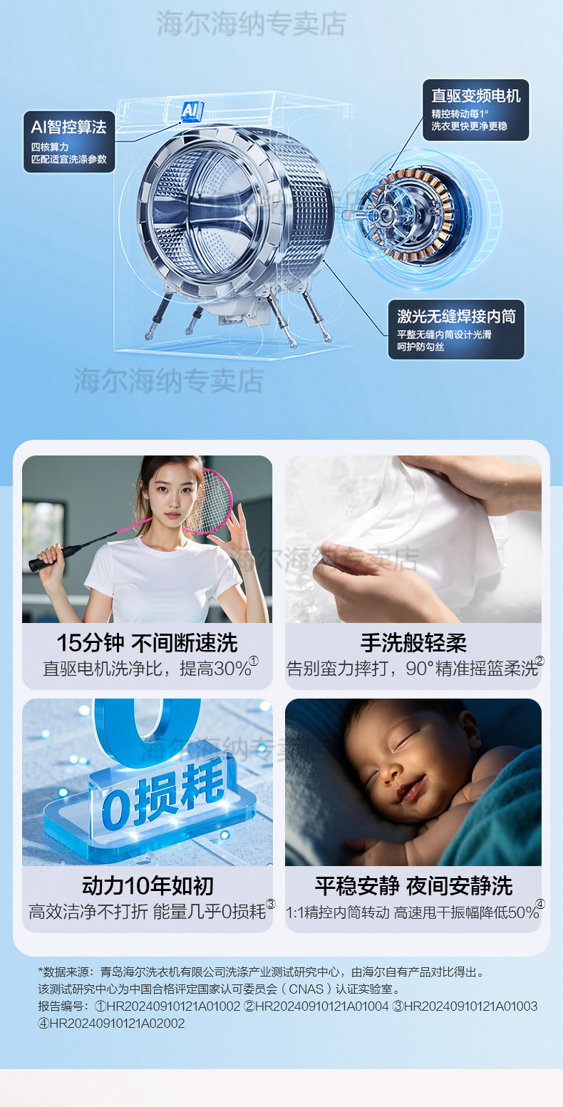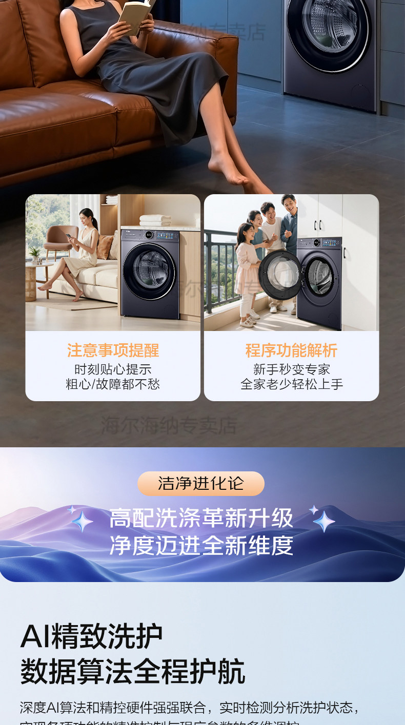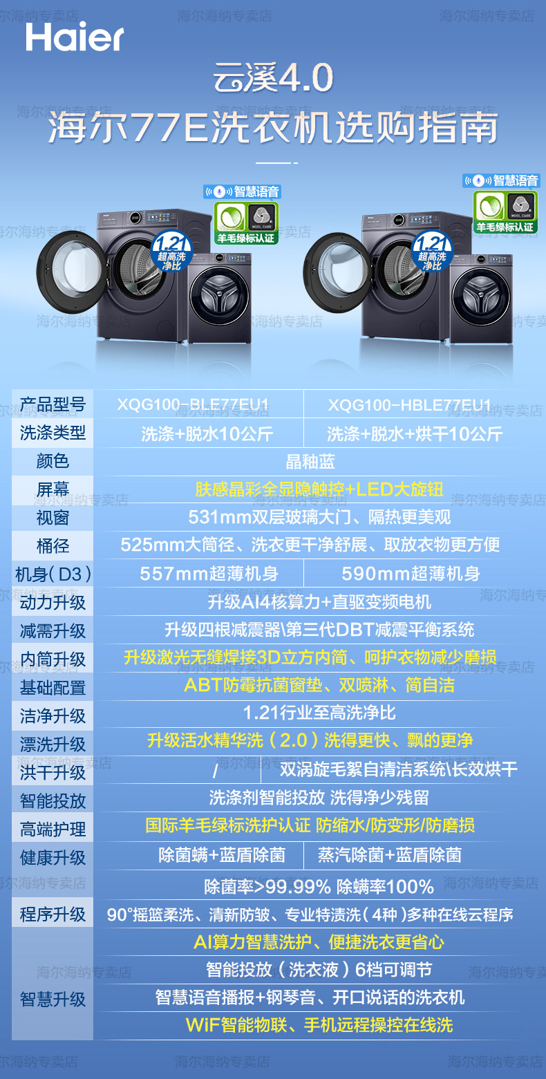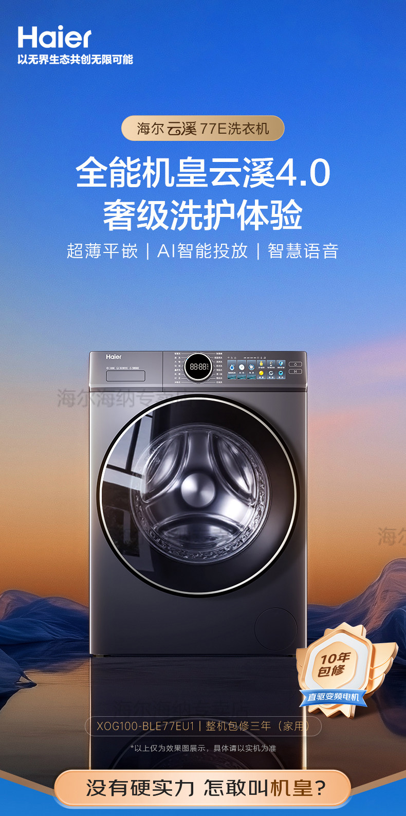 [Yunxi 4.0]Haier Drum Washing Machine for Home Use, Fully Automatic, Direct Drive, Inverter 77E Official Flagship Model