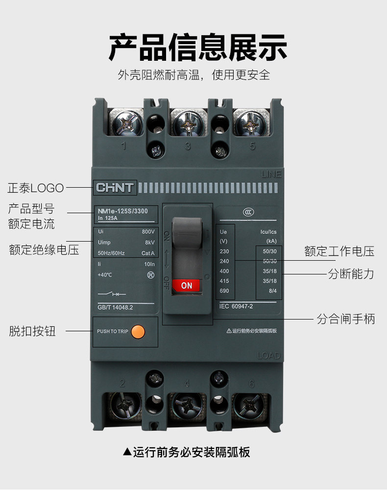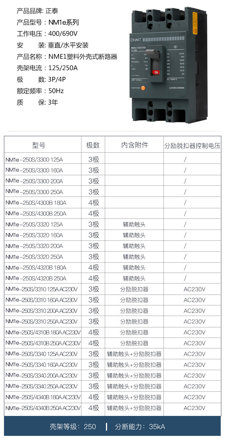 | Rated Current | 63A,80A,100A,125A,160A,175A,200A,250A |