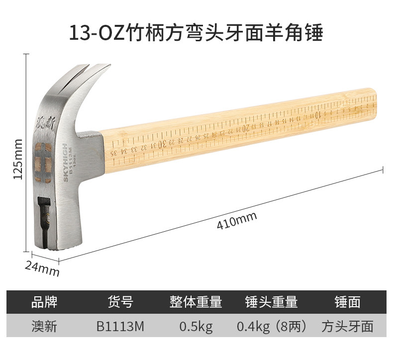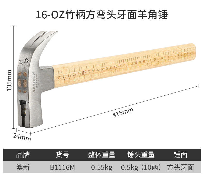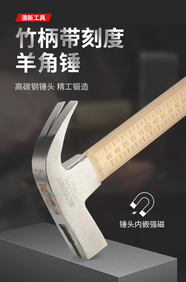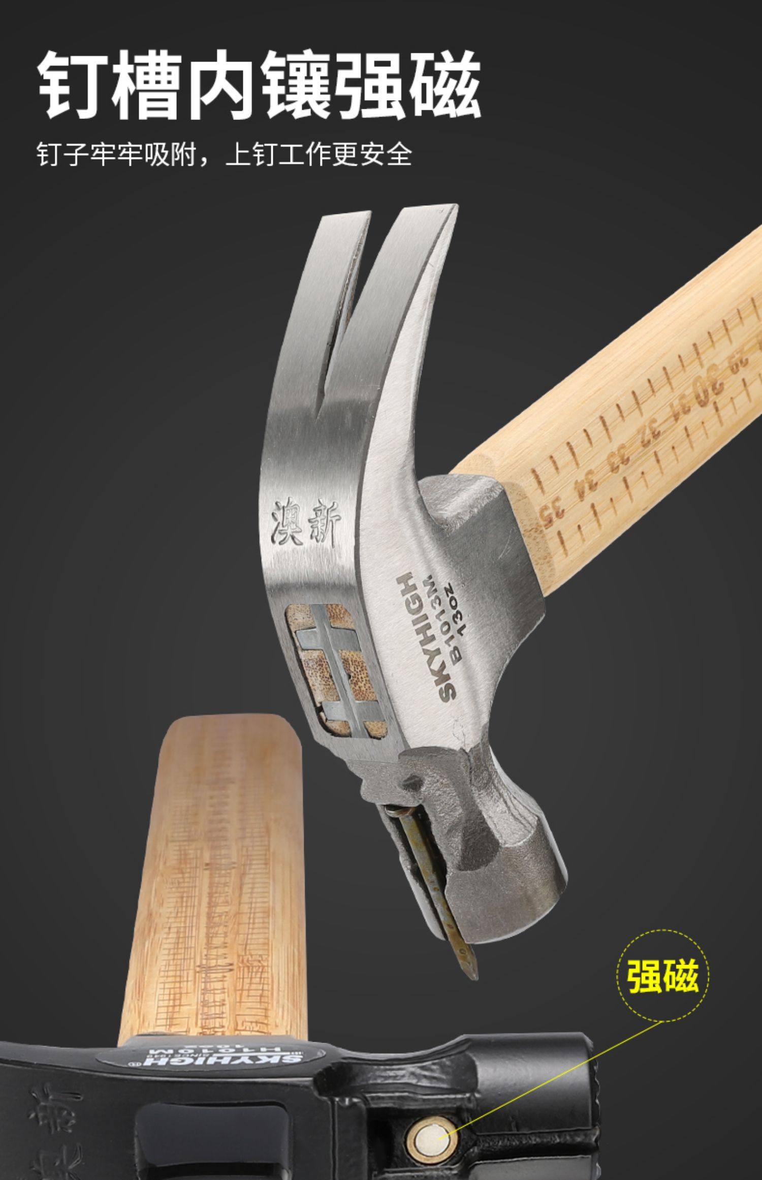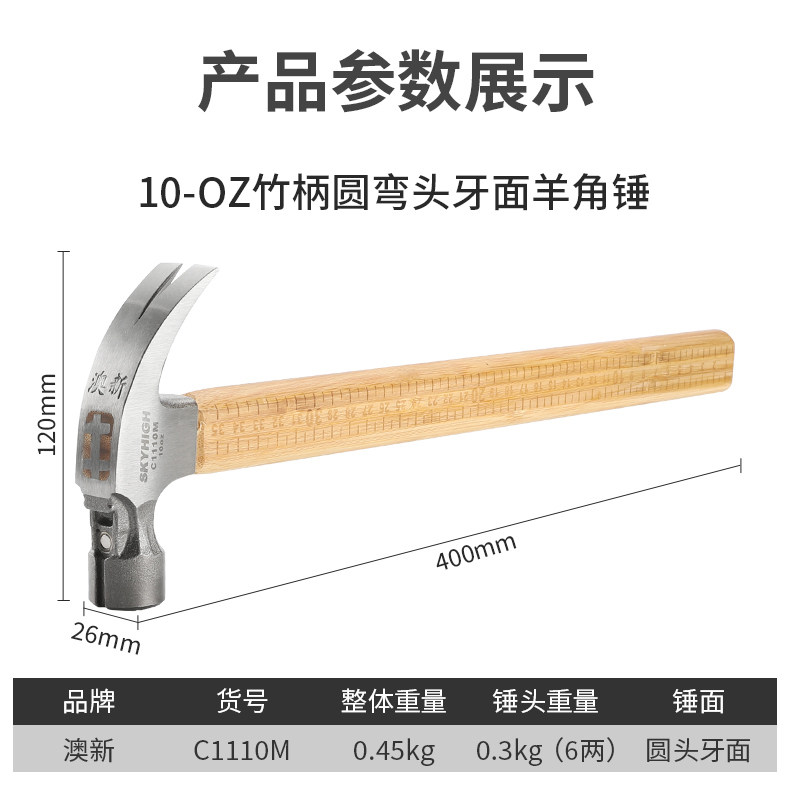 Australian and New Zealand Claw Hammer with Bamboo Handle and Scale, Woodworking-Specific Nail Hammer, Integrated Hammer Head, Special Steel Household Hammer, Multi-Functional