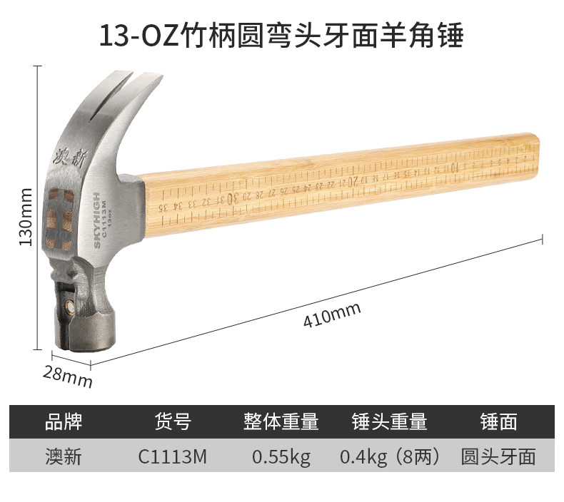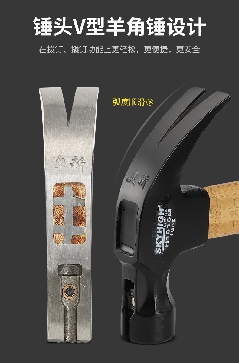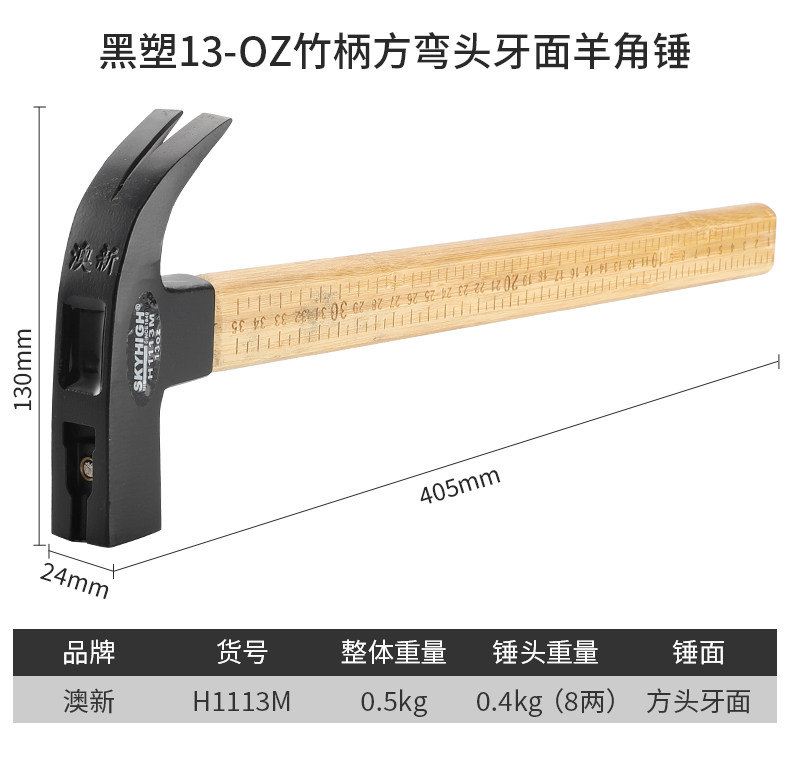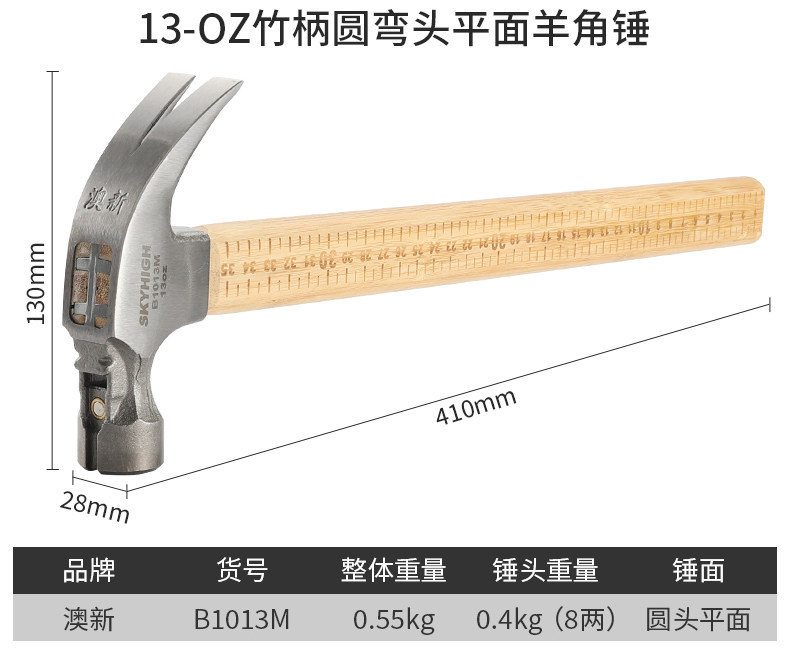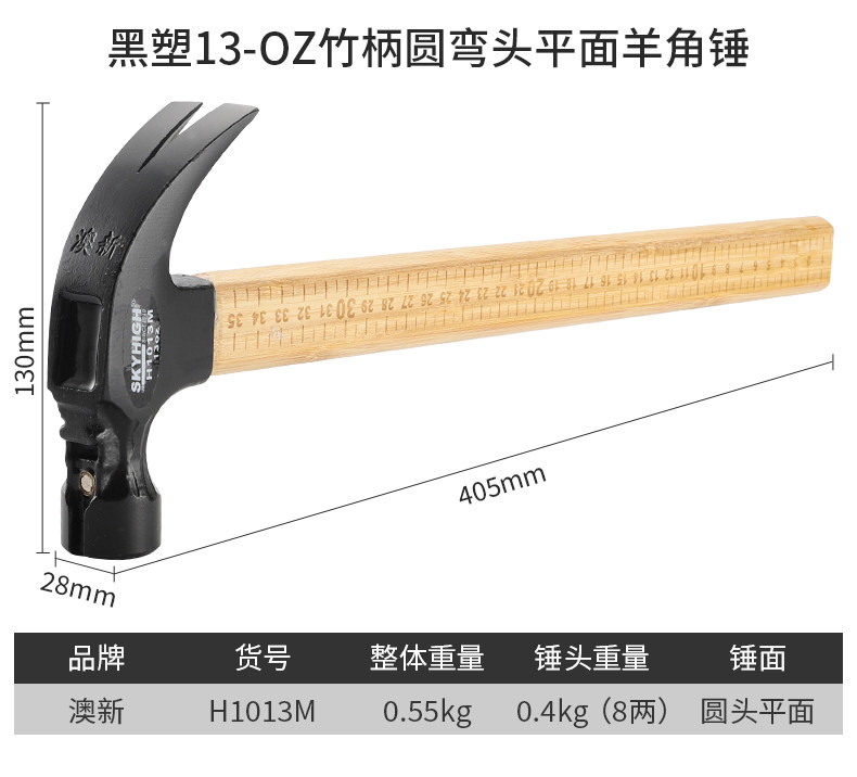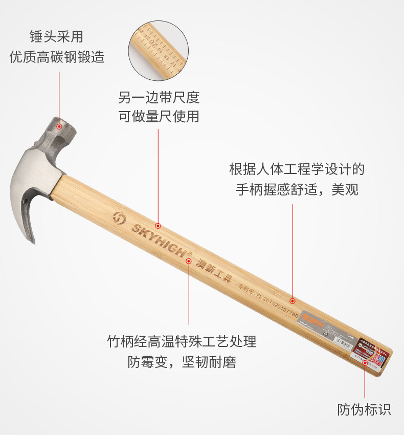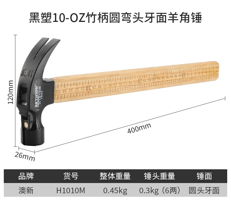 Australian and New Zealand Claw Hammer with Bamboo Handle and Scale, Woodworking-Specific Nail Hammer, Integrated Hammer Head, Special Steel Household Hammer, Multi-Functional