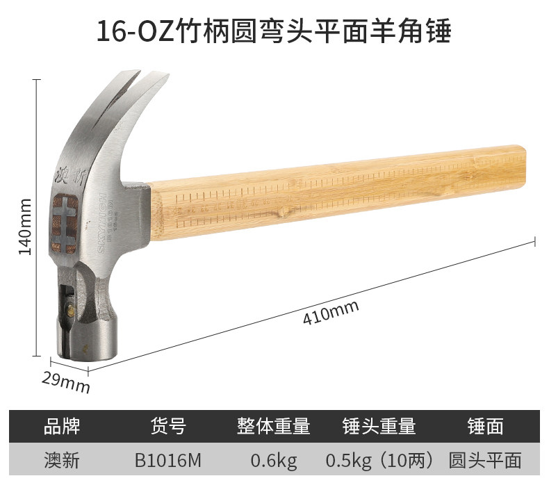 | Model | Australian and New Zealand Bamboo Handle Claw Hammer |