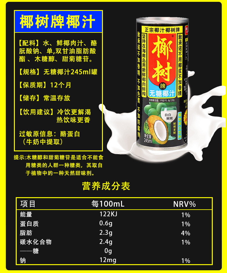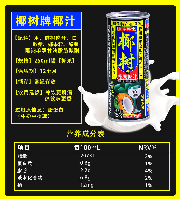 Authentic Coconut Tree Brand Coconut Juice 245ml*24 Cans Freshly Squeezed Coconut Juice Flagship Water Milk Juice Beverage Store Whole Box