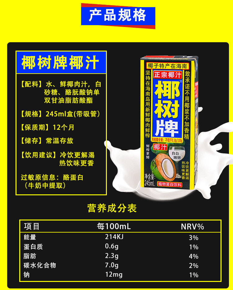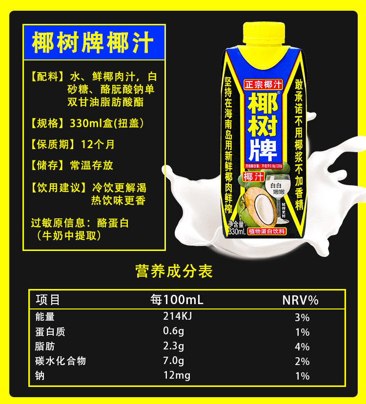 | Taste | 245ml X 24 Boxes (New Date),245ml×24 Boxes/Left Within 5 Months of Shelf Life,245ml×24 Cans[New Date],245ml×24 Cans/Left Within 5 Months of Shelf Life,330ml×24 Boxes[New Date],330ml×24 Boxes/5 Months Left in Shelf Life,1.25L×6 Bottles[New Date],1.25L×6 Bottles/4 Months Left in Shelf Life,[Coconut Juice]250ml×24 Cans,[Sugar-Free Coconut Juice]245ml×24 Cans,[Coconut Water]330ml×24 Boxes,245ml*12 Boxes/Left Within 5 Months of Shelf Life,245ml*12 Boxes[New Date] |