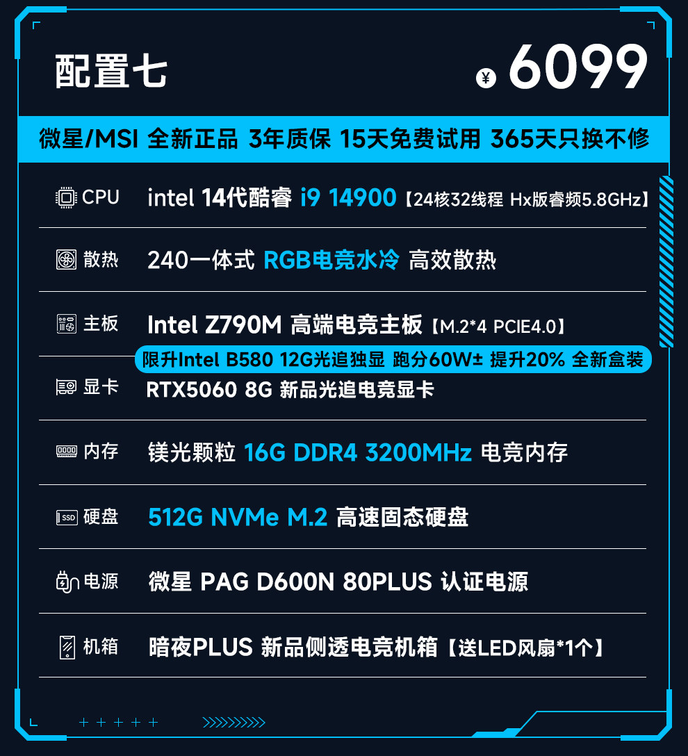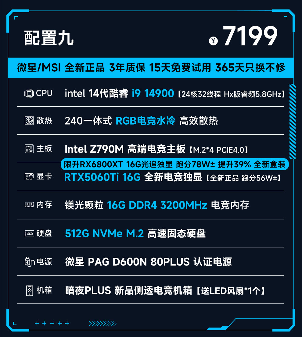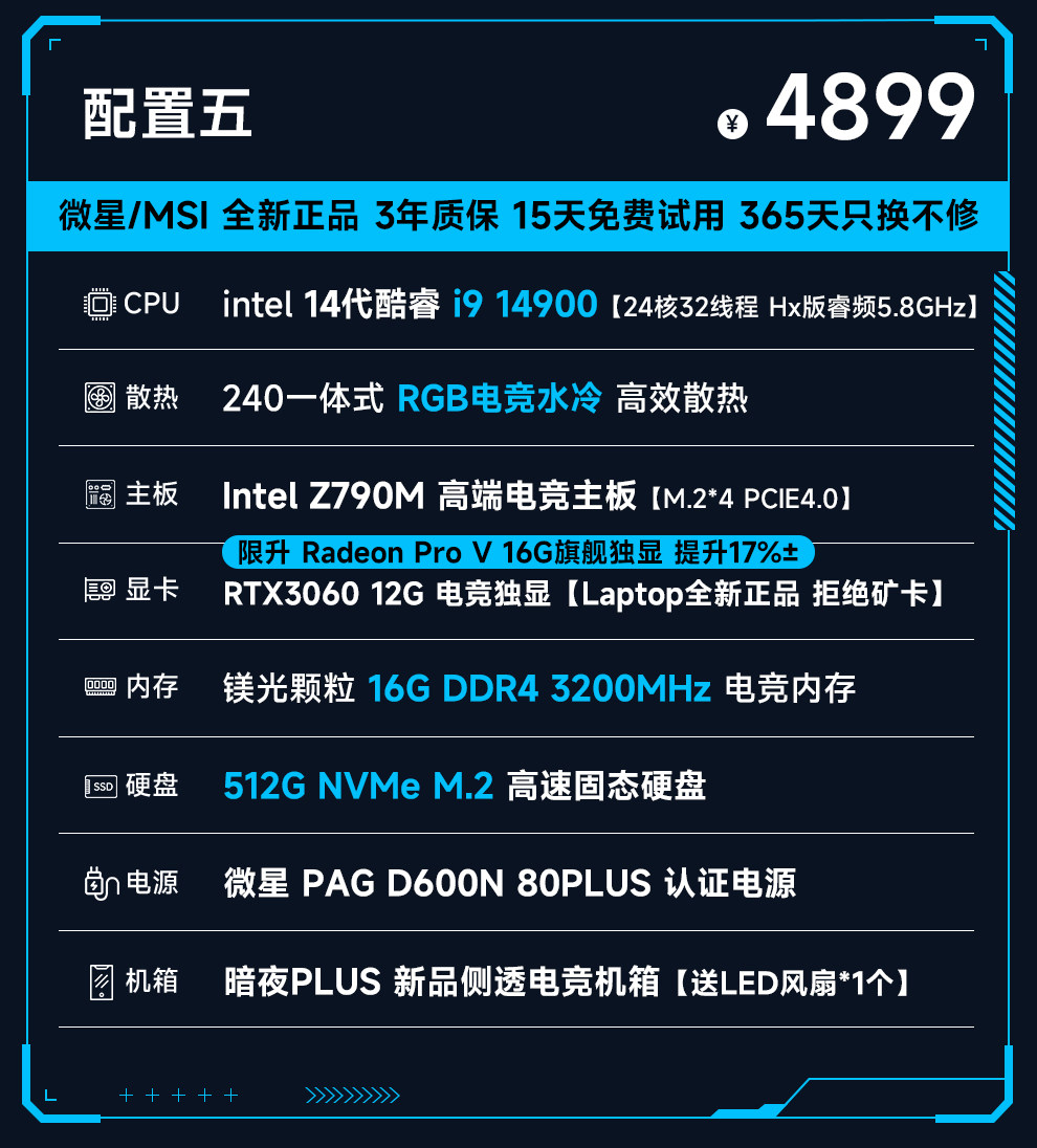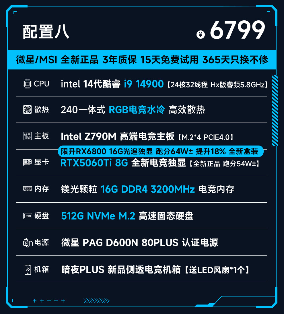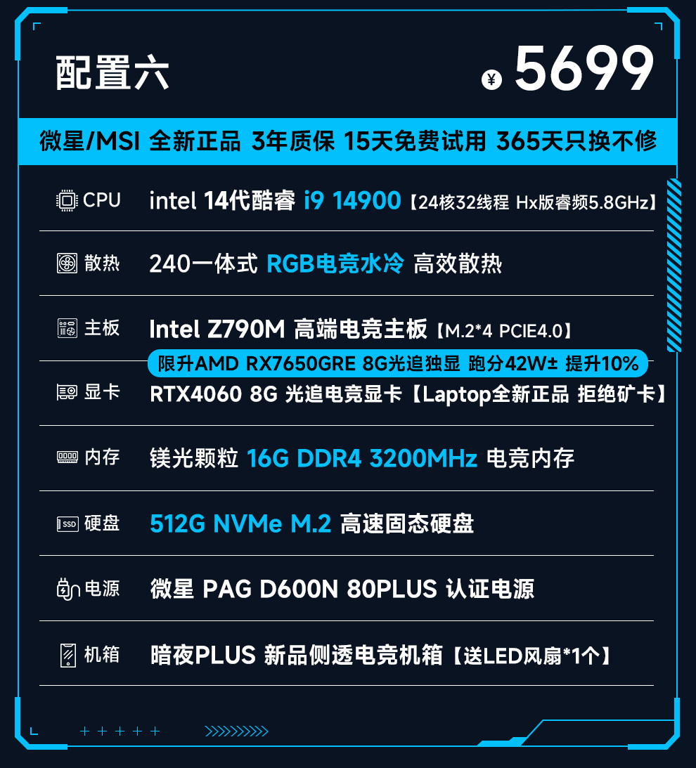 Msi 14Th Generation Core I9 14900/13900Hx/Rtx4060/5060Ti Computer Host for E-Sports and Gaming, Assembled DIY Desktop Computer
