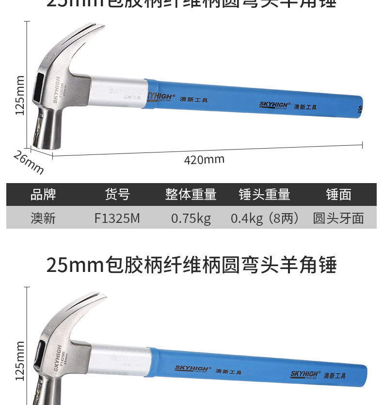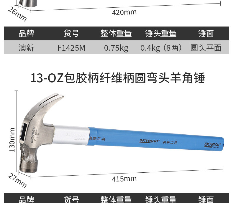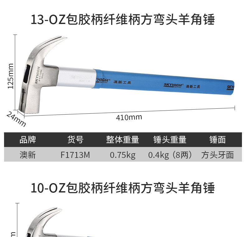 | Model | Fiber Handle Australian and New Zealand Claw Hammer |