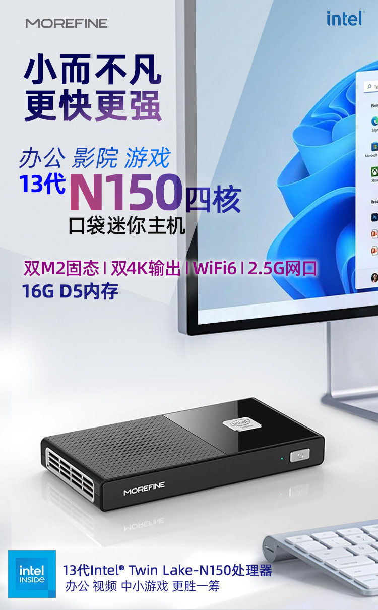 Mofang 13Th Generation N150 Mini Host Win11 Office Home Gaming Mini Pc Small Computer 4K Barebone M6