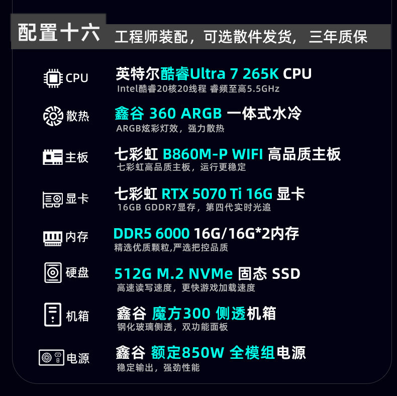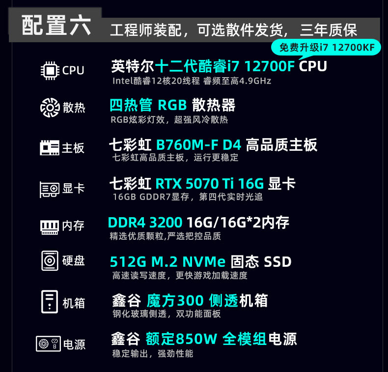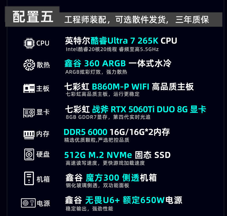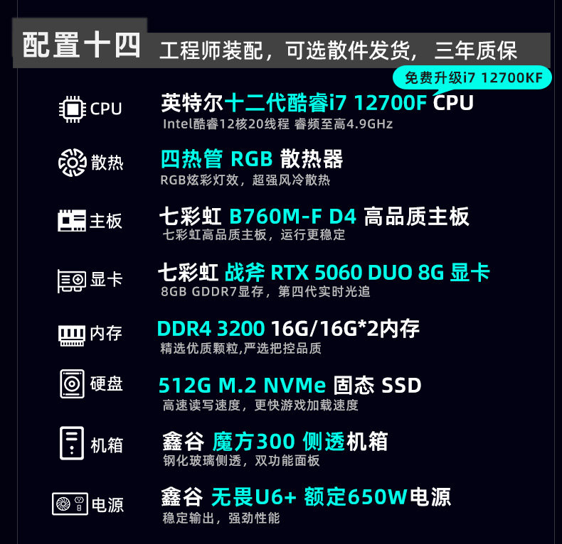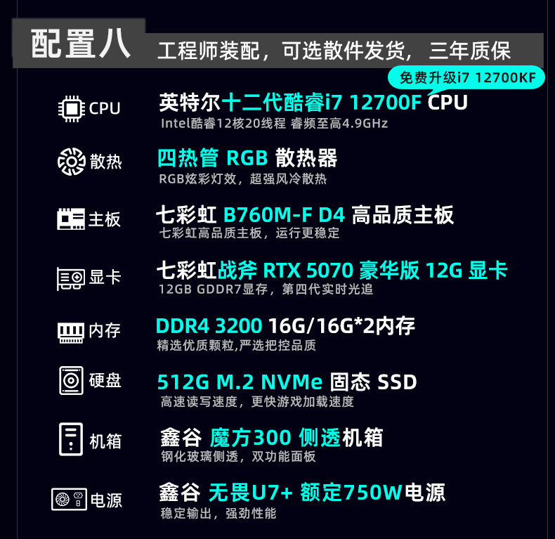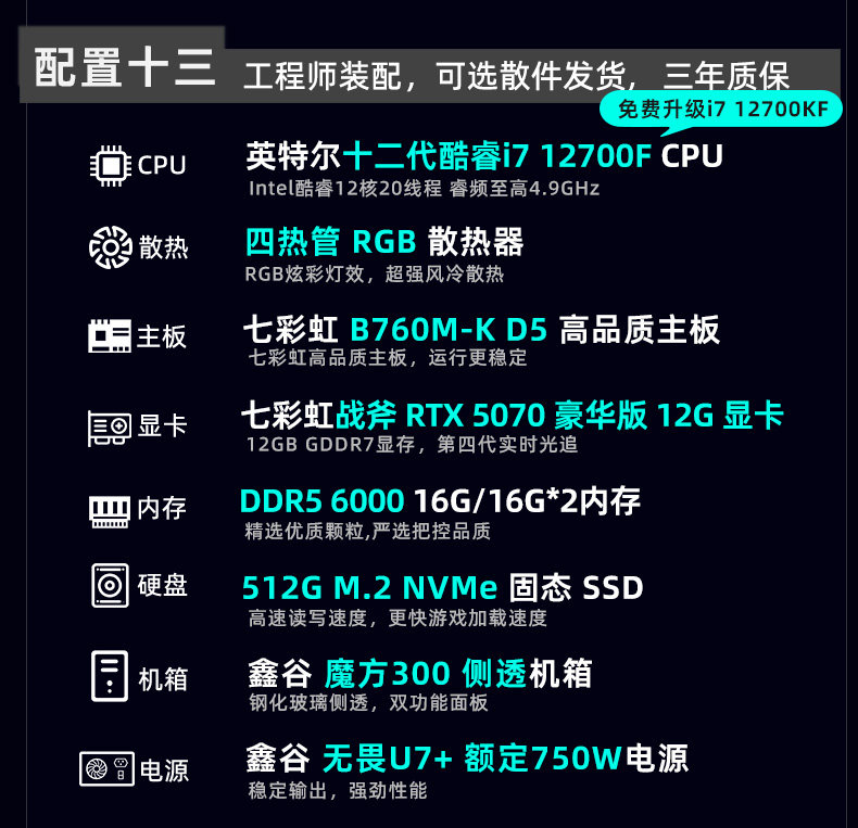 Colorful Pc I7 12700F 265K Rtx5060Ti 5070Ti 5070 Rtx5060 8g Graphics Card Assembled Computer Desktop Gaming All-In-One Hardware DIY Build