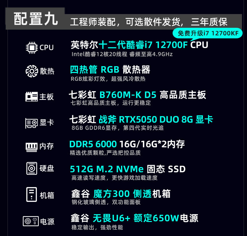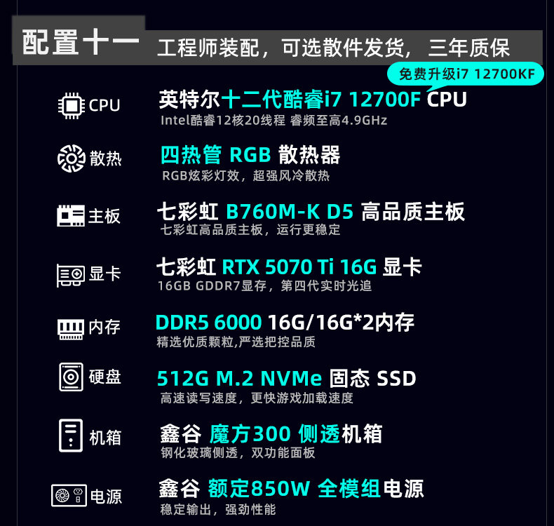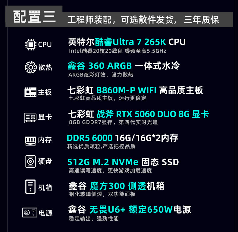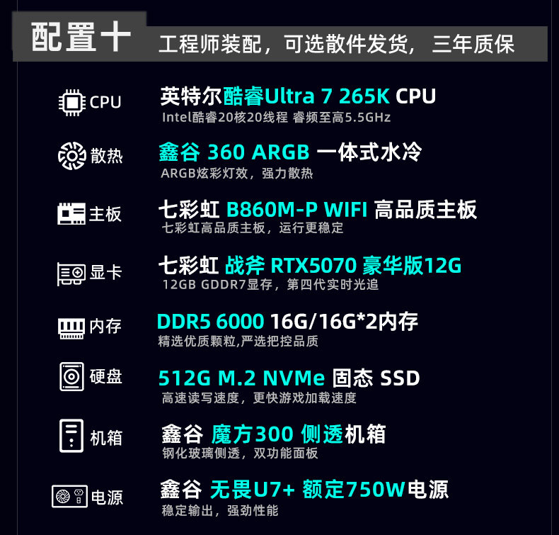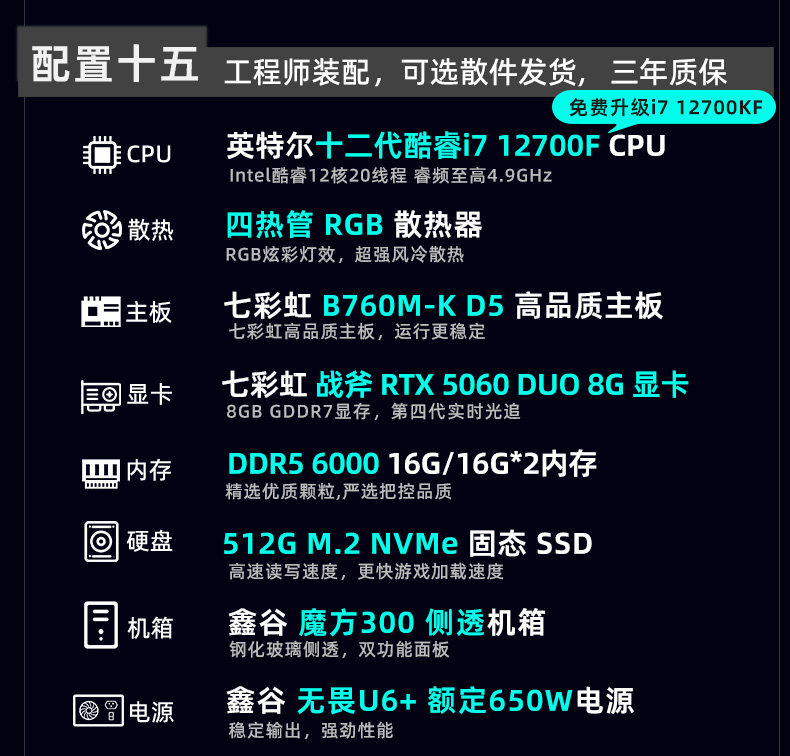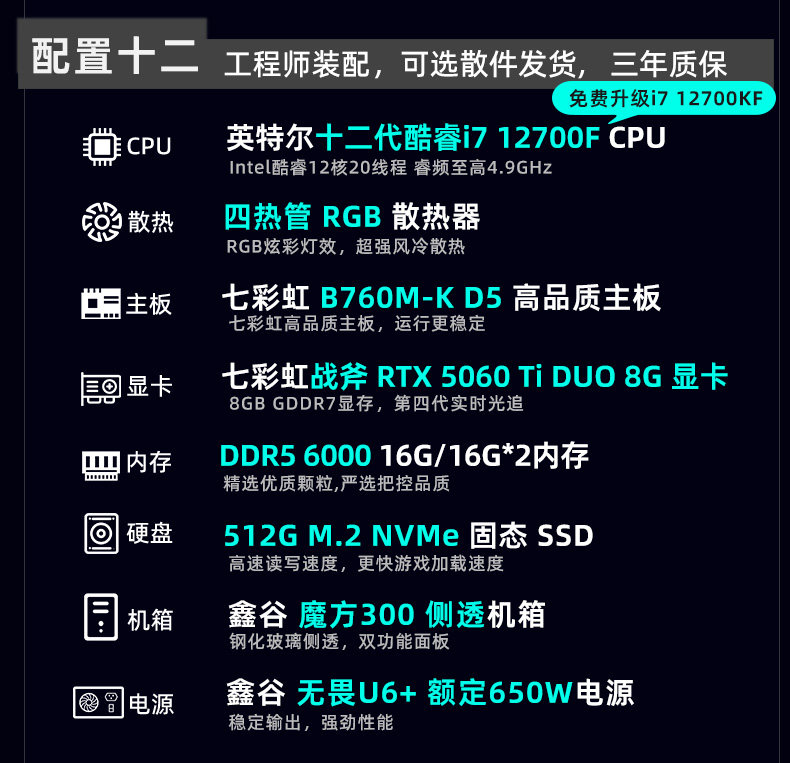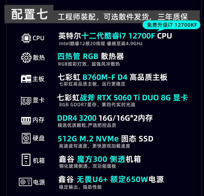 Colorful Pc I7 12700F 265K Rtx5060Ti 5070Ti 5070 Rtx5060 8g Graphics Card Assembled Computer Desktop Gaming All-In-One Hardware DIY Build