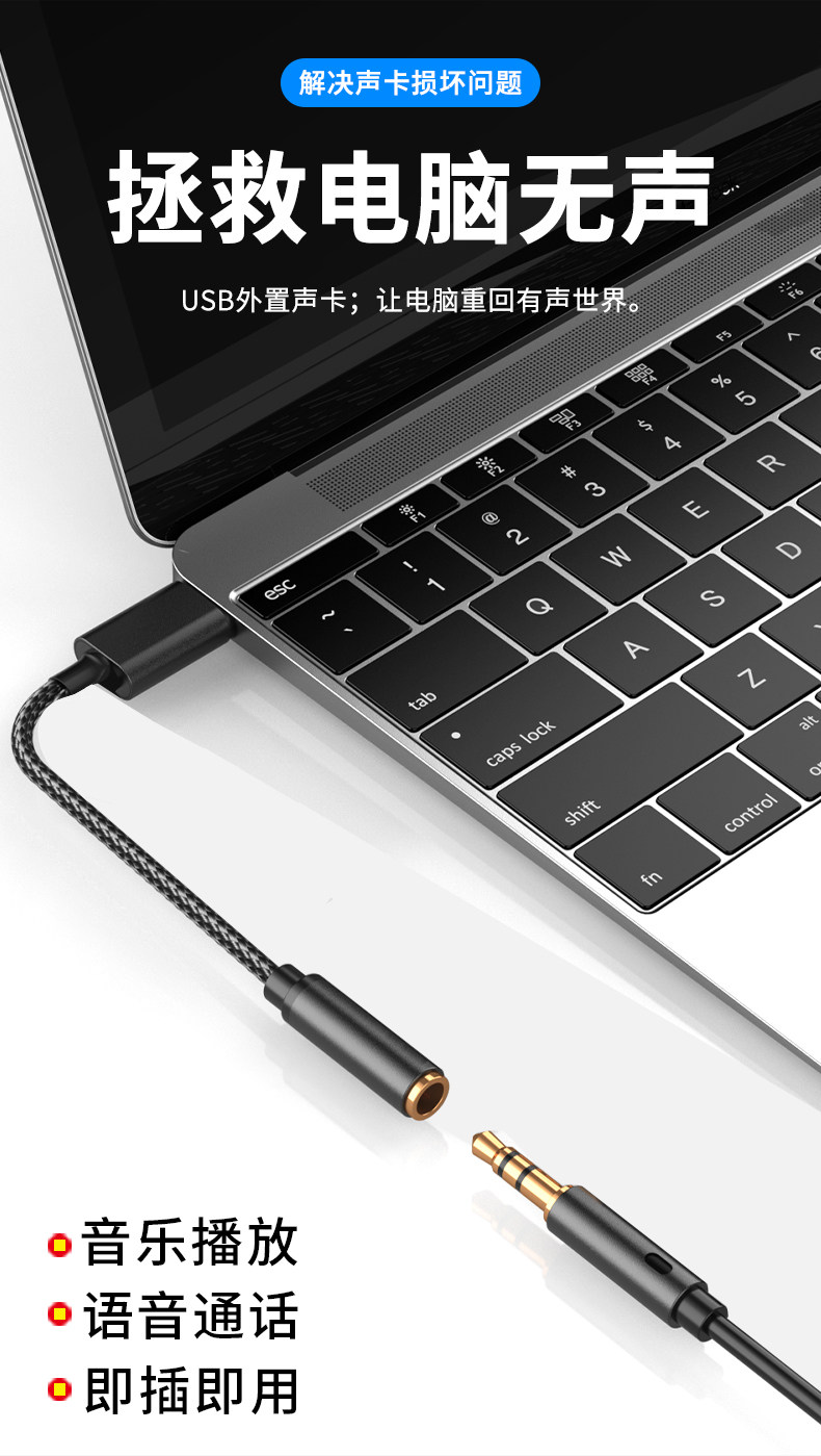 USB Headphone Converter to 3.5mm Sound Card Computer Microphone Adapter Suitable for Laptops and Desktops, Compatible with Apple Headphones, External Sound Card Single-Hole Headset Two-In-One Audio Interface Adapter Cable