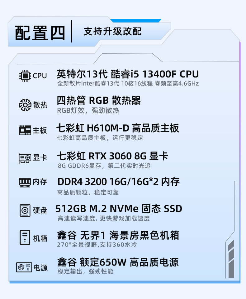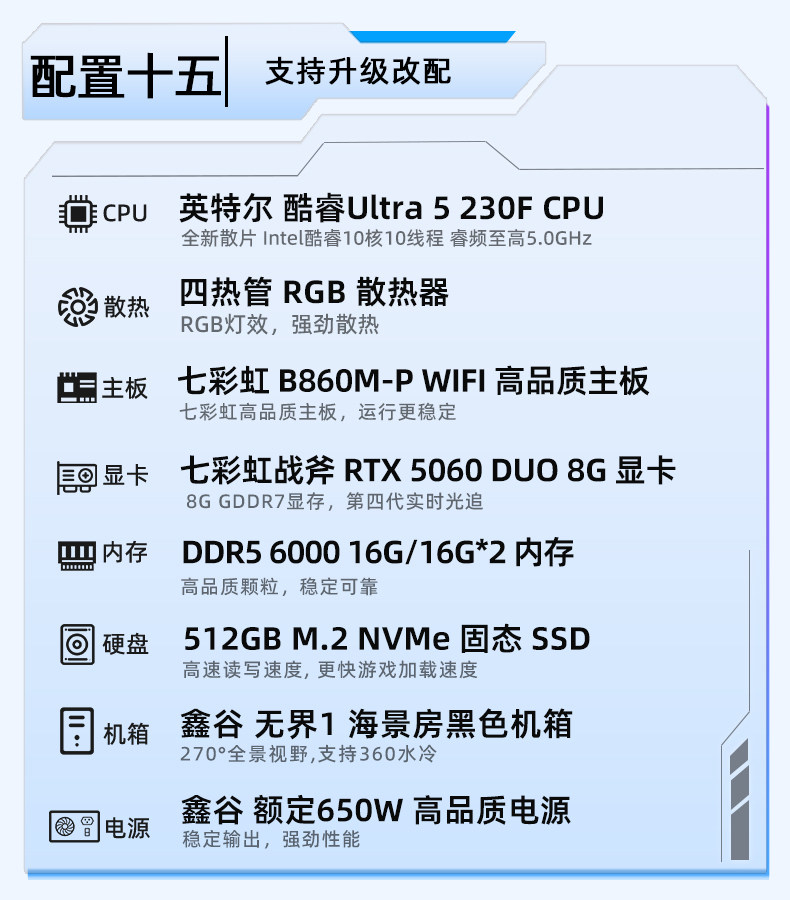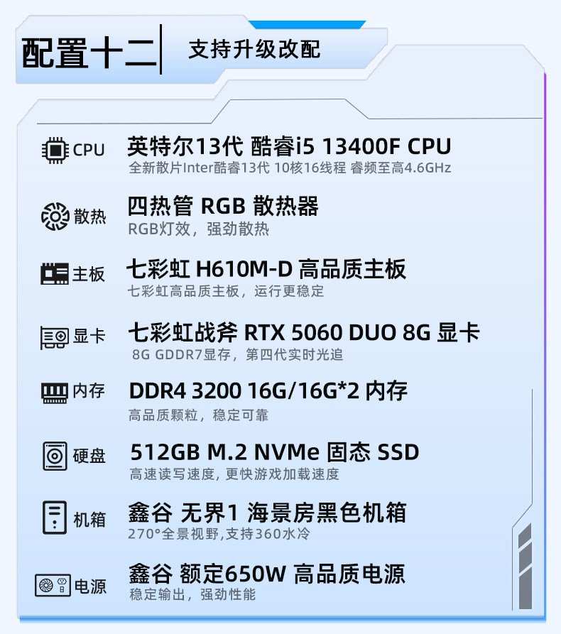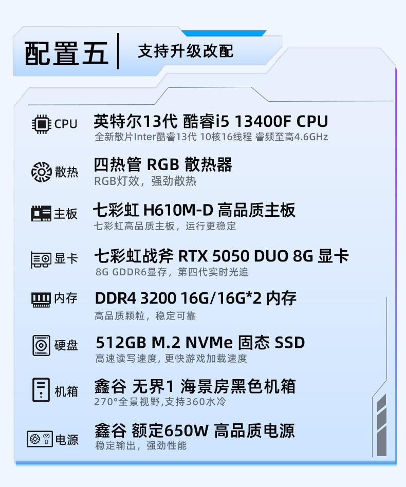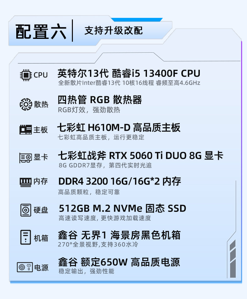 Colorful Computer Pc U5 230F I5 13400F 5060Ti 8g Rtx5060 5070 Graphics Card Assembled Desktop Computer All-In-One Gaming Rig Hardware DIY Setup