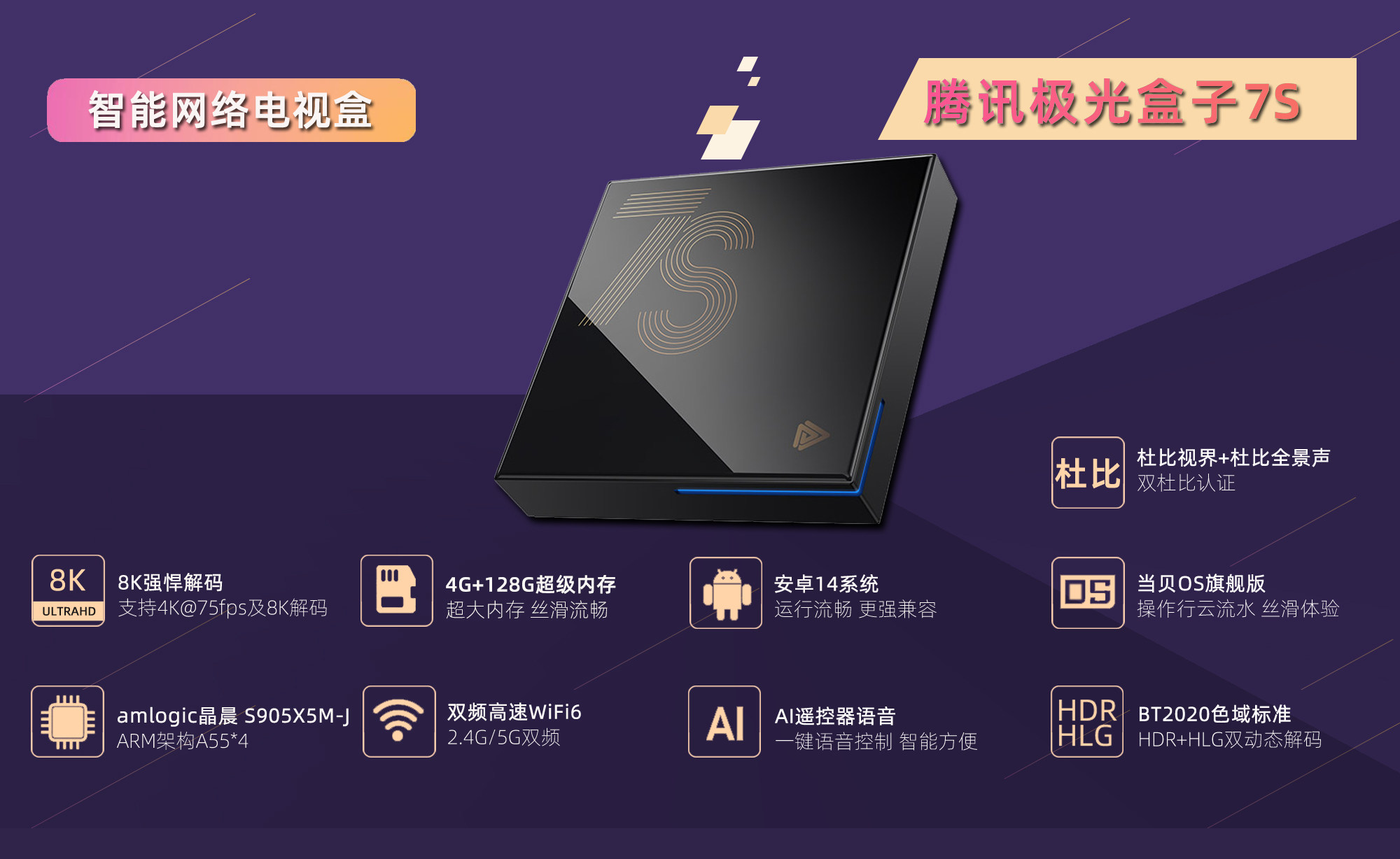 Tencent Aurora Box 7S Android 14 Smart Ultra-Clear 8K4K Internet Tv Player 4+128g Dolby Vision