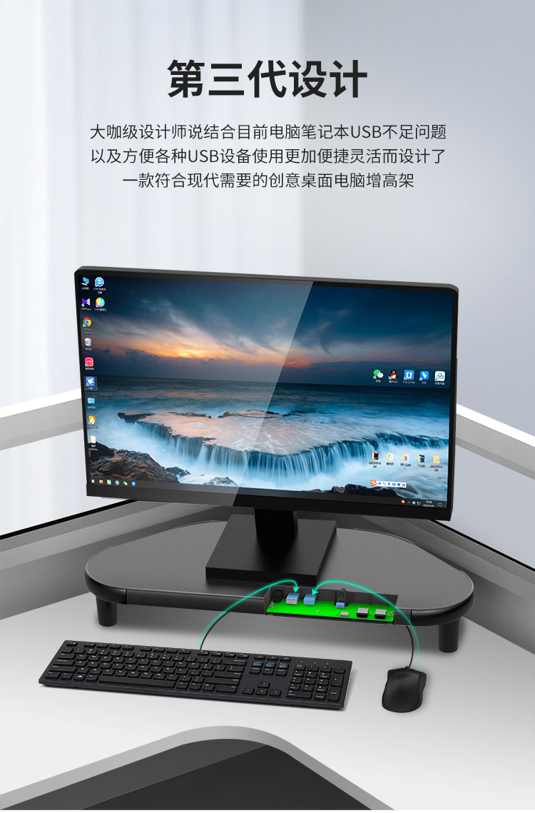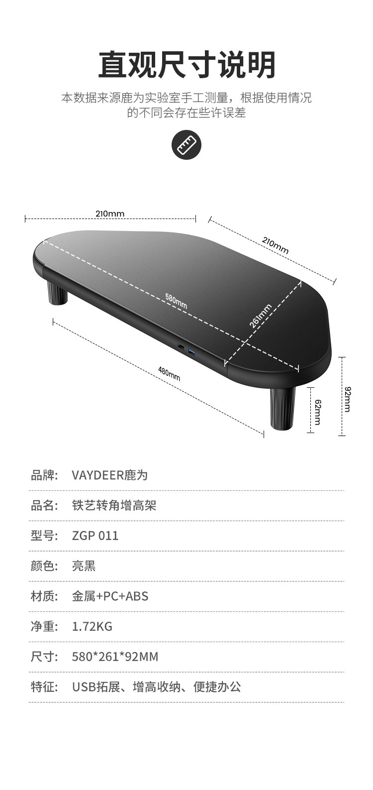 Luye Corner Computer Riser Stand, Special for Triangular Monitor Position, Office Workstation Desktop Desktop Computer Screen Laptop Storage Stand, USB Multi-Function Display Metal Bracket