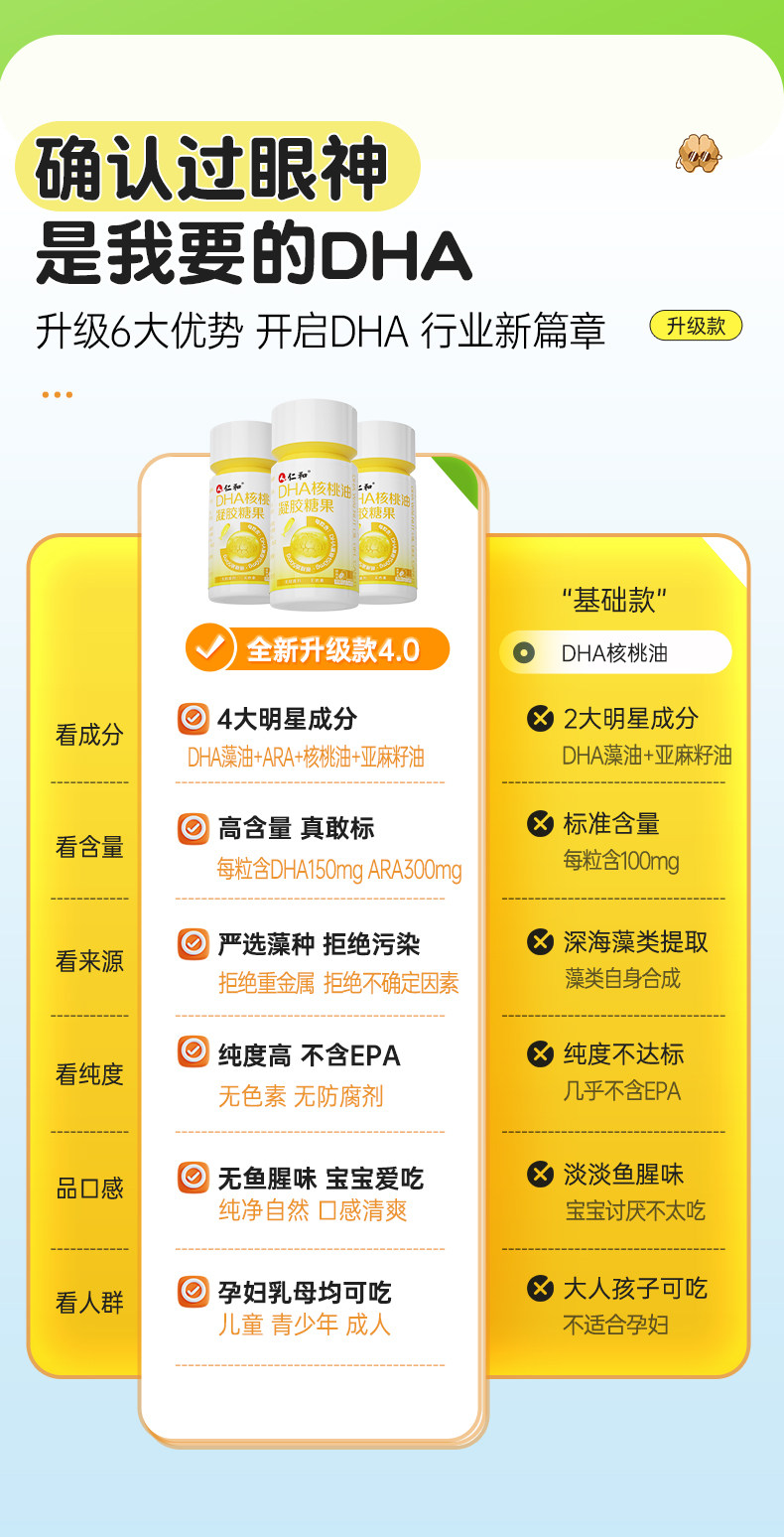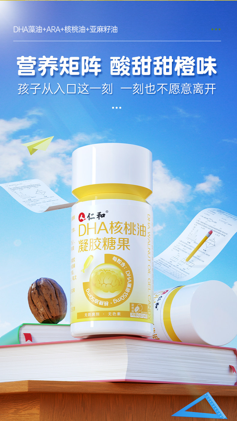 Renhe Dha Walnut Oil, Nervonic Acid, Algae Oil for Children and Students, Memory Enhancement, Official Flagship Store, Non-Specific Enhancement Jw