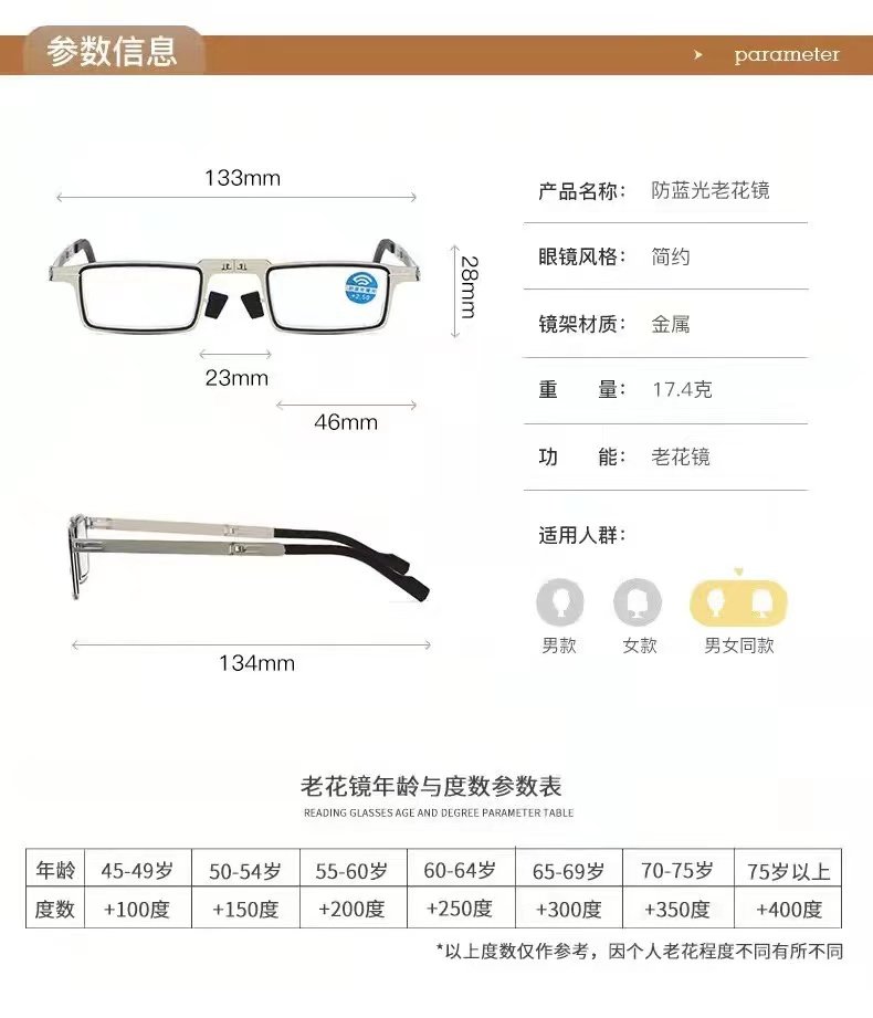 Tiktok-Style Foldable Reading Glasses for Elderly Men and Women, High-Definition, Anti-Blue Light, Fashionable, Anti-Fatigue, Ultra-Light, Portable, and Comfortable