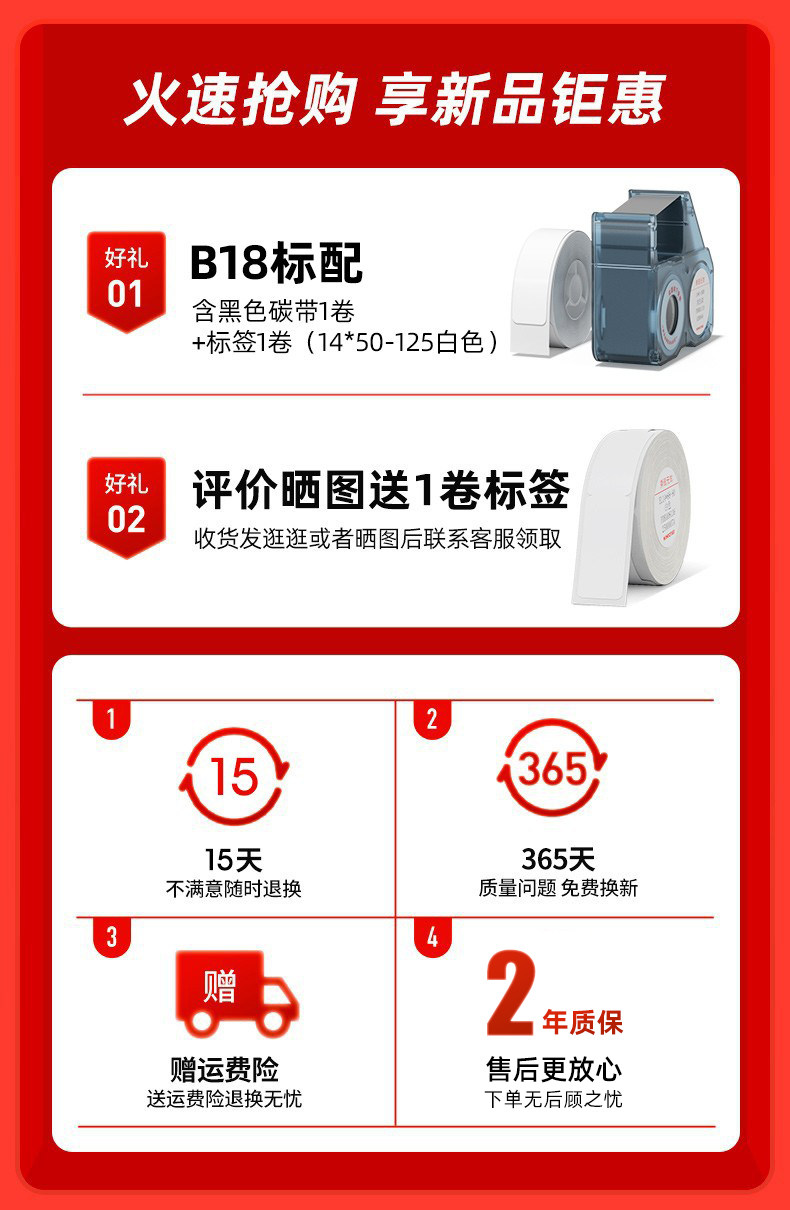 | Color Classification | Machine + 1 Roll of Ribbon + 1 Roll of Key Tag,Machine + 1 Roll of Ribbon + 1 Roll of Matte Silver Label,Machine + 1 Roll of Ribbon + 1 Roll of White Label,Machine + 1 Roll of Ribbon + 1 Roll of Folder Labels,Machine + 1 Roll of Ribbon + Free 1 Roll of Data Cable Label,Machine + 1 Roll of Ribbon + 3 Rolls of Key Tags (Including 1 Roll as a Gift),Machine + 1 Roll of Ribbon + 3 Rolls of Matte Silver Labels (Including 1 Roll as a Gift),Machine + 1 Roll of Ribbon + 3 Rolls of White Labels (Including 1 Roll as a Gift),Machine + 1 Roll of Ribbon + 2 Roll Set (Includes 1 Free Roll),Machine + 1 Roll of Ribbon + 3 Roll Set (Includes 1 Free Roll),Machine + 2 Rolls of Ribbon + 4 Roll Set (Includes 1 Free Roll),Machine + 2 Rolls of Ribbon + 5 Roll Set (Includes 1 Free Roll),Machine + 3 Rolls of Ribbon + 6 Roll Set (Includes 1 Free Roll),Machine + 3 Rolls of Ribbon + 7 Roll Set (Includes 2 Free Rolls),Machine + 4 Rolls of Ribbon + 8 Roll Set (Includes 2 Free Rolls),[Support Customization] Machine + 3 Rolls of Ribbon (Including Standard Configuration) + 5 Rolls of Customized Labels + 1 Roll of White Labels |