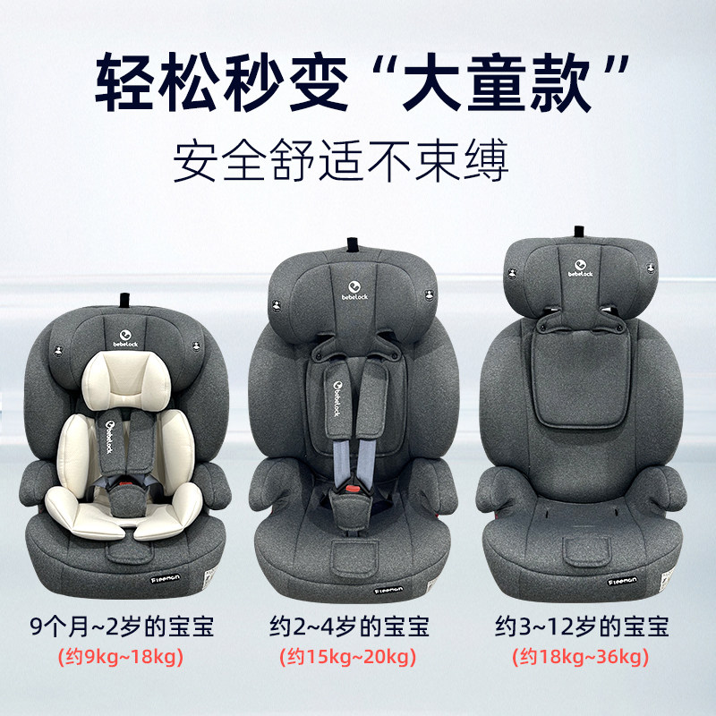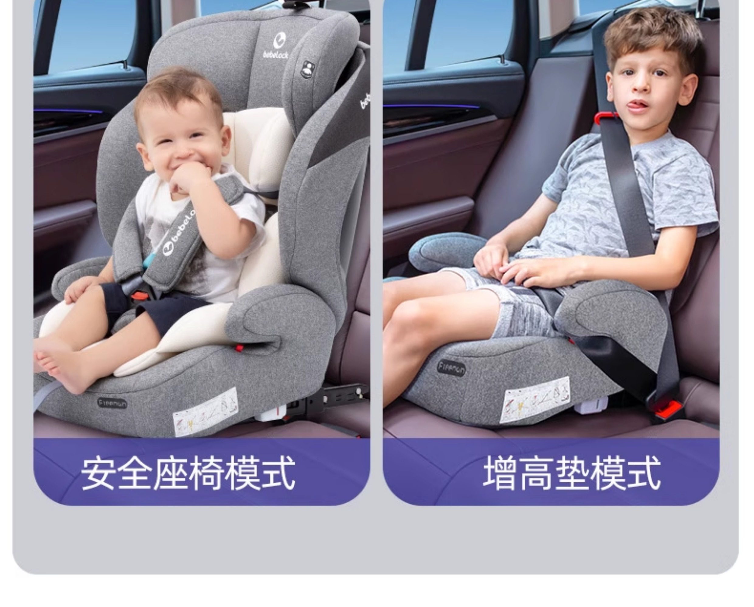Bebelock Kids Safety Seat for Cars, Suitable for Babies from 9 Months to 12 Years Old, Foldable and Easy to Use for Sitting and Reclining in the Car