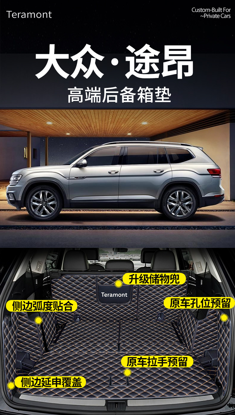 Suitable for 25 Models of Volkswagen Touron, Full Coverage Trunk Mat for Seven-Seater Pro, Car Accessories for Modification and Decoration