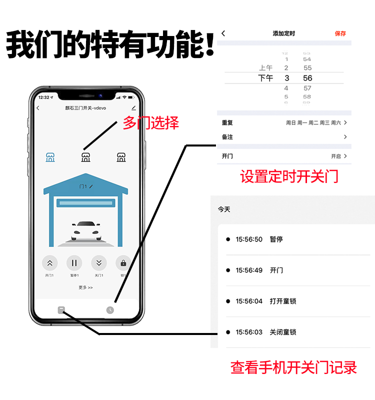 | One Machine, Multiple Controls | Supports Control of 3 Doors |
