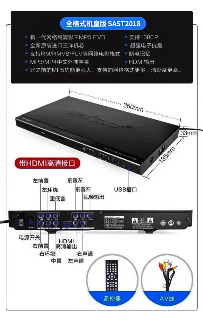 Xianke Home Dvd Player Vcd Player Cd Player High-Definition Full Format Player Children's Evd Disc Player