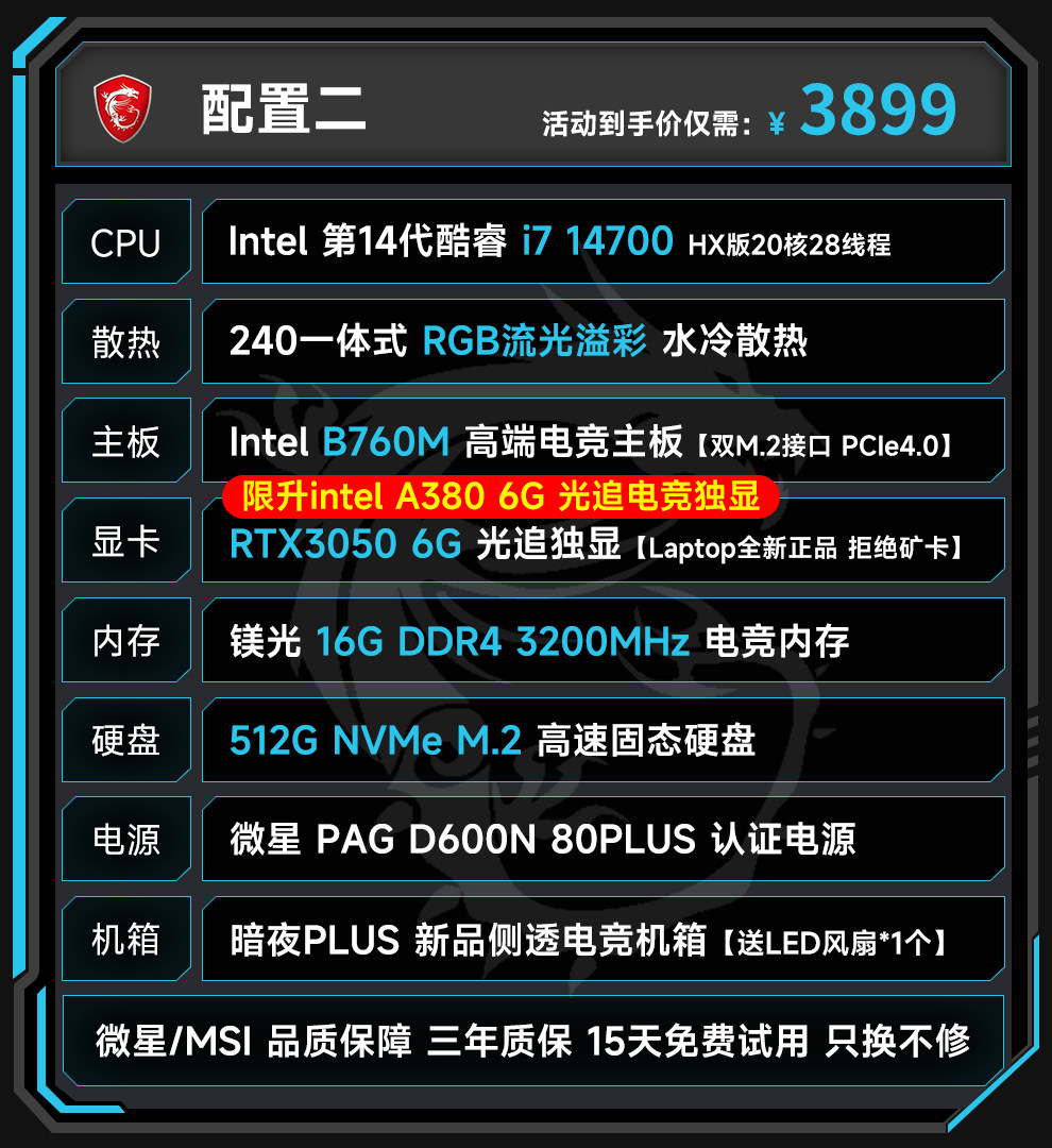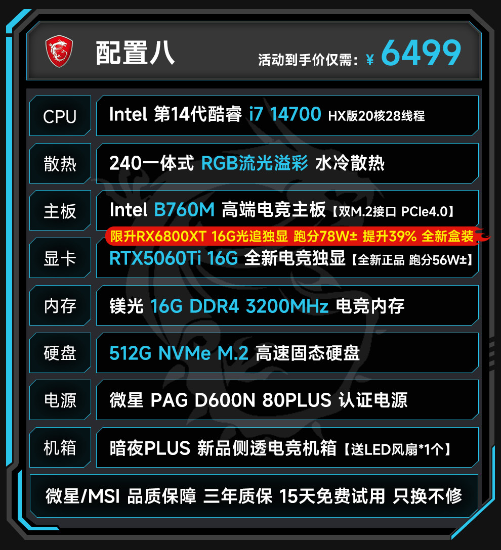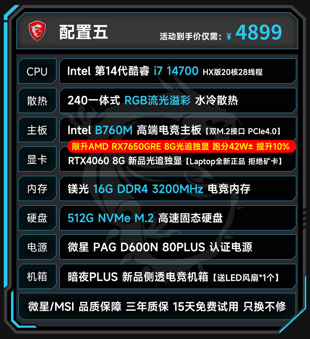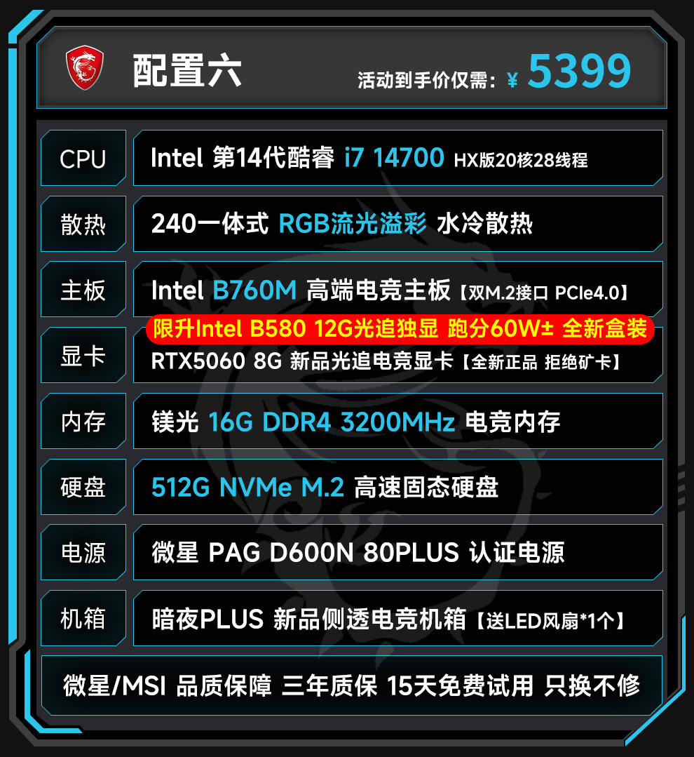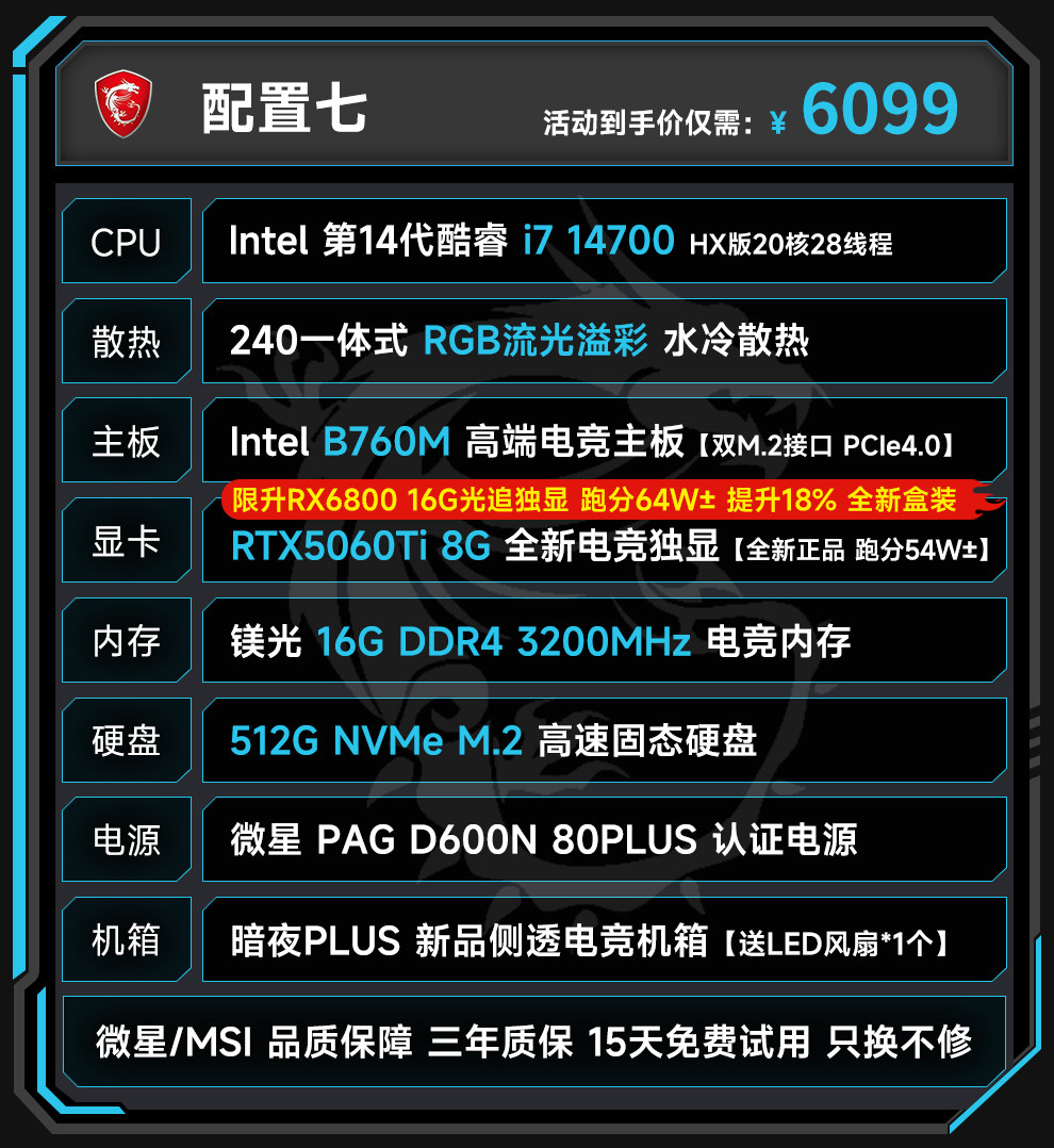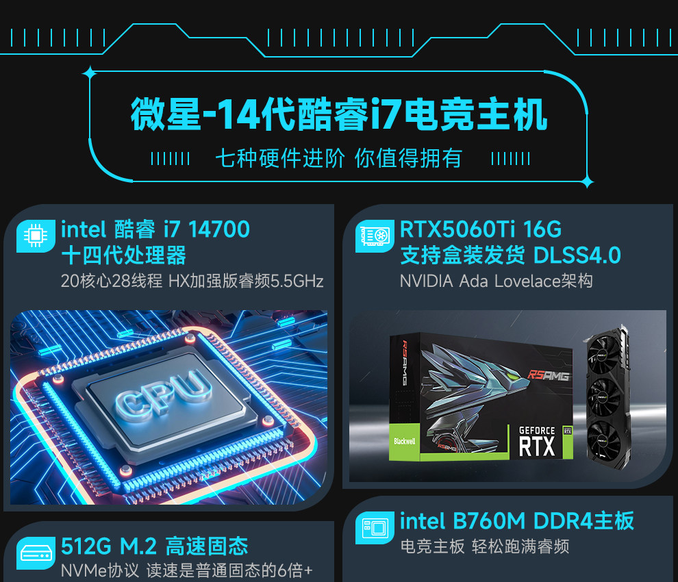 Msi Core I7 13700/14Th Generation 14700/Rtx3060/5060/5060Ti Computer Host Hx Enhanced Version High-Performance Gaming Desktop DIY Assembly Pc